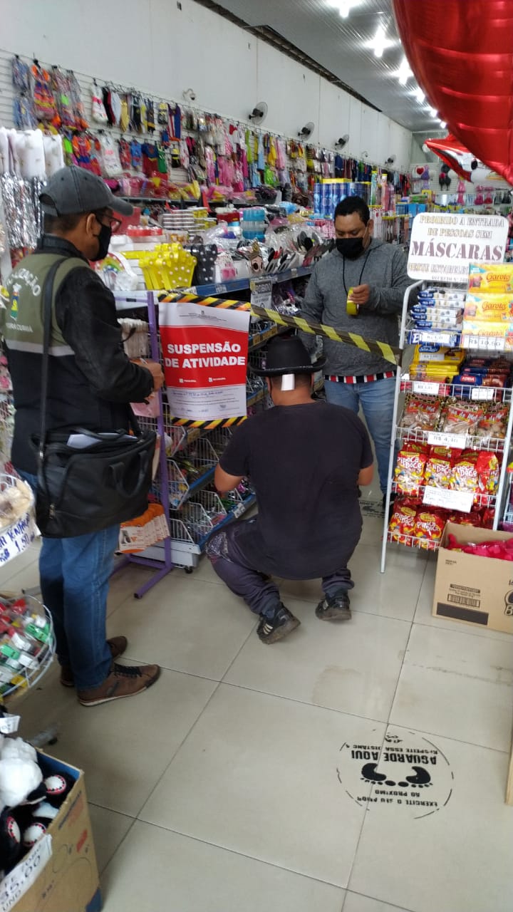Também houve abordagens em lojas com mais de um tipo de atividade, essenciais e não essenciais. Nesses casos, os fiscais fazem a redução da oferta de produtos, isolando com fitas as seções onde se comercializa produtos não essenciais. O objetivo é garantir a comercialização apenas de produtos essenciais, dentre eles, alimentos, higiene e limpeza, por exemplo.