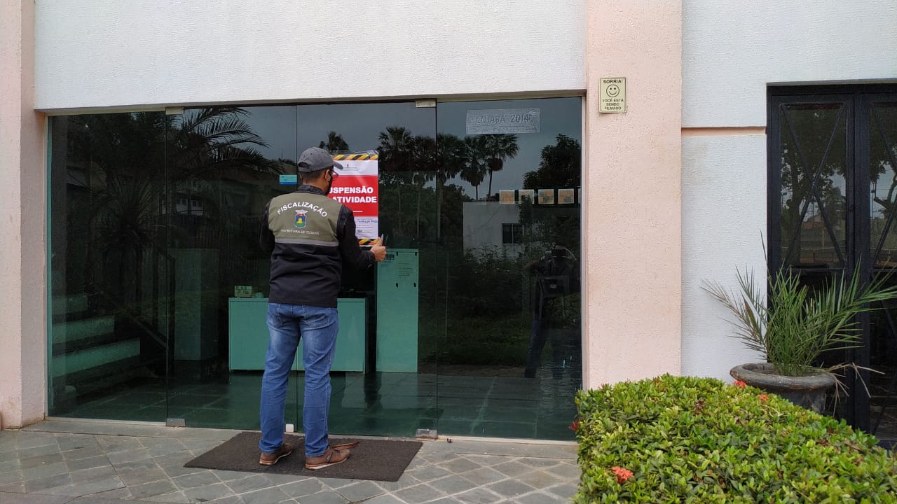 Fiscais da Secretaria de Ordem Pública iniciaram, na manhã deste sábado (27), uma operação para identificar, por meio de cartazes oficiais com os dizeres “Suspensão de Atividade”, as fachadas dos estabelecimentos não autorizados a funcionar em Cuiabá, conforme o Decreto nº 7.956/2020. A ação começou pela região central, onde a maioria dos estabelecimentos já estava fechada.