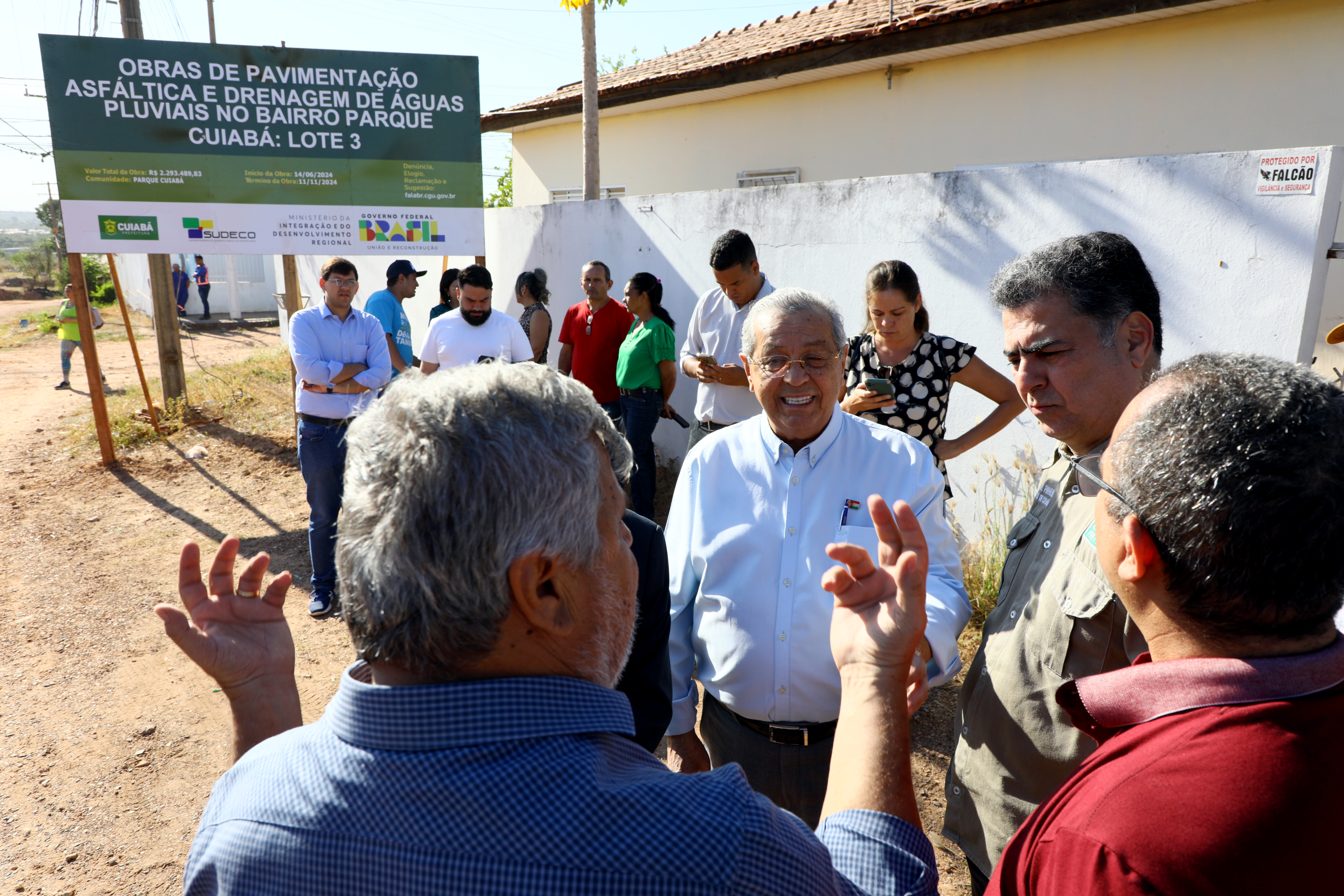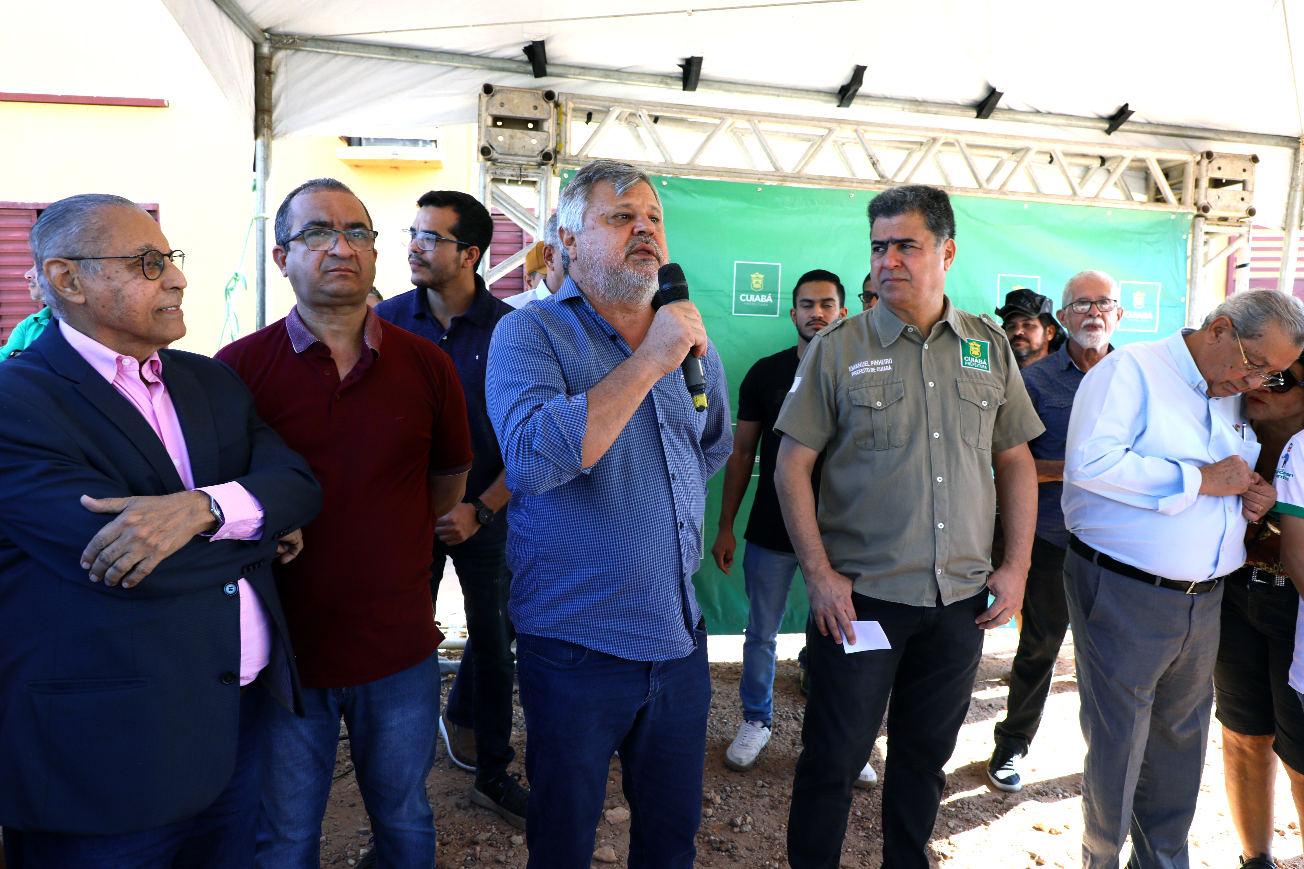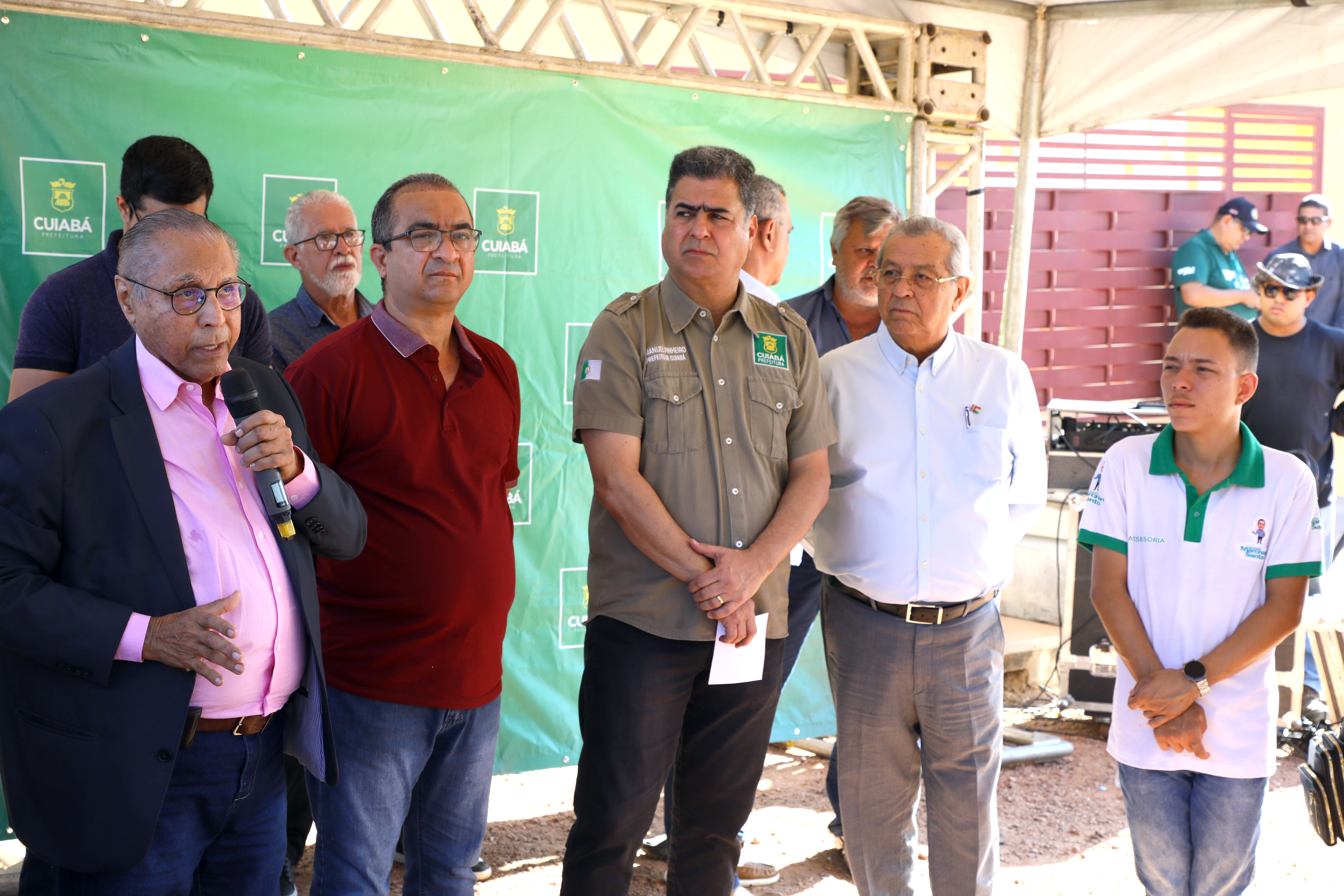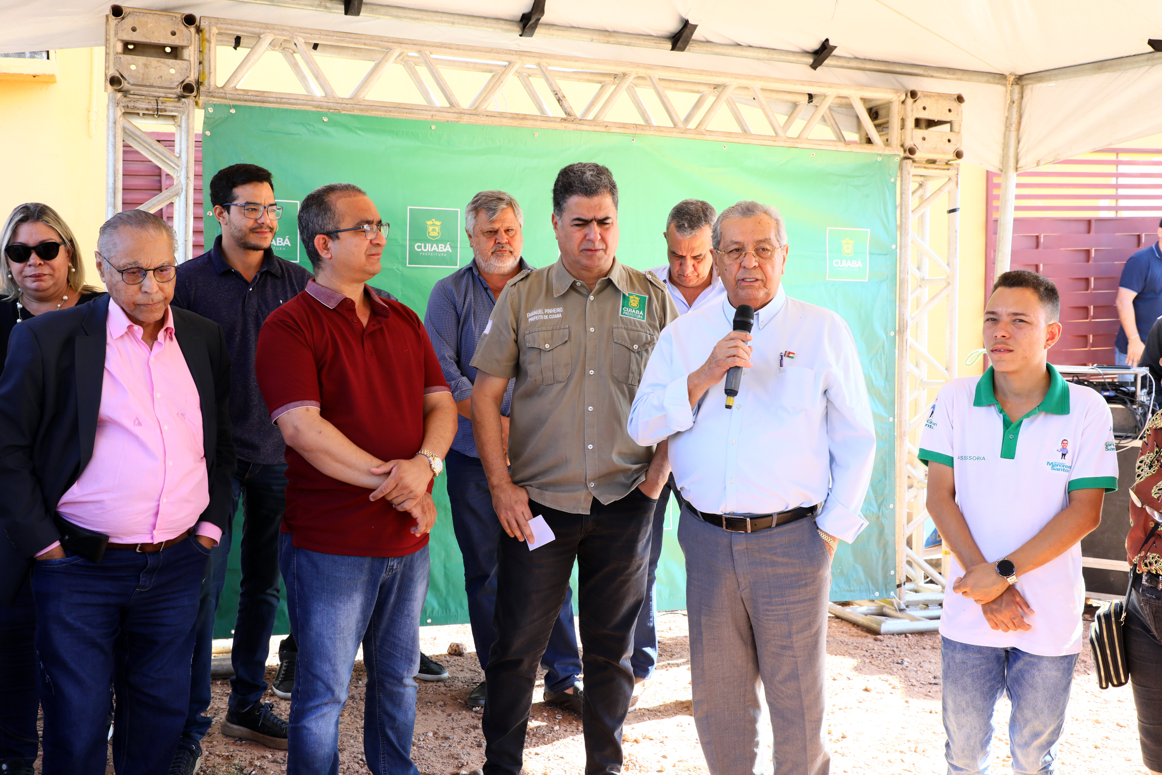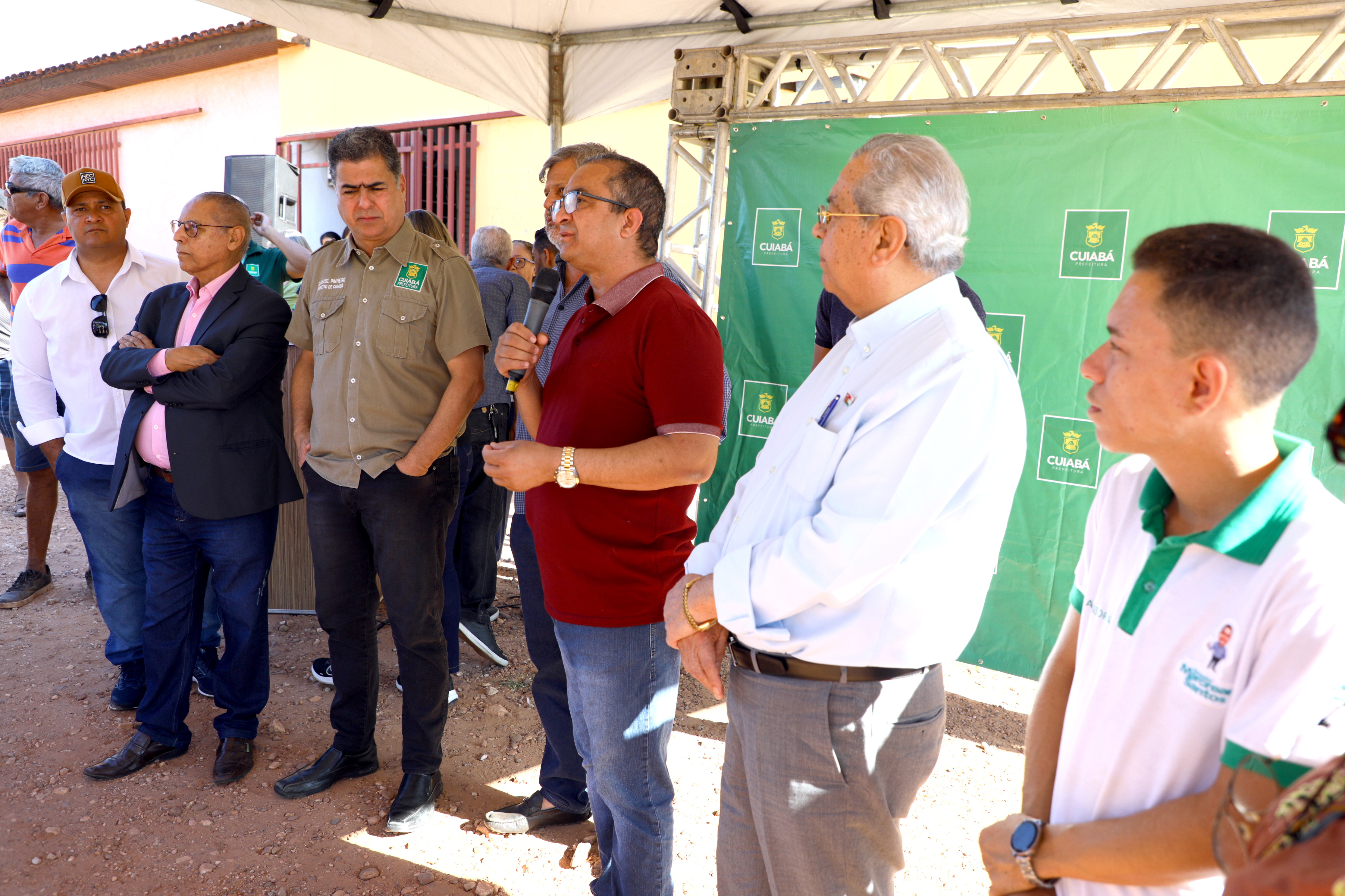 “Estaremos realizando aproximadamente um quilômetro de pavimentação, uma obra extremamente cara devido à complexidade da drenagem. Em alguns pontos, precisaremos cavar mais de cinco metros de profundidade para instalar a tubulação. Peço paciência aos moradores, mas em quatro a cinco meses esse trecho estará concluído e pronto para uso. Além disso, estamos planejando complementações através de termos aditivos, sem impedimentos, para concluir todas as sete ou oito ruas restantes do Parque Cuiabá. Essas ruas têm menor complexidade e custo, bem abaixo dos dois milhões e trezentos mil reais que estamos investindo agora. Obrigado ao prefeito por estar aqui hoje, dando a oportunidade de realizar mais essa obra. A partir da próxima semana, estaremos à disposição de todos os moradores, acompanhando o trabalho da empresa Fratello, responsável pela execução da obra. Queremos garantir que ela seja realizada com qualidade e dentro do prazo previsto em contrato, que é de no máximo cinco meses. Assim, no dia 11 de novembro, estaremos aqui para entregar a obra completa, incluindo drenagem, meio-fio, calçada e pavimentação”, declarou.