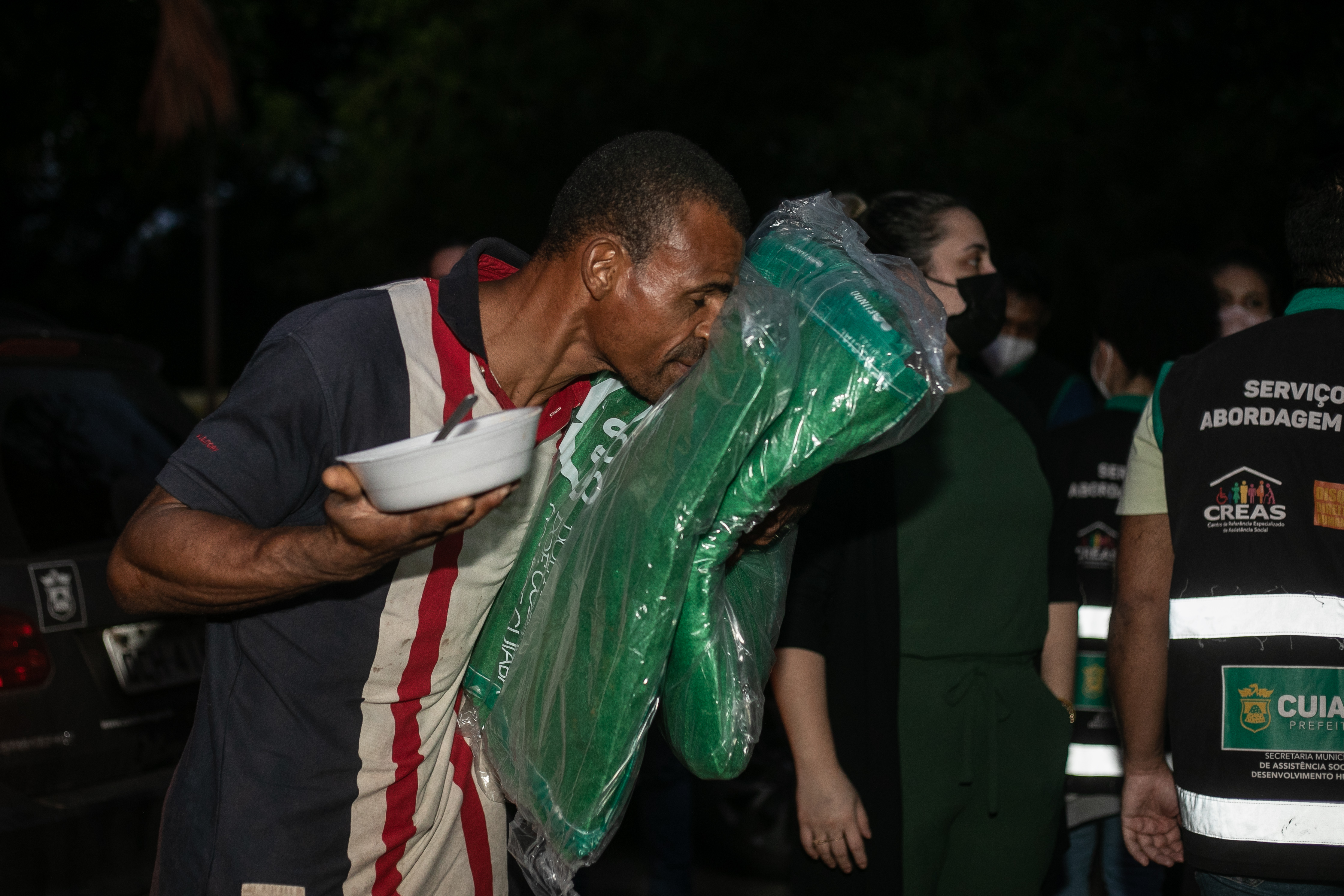 A Prefeitura de Cuiabá, por meio da Secretaria Municipal de Assistência Social, Direitos Humanos e da Pessoa com Deficiência, com apoio do Núcleo de Apoio à Primeira-dama, promoveu uma força-tarefa de combate ao frio a partir desta segunda-feira (12) em diversos pontos da capital, atendendo pessoas em situação de vulnerabilidade social.