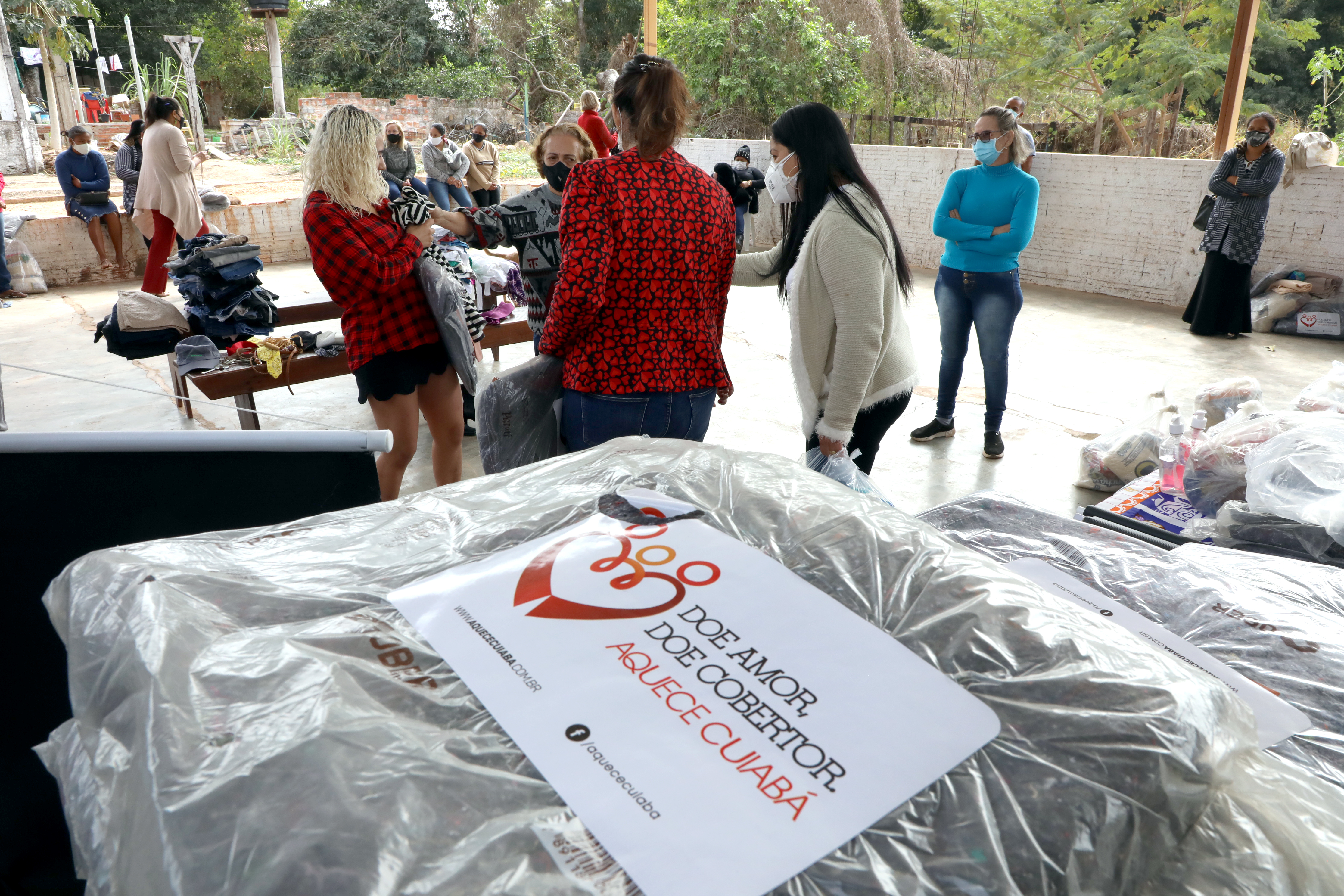 Força-tarefa de enfrentamento ao frio atende a 70 mulheres no Coxipó do Ouro; Campanha Aquece Cuiabá distribuiu cobertores