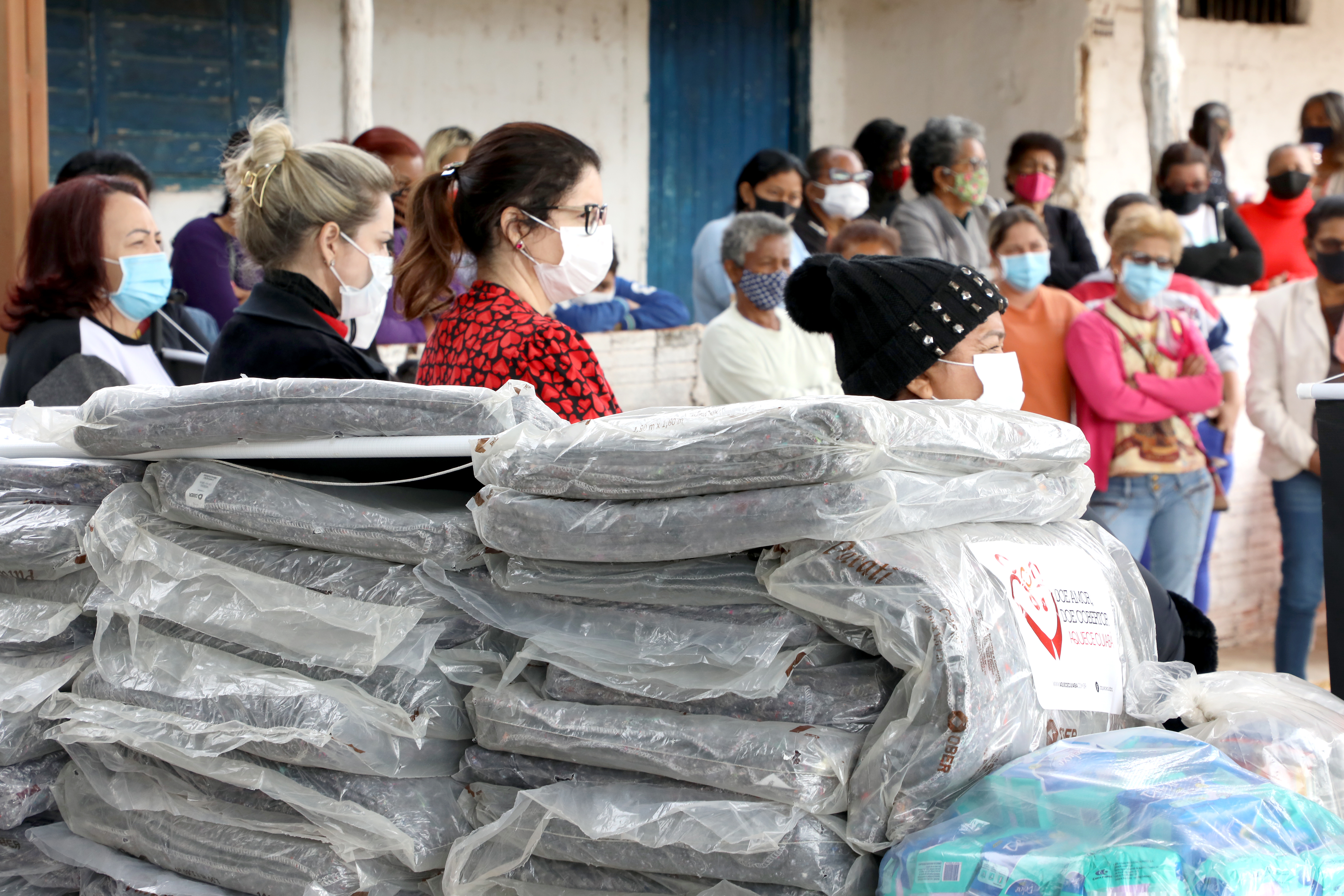 Na manhã desta quarta-feira (28), 70 mulheres que integram o Clube Mães de Ouro receberam doações de cestas básicas, cobertores e itens de higiene pessoal. A ação faz parte da força-tarefa de enfretamento ao frio, determinada pelo Prefeito de Cuiabá, Emanuel Pinheiro e pela primeira-dama, Márcia Pinheiro, visando o atendimento das famílias carentes com a chegada da nova frente fria. A ação conta com a distribuição de cobertores da campanha “Aquece Cuiabá”, idealizada pela primeira-dama, Márcia Pinheiro, e envolve todas as secretarias da gestão.