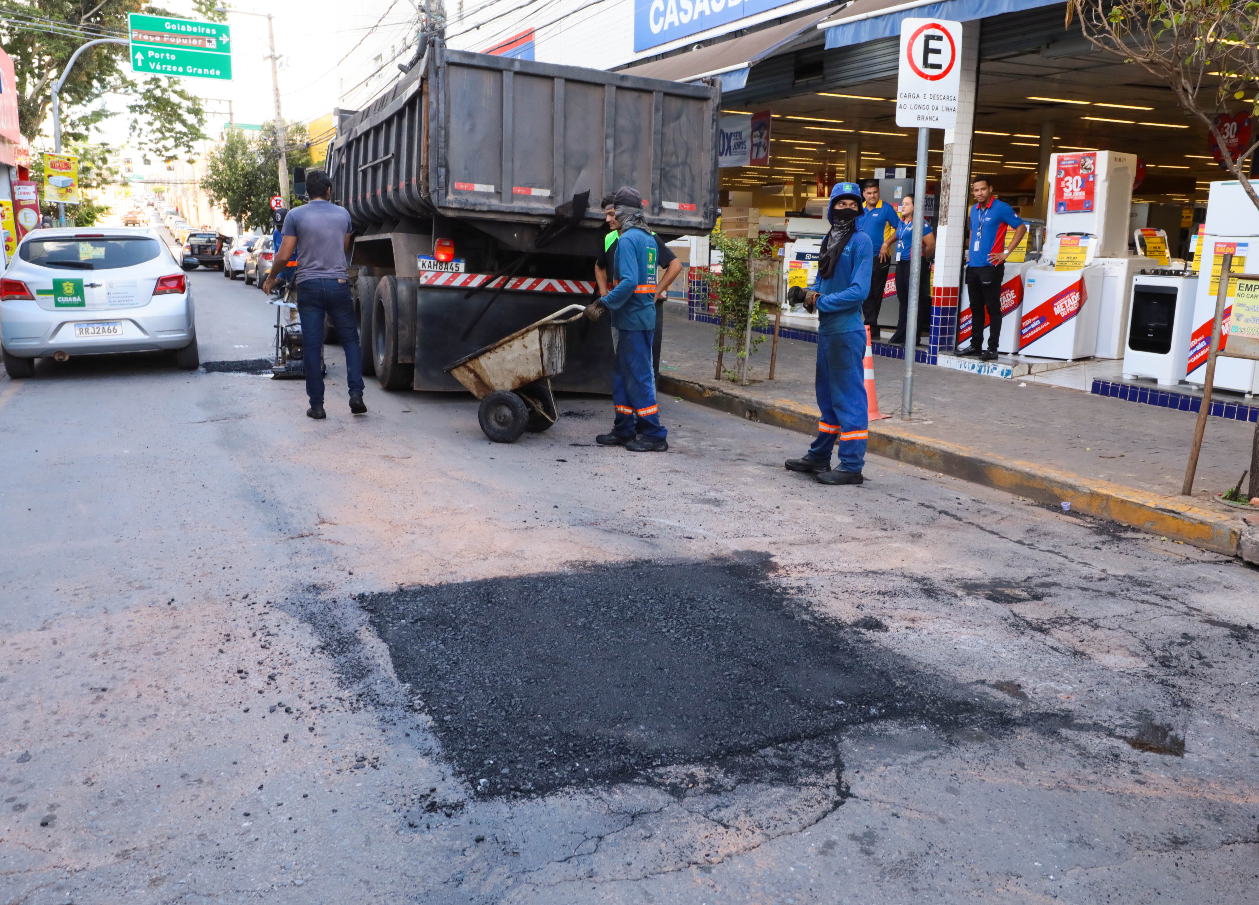 A força-tarefa emergencial para tapa-buracos iniciada mediante uma ‘trégua’ na temporada de chuvas, atendeu, somente nesta terça-feira (2), cinco regiões da capital, sendo elas: Centro, Avenida Historiador Rubens de Mendonça (CPA),13 de Junho, bem como os bairros Baú, Boa Esperança e São João Del Rey.