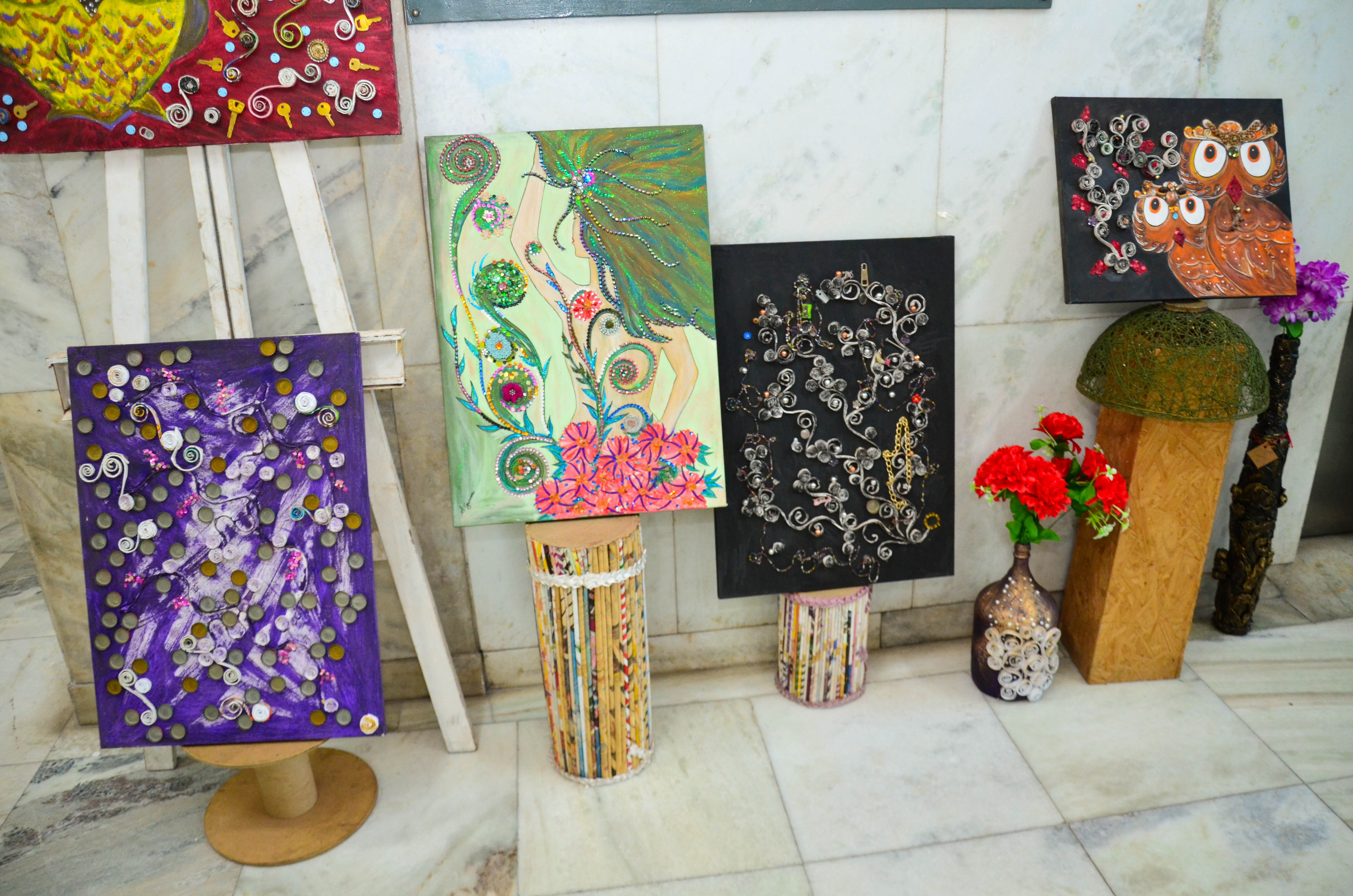 A exposição conta com 31 telas que ilustram paisagem, flores, animais e seres humanos. O acervo foi produzido desde 2011 e está disponível para venda. A técnica utilizada é denominada “Assemblage”, que mistura colagens de objetos, pintura e uso de materiais como linha, jornal e sucata.