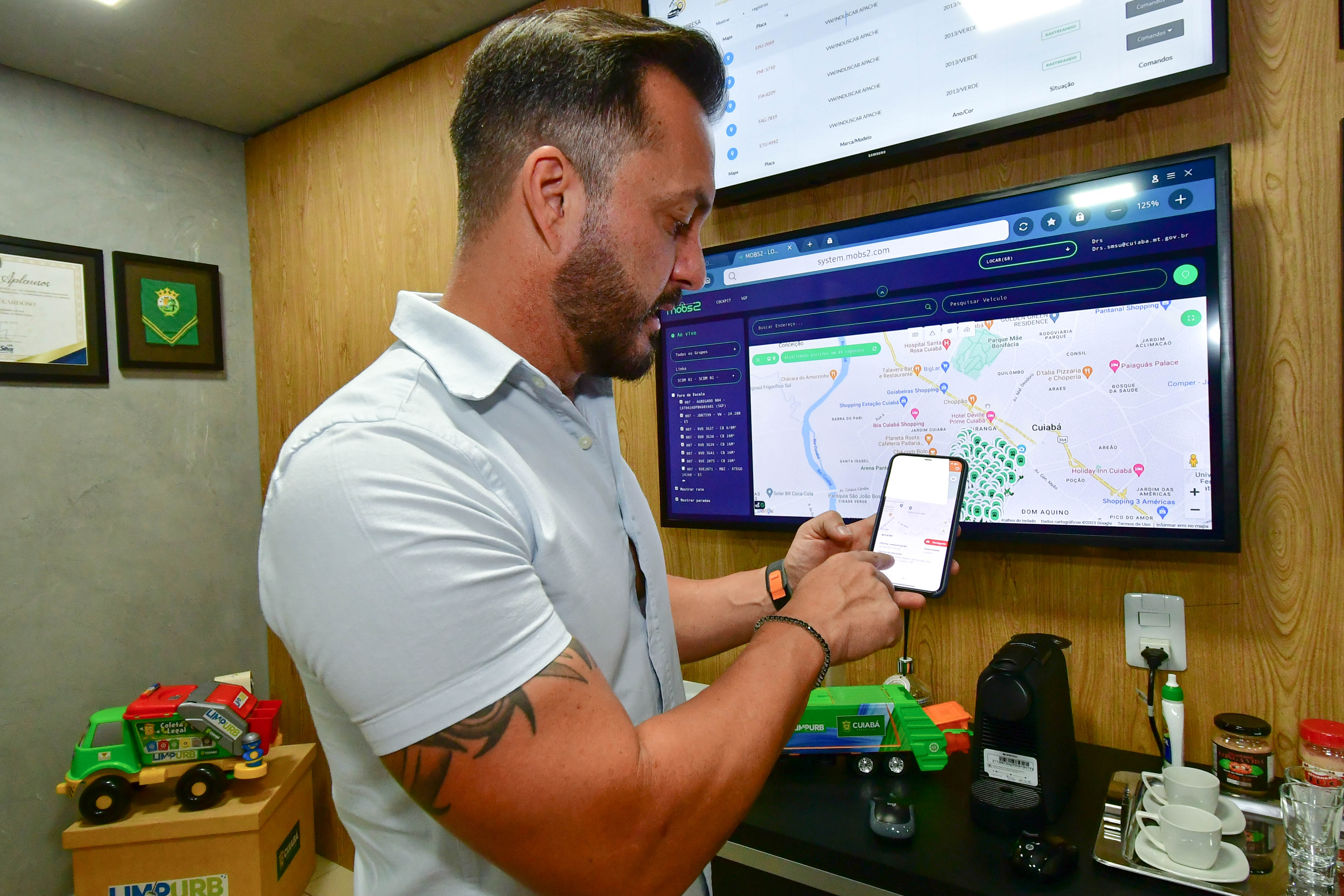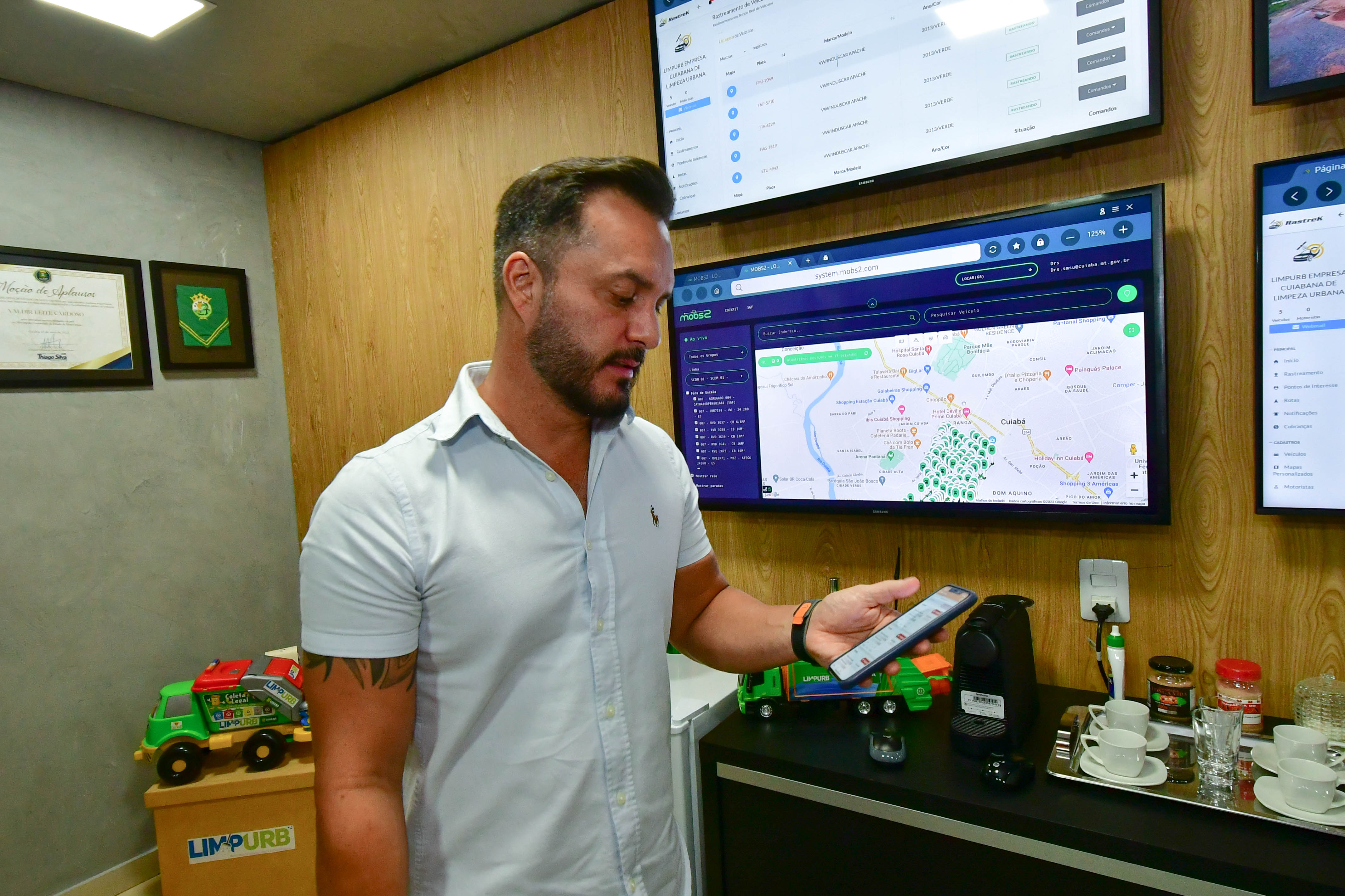 O monitoramento total da frota de maquinários tem ajudado a Empresa Cuiabana de Zeladoria e Serviços Urbanos (Limpurb) a garantir maior eficiência nos trabalhos realizados na cidade. A implantação do sistema segue uma determinação do prefeito Emanuel Pinheiro e alcança os mais de cem veículos utilizados pela empresa pública.