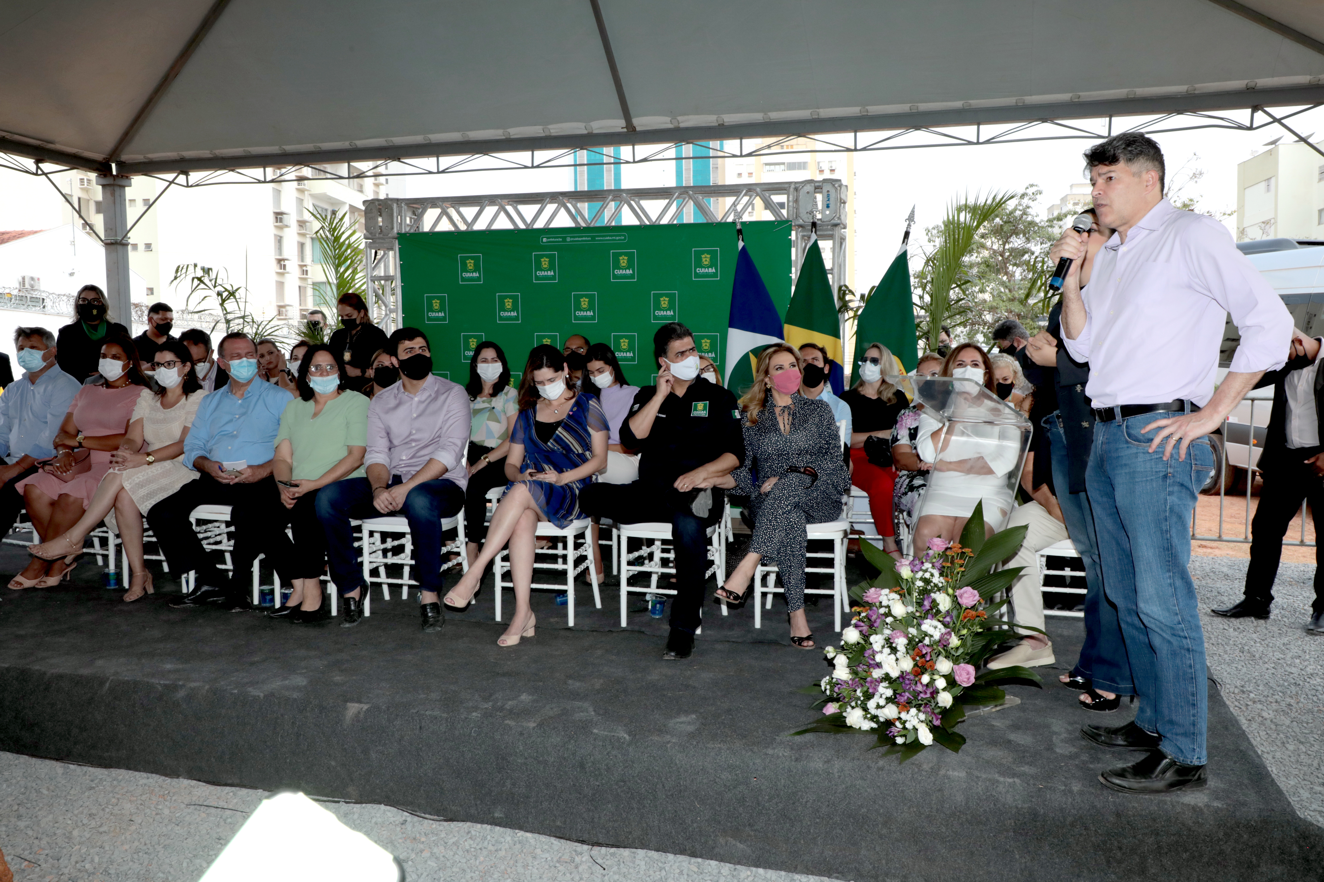 O senador Wellington Fagundes e o deputado federal José Medeiros também participaram da solenidade de lançamento da obra da Casa da Mulher Brasileira.