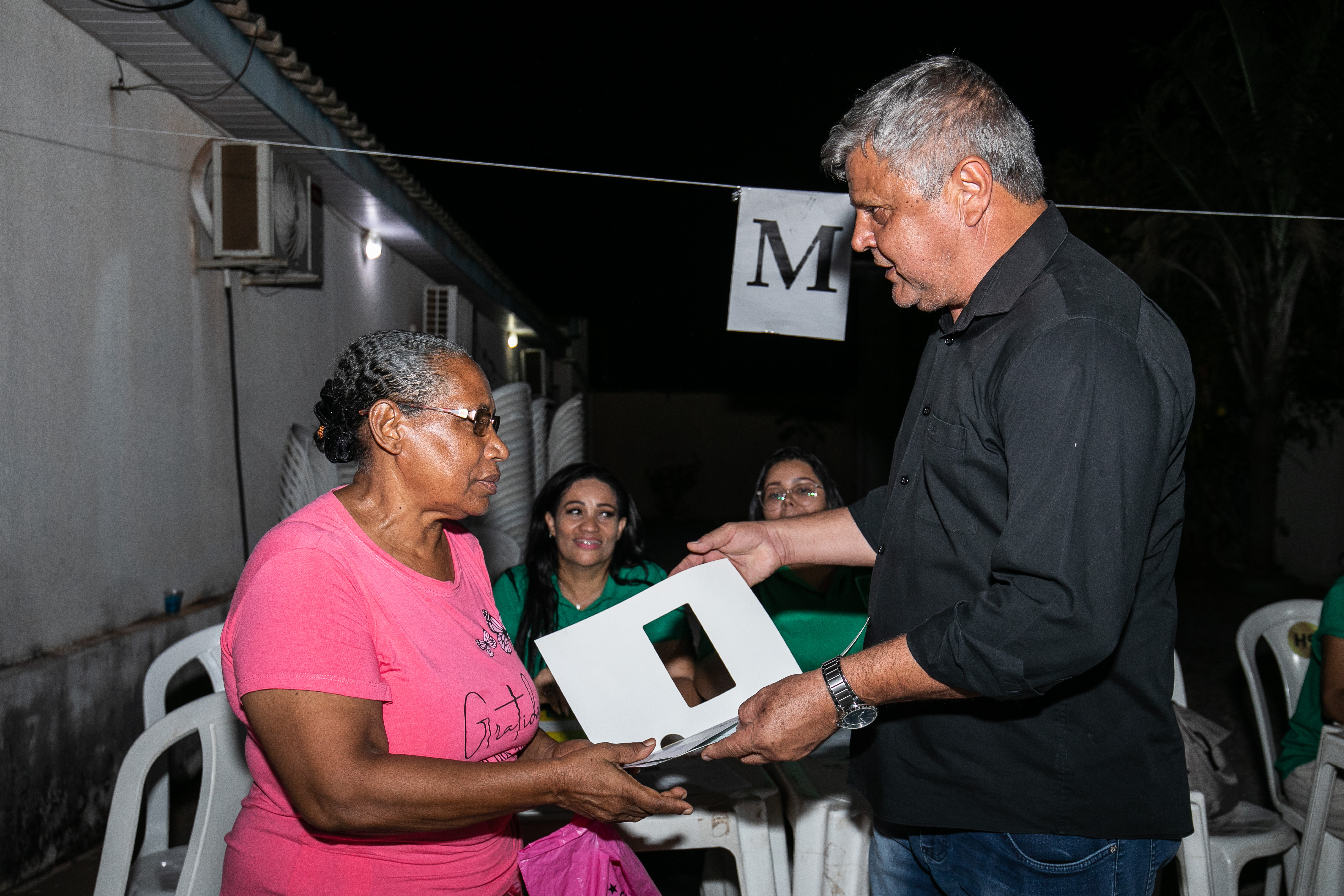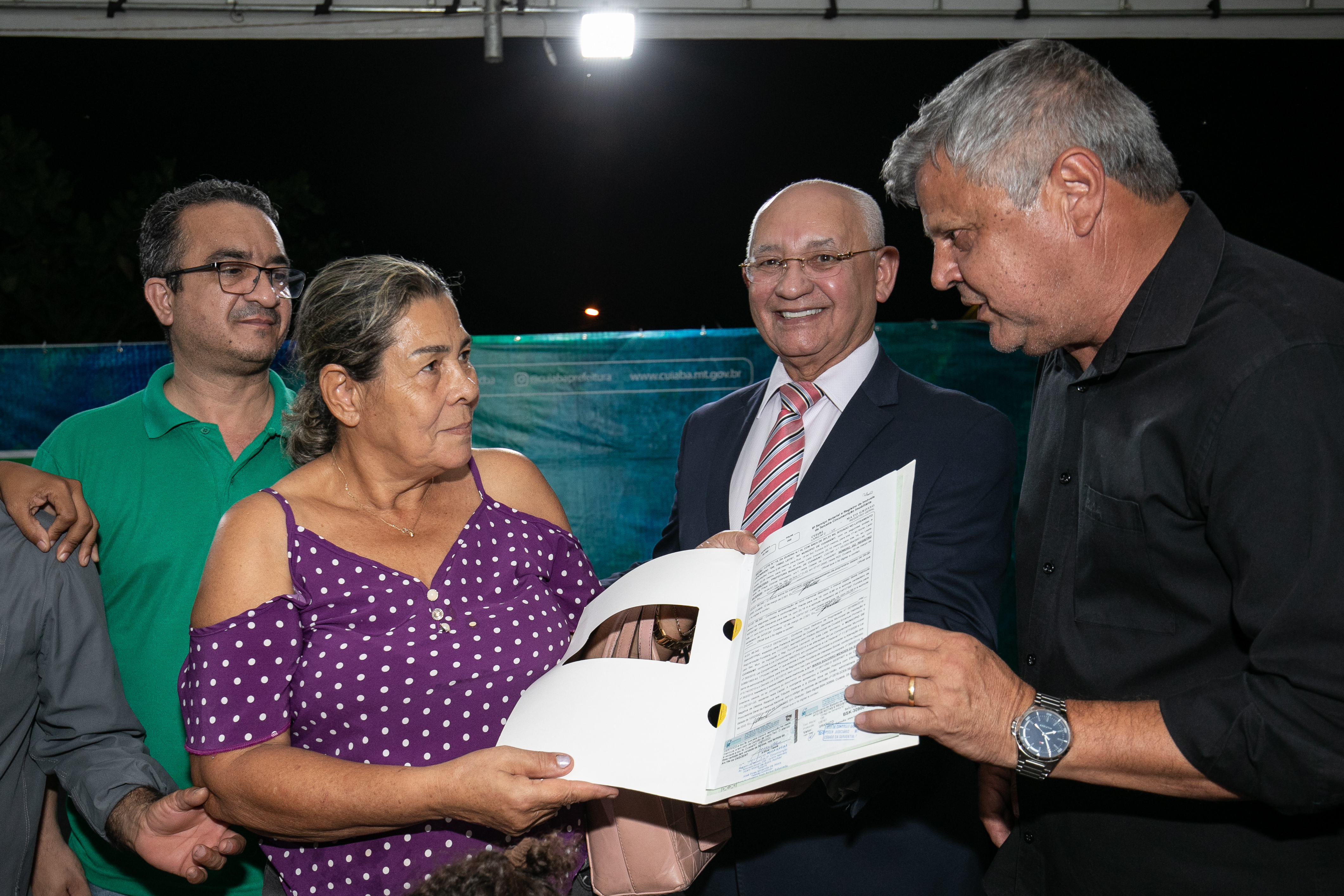 “Me alegro muito estar aqui esta noite. Essa semana toda entregamos títulos em vários bairros de Cuiabá. Há pessoas que estão há 20, 30 anos esperando o momento de estar recebendo seu título registrado em cartório, o que é um direito de cidadania. Com esse documento pode fazer financiamento, pode dizer, sem dúvida alguma, agora sou proprietário de direito e de fato da minha casa, porque tenho o documento registrado”.