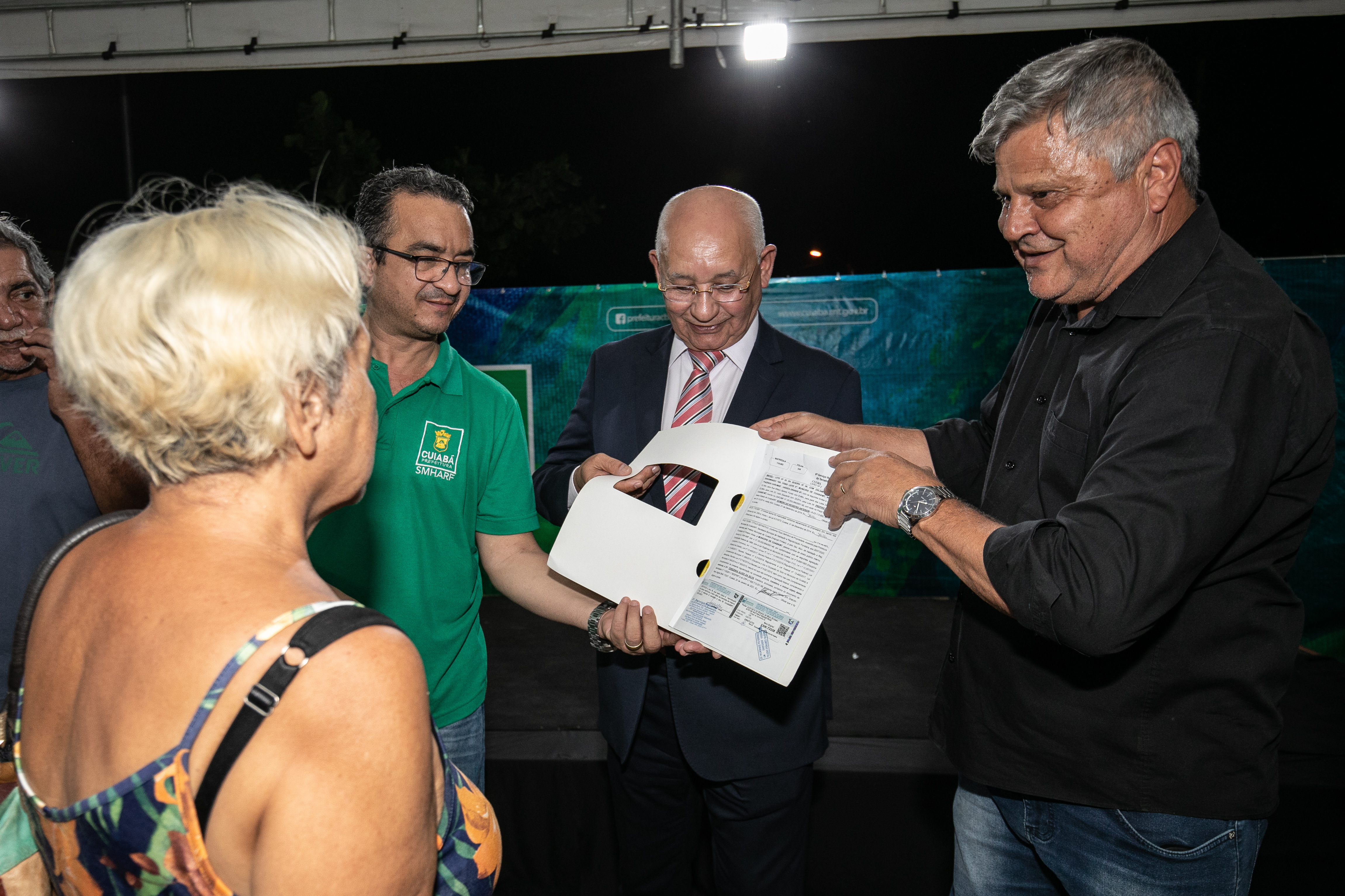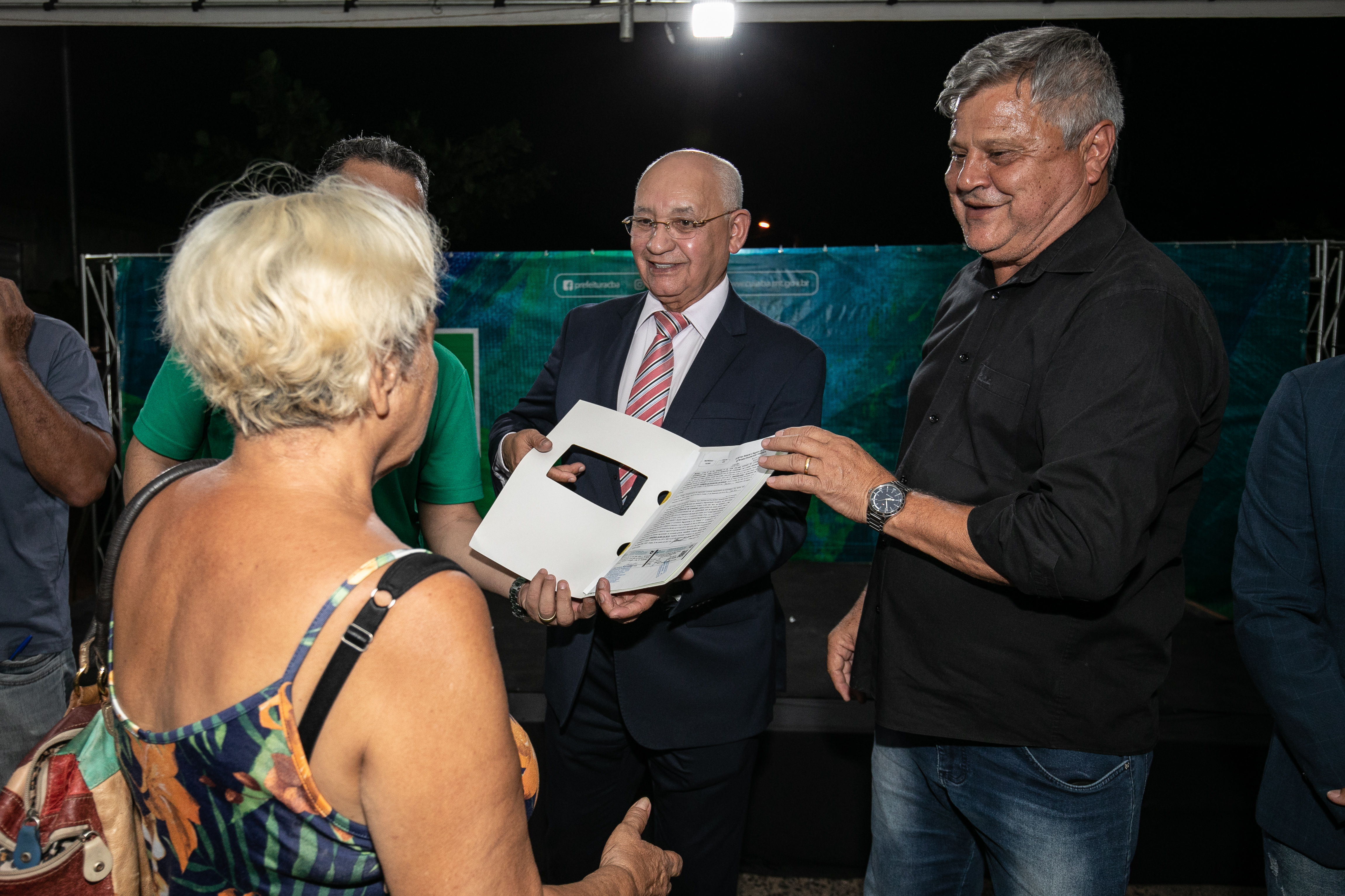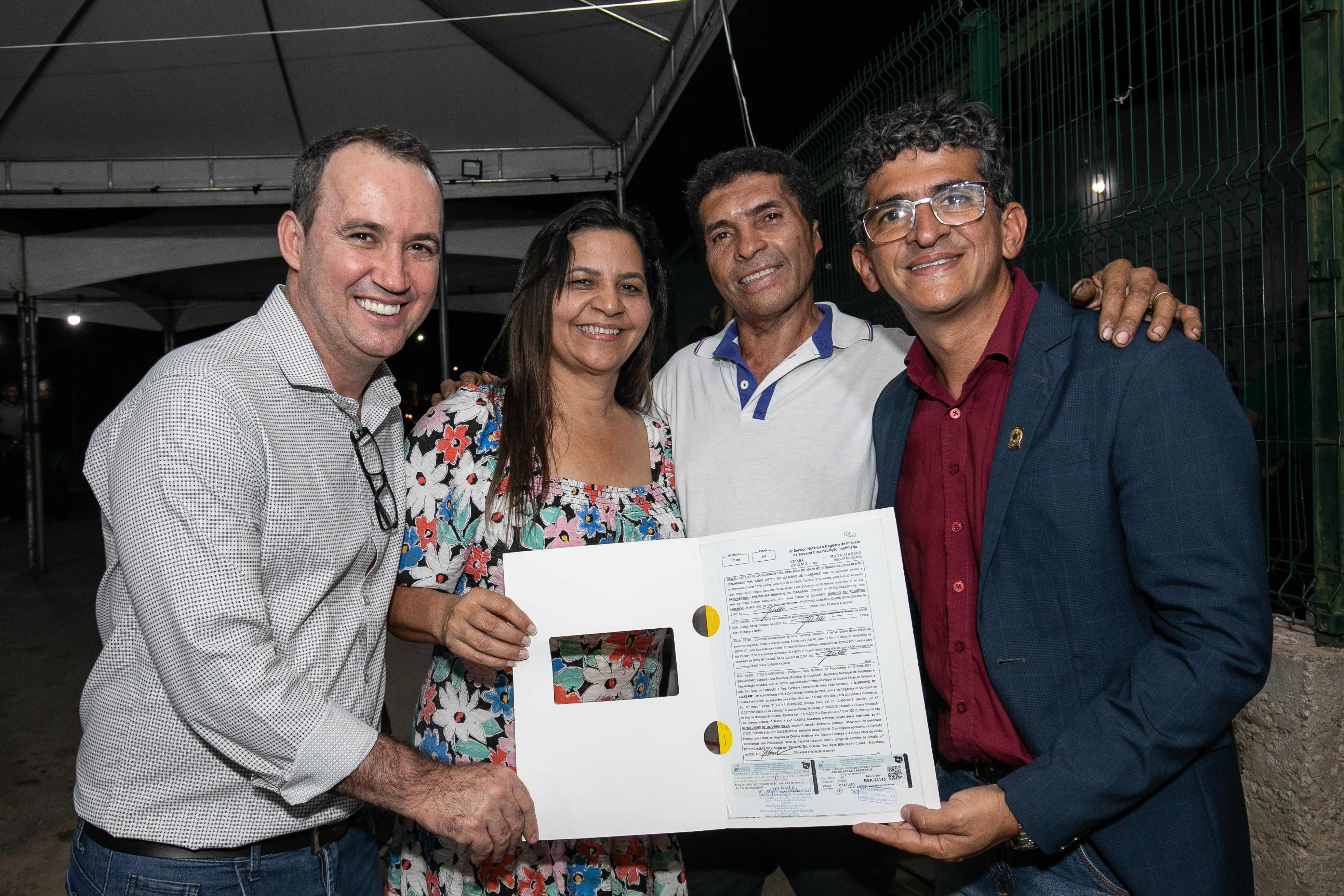 Emoção, alegria, segurança e realização de sonhos. Esses foram os sentimentos mais destacados por todos que participaram da entrega de 342 títulos definitivos de propriedade pela gestão Emanuel Pinheiro, aos moradores dos bairros Dr. Fábio I e II, na noite de quinta-feira (31). O corregedor-geral de Justiça de Mato Grosso, desembargador Juvenal Pereira da Silva, o vice-prefeito José Roberto Stopa e do secretário de Habitação e Regularização Fundiária, Marcrean Santos, entregaram a escritura definitiva, registrada em cartório, sem nenhum custo, a cerca de 1.500 moradores do Dr. Fábio e região somente neste ano.