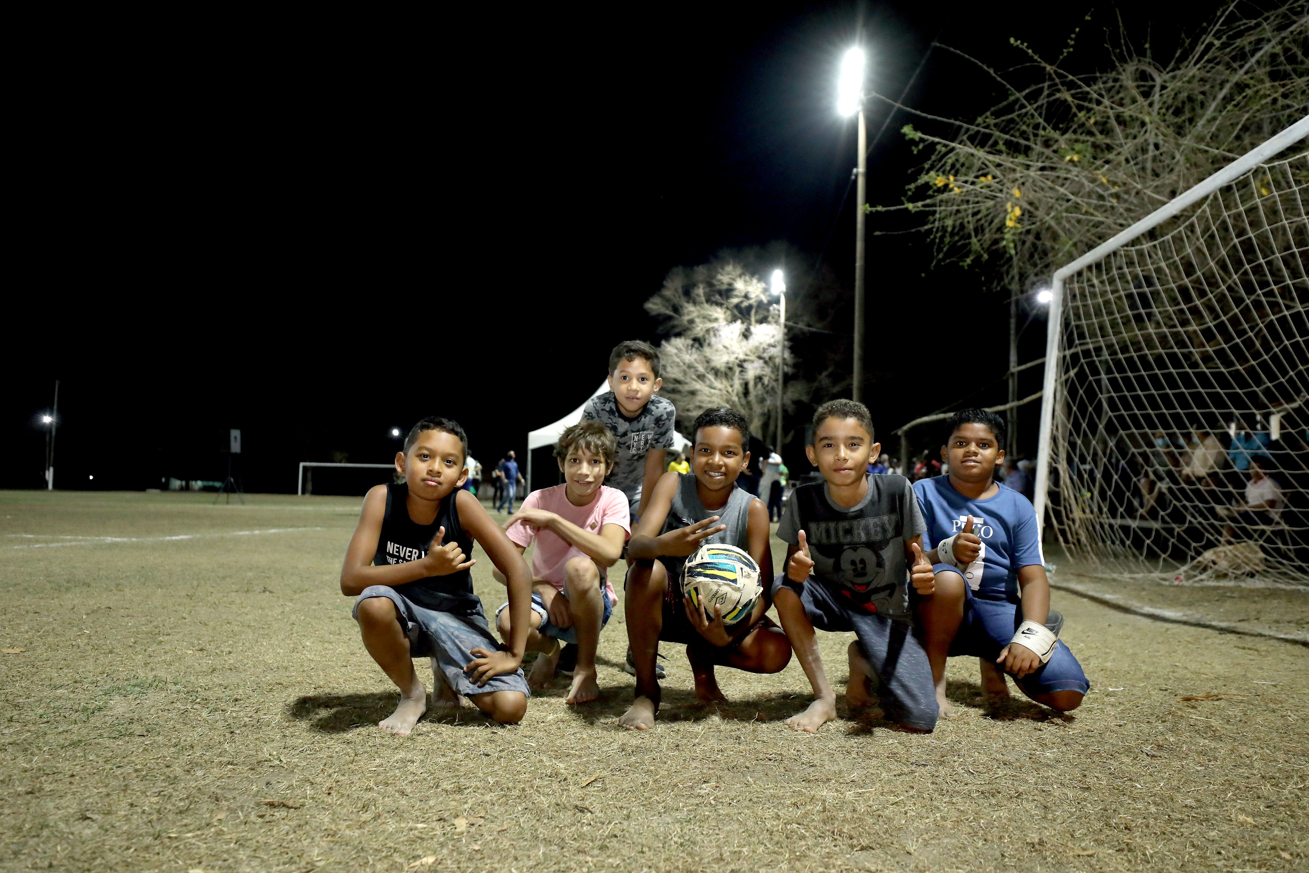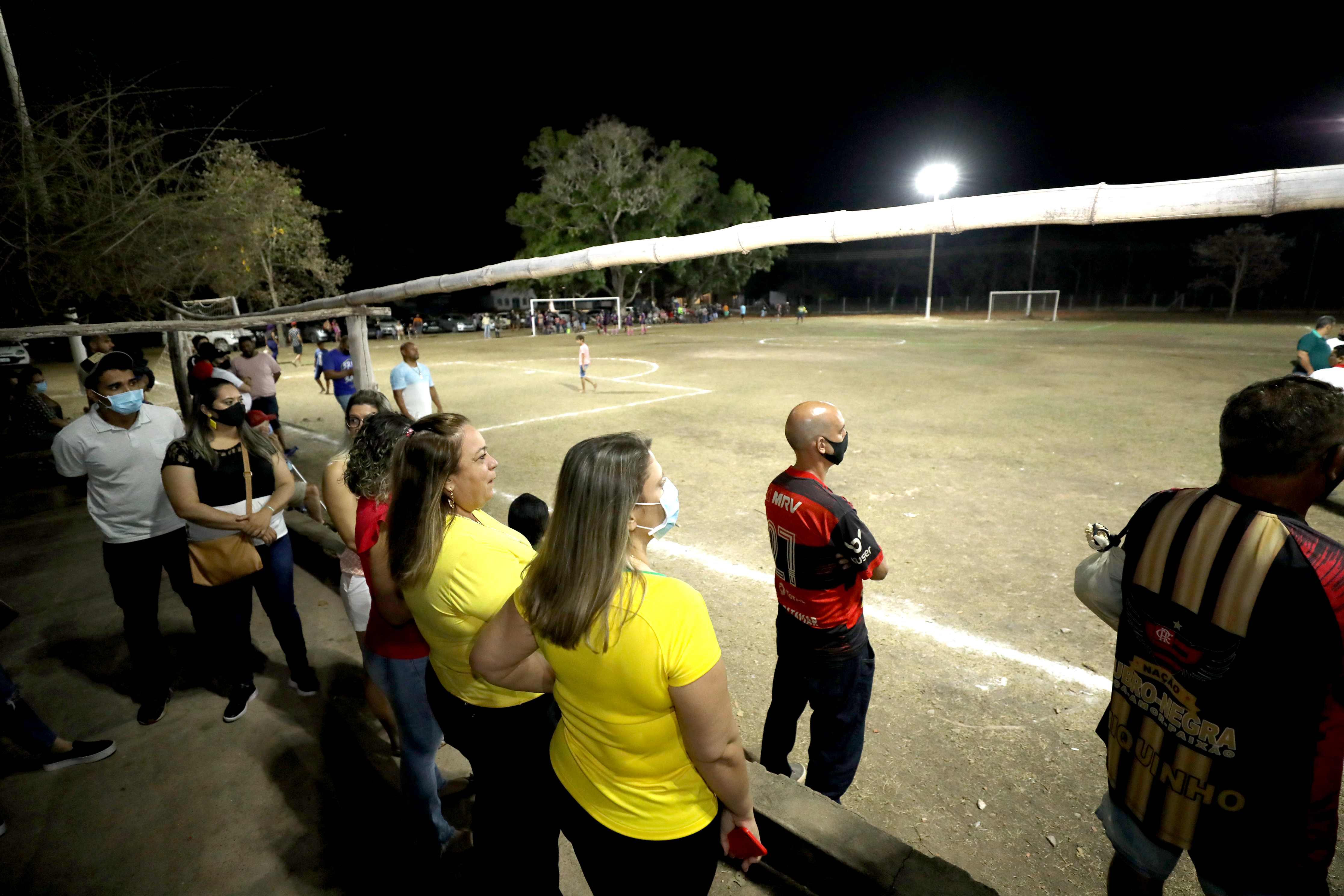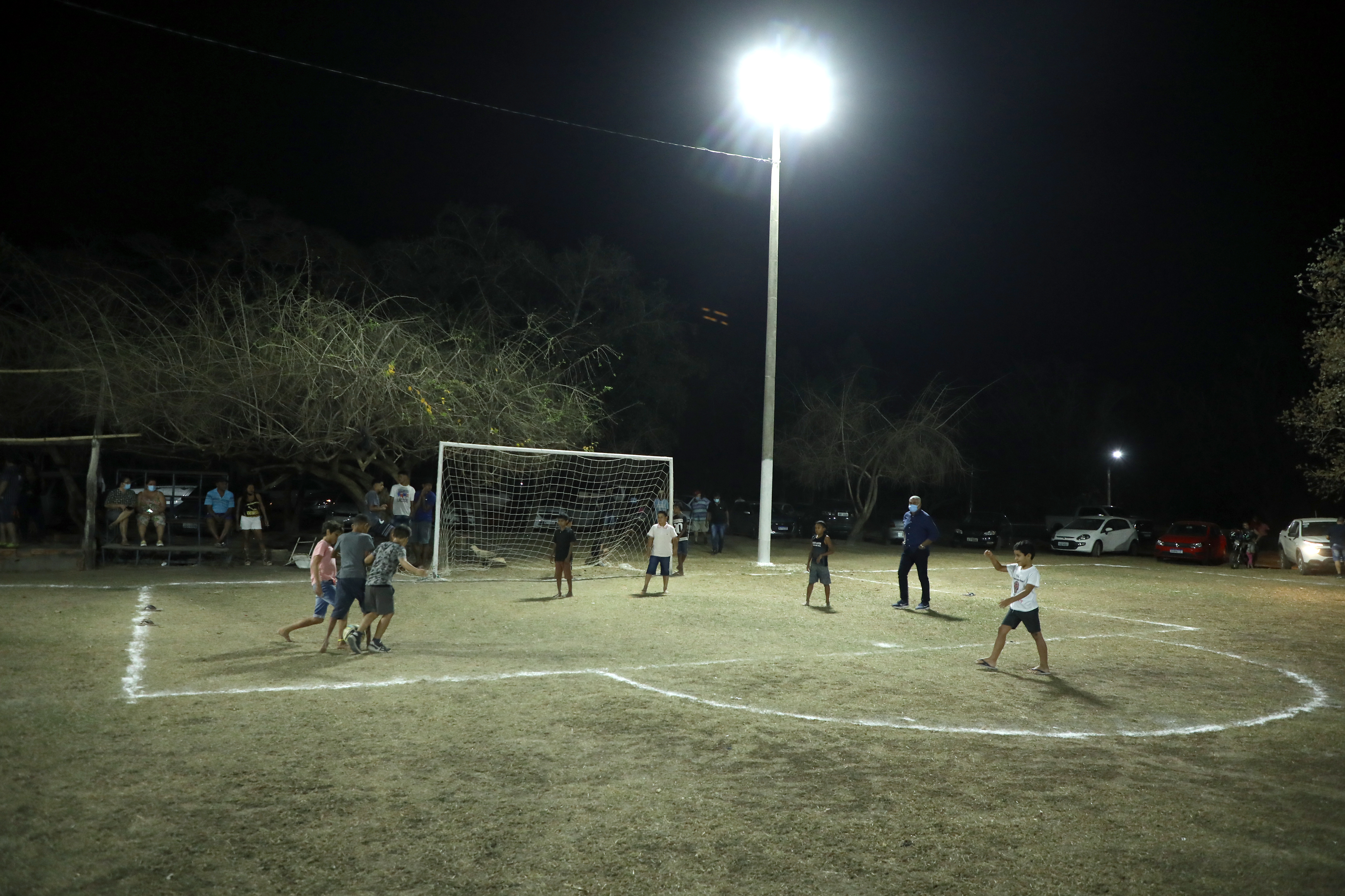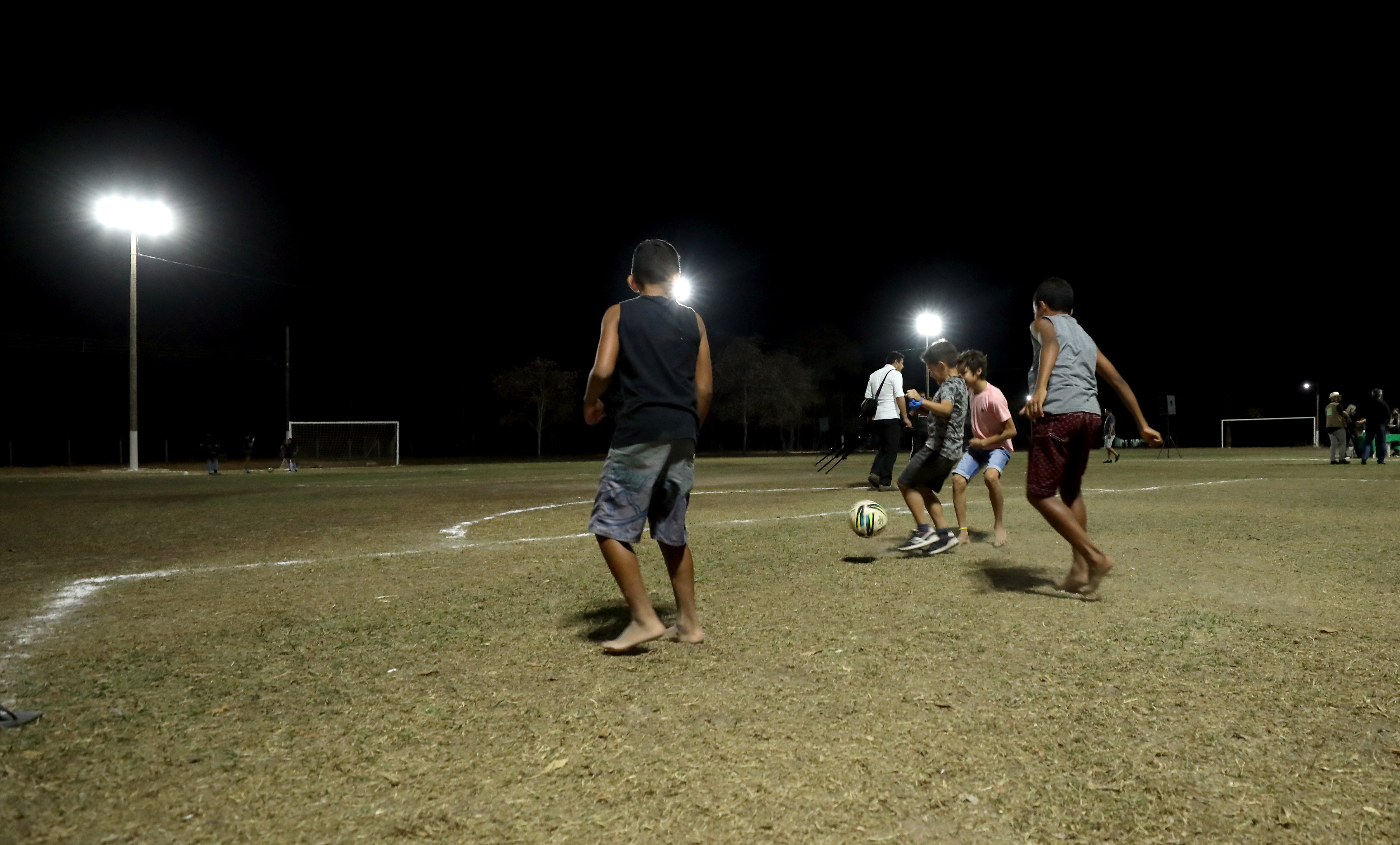 Os moradores da comunidade do Arraial dos Freitas, localizada na região do distrito do Coxipó do Ouro, receberam na noite dessa quinta-feira (27), a nova iluminação do campo de futebol. O espaço conta o moderno sistema de lâmpadas de LED - sendo 36 refletores de 400w, instalados em seis postes. O prefeito Emanuel Pinheiro, já entregou na região, pontes de concreto e academia ao ar livre.