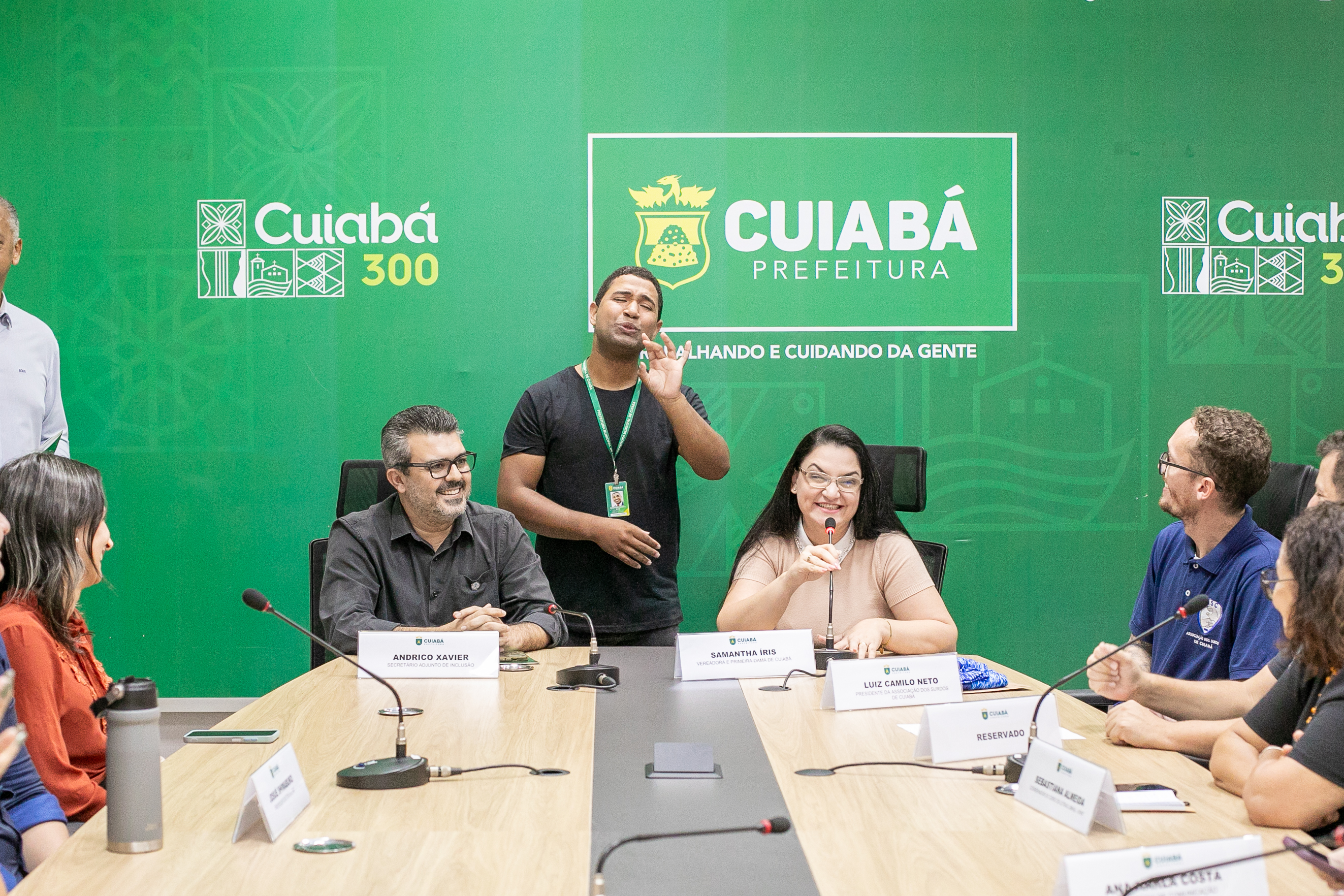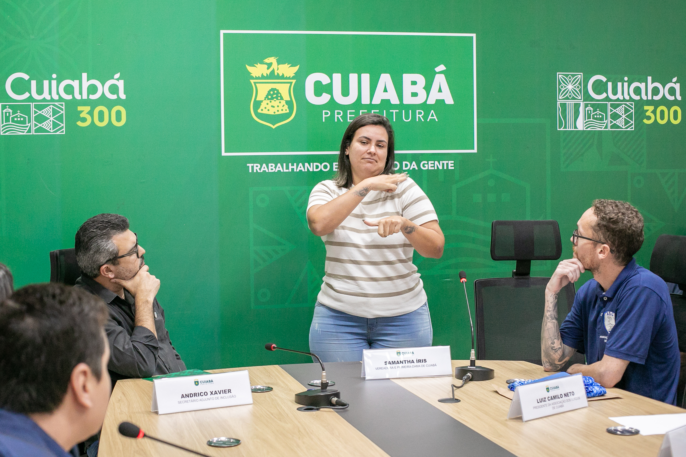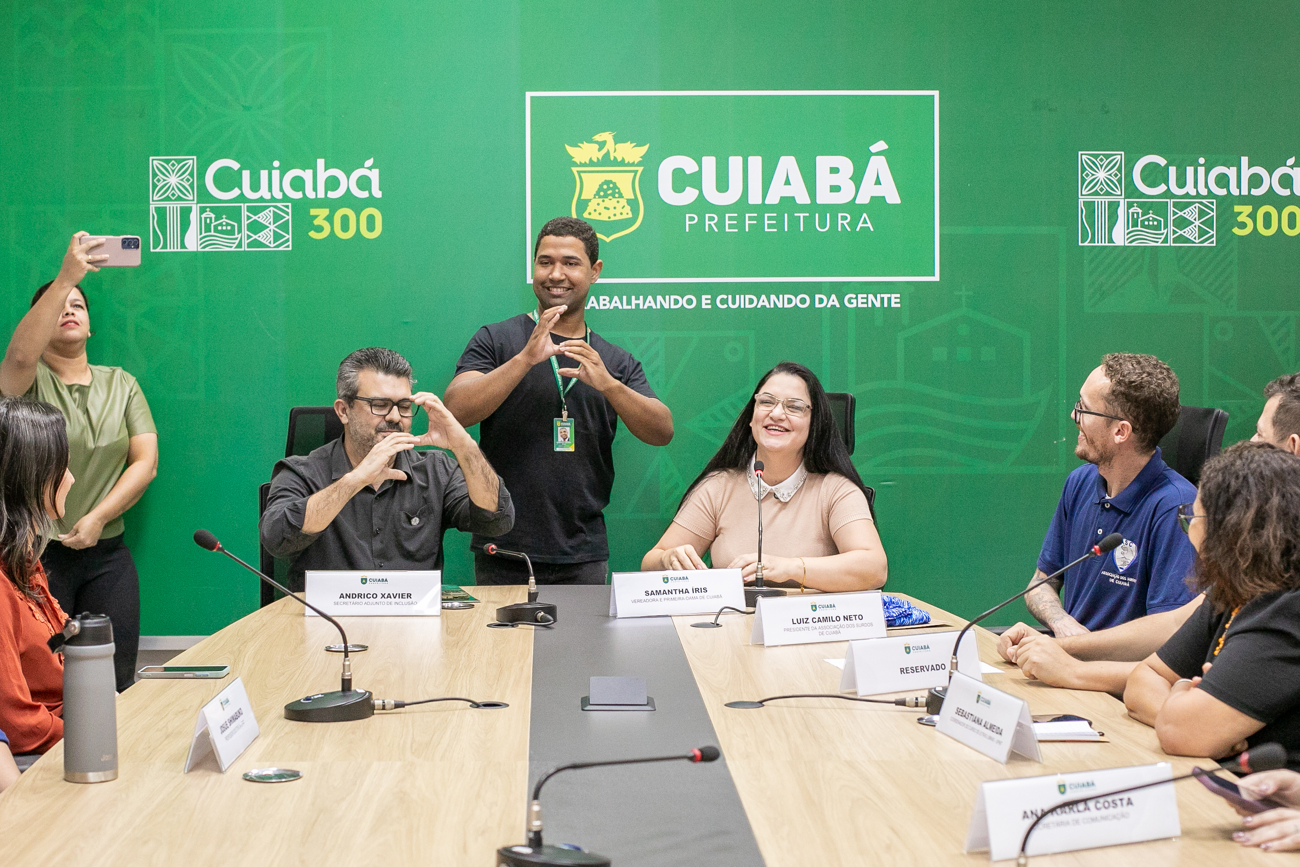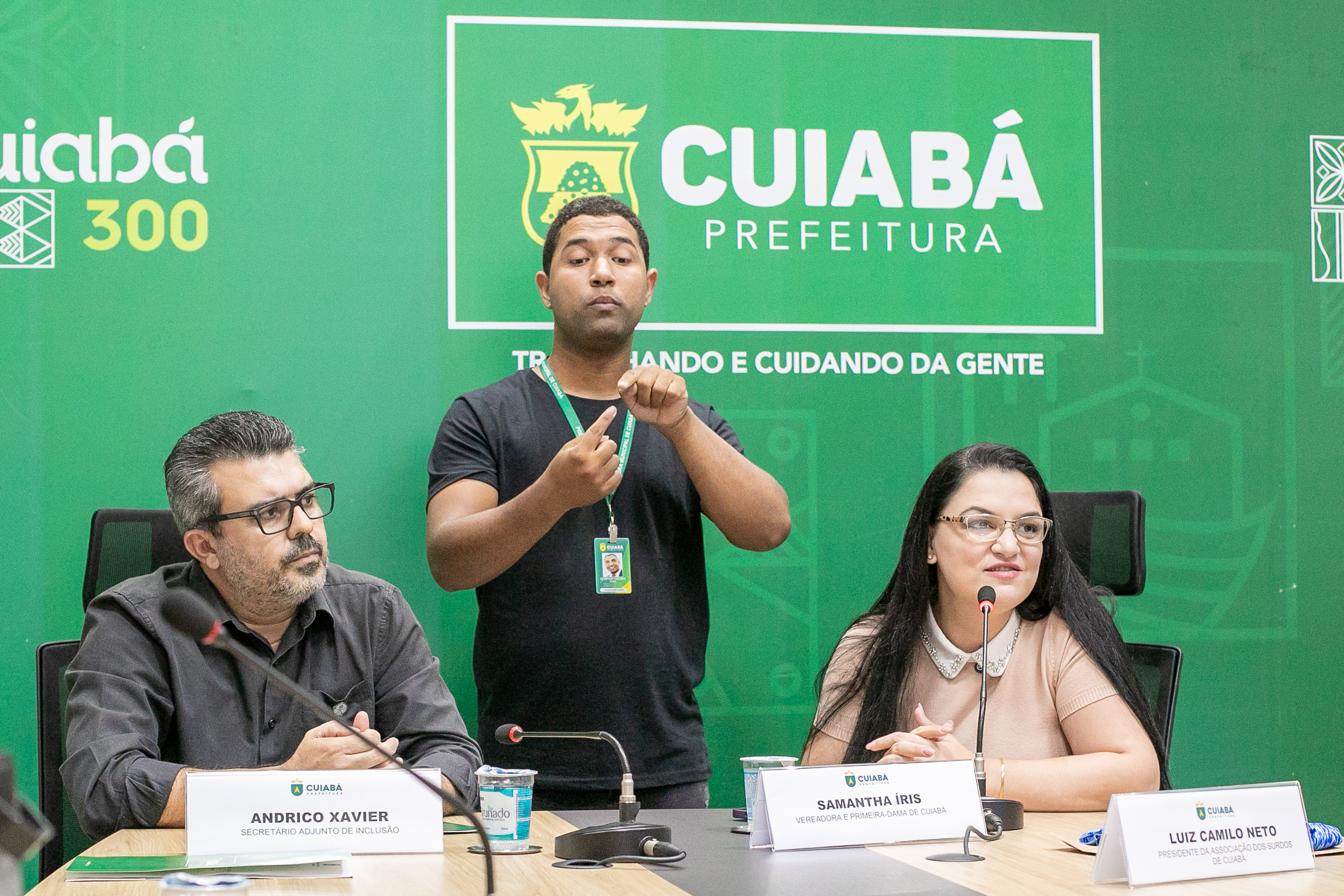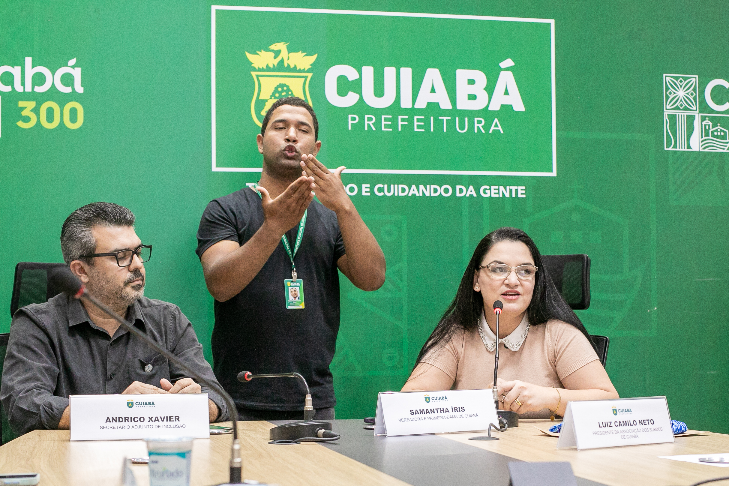 Neste 24 de abril, Dia Nacional da Língua Brasileira de Sinais (Libras), a Prefeitura de Cuiabá celebrou a data com um ato simbólico e prático no Salão Nobre do Palácio Alencastro. Durante o evento, a primeira-dama e vereadora Samantha Iris firmou, junto ao secretário adjunto de Inclusão, Andrico Xavier, o compromisso de elaborar, em até 90 dias, um diagnóstico detalhado das necessidades da comunidade surda e um plano estratégico de políticas públicas voltadas à acessibilidade e inclusão.