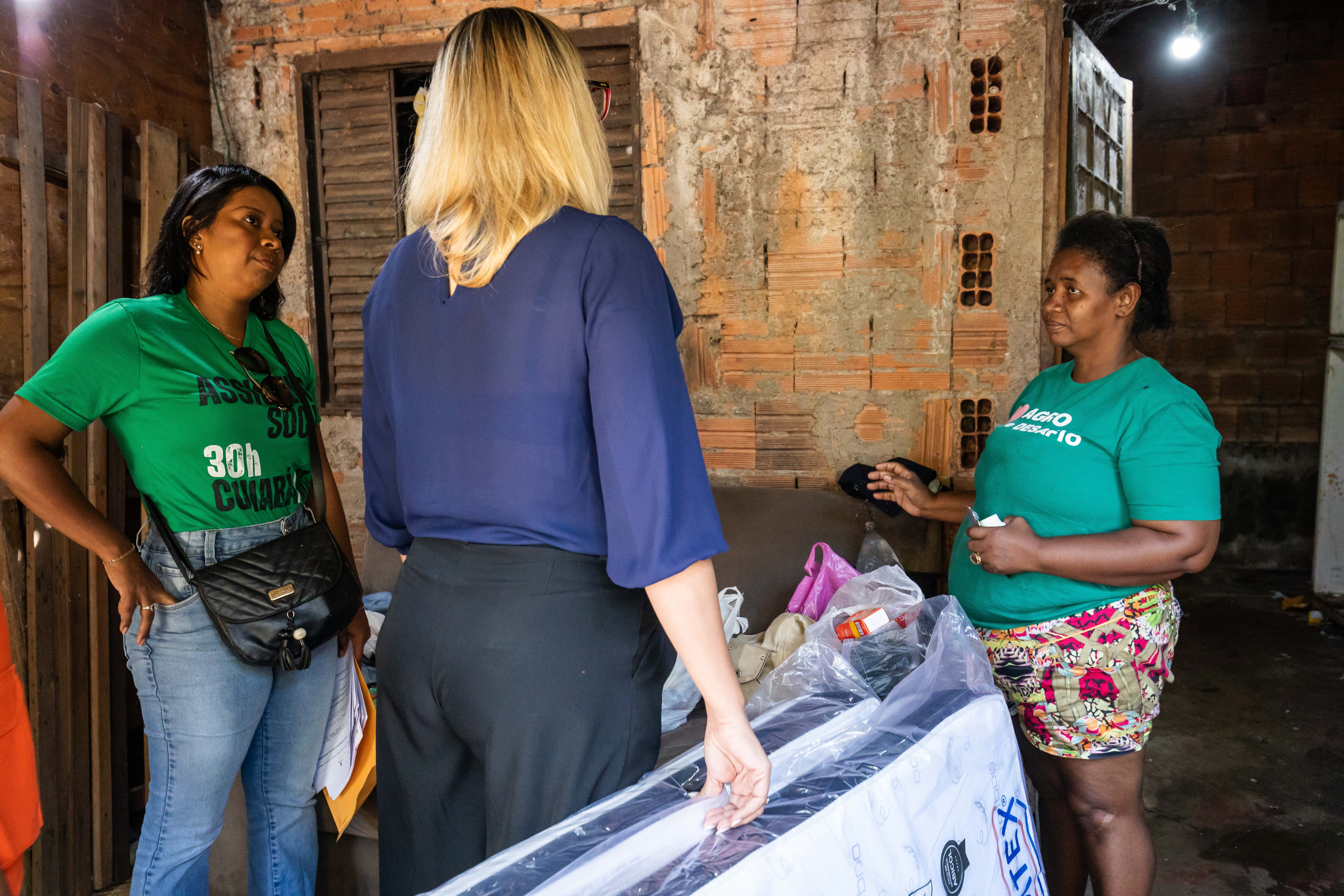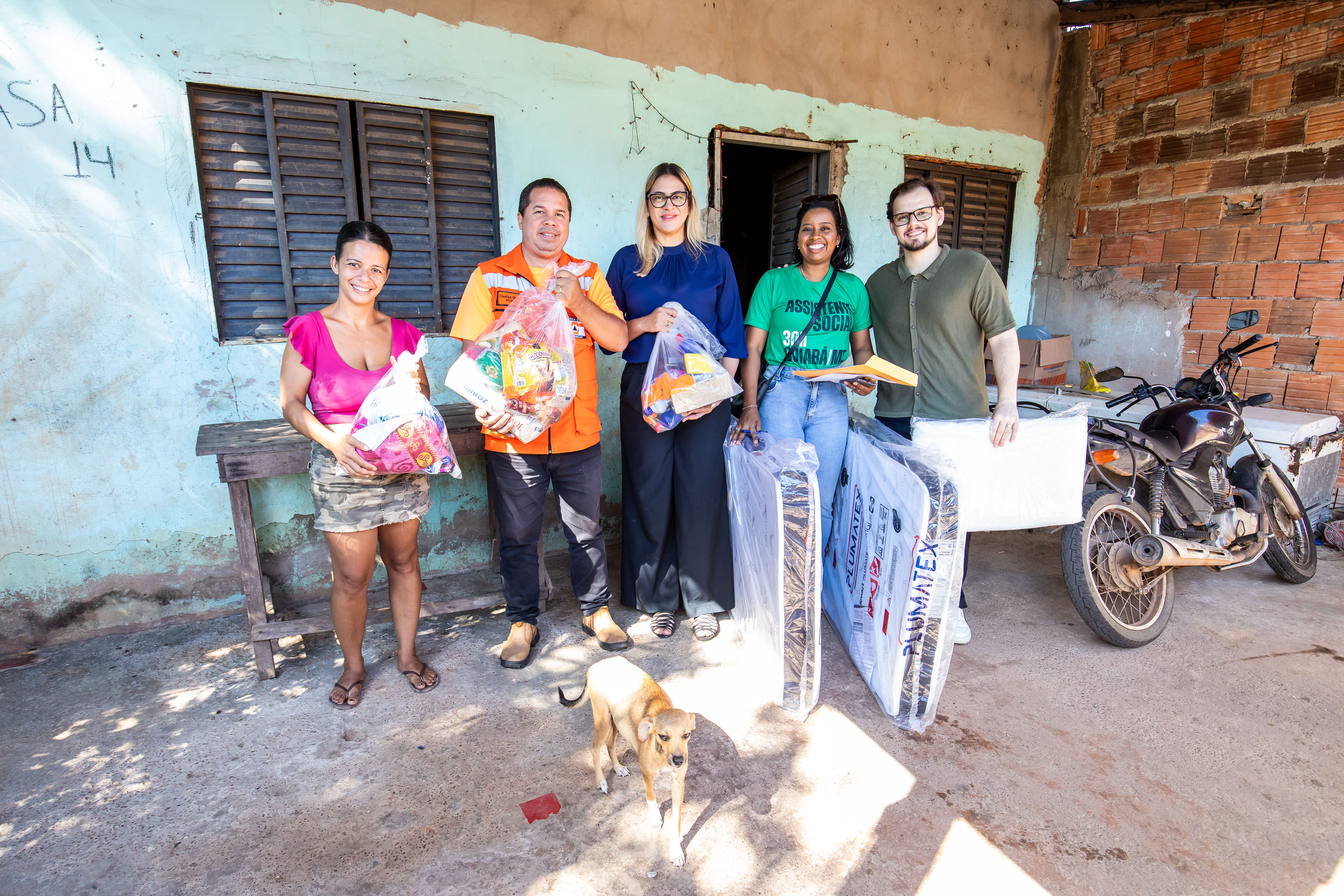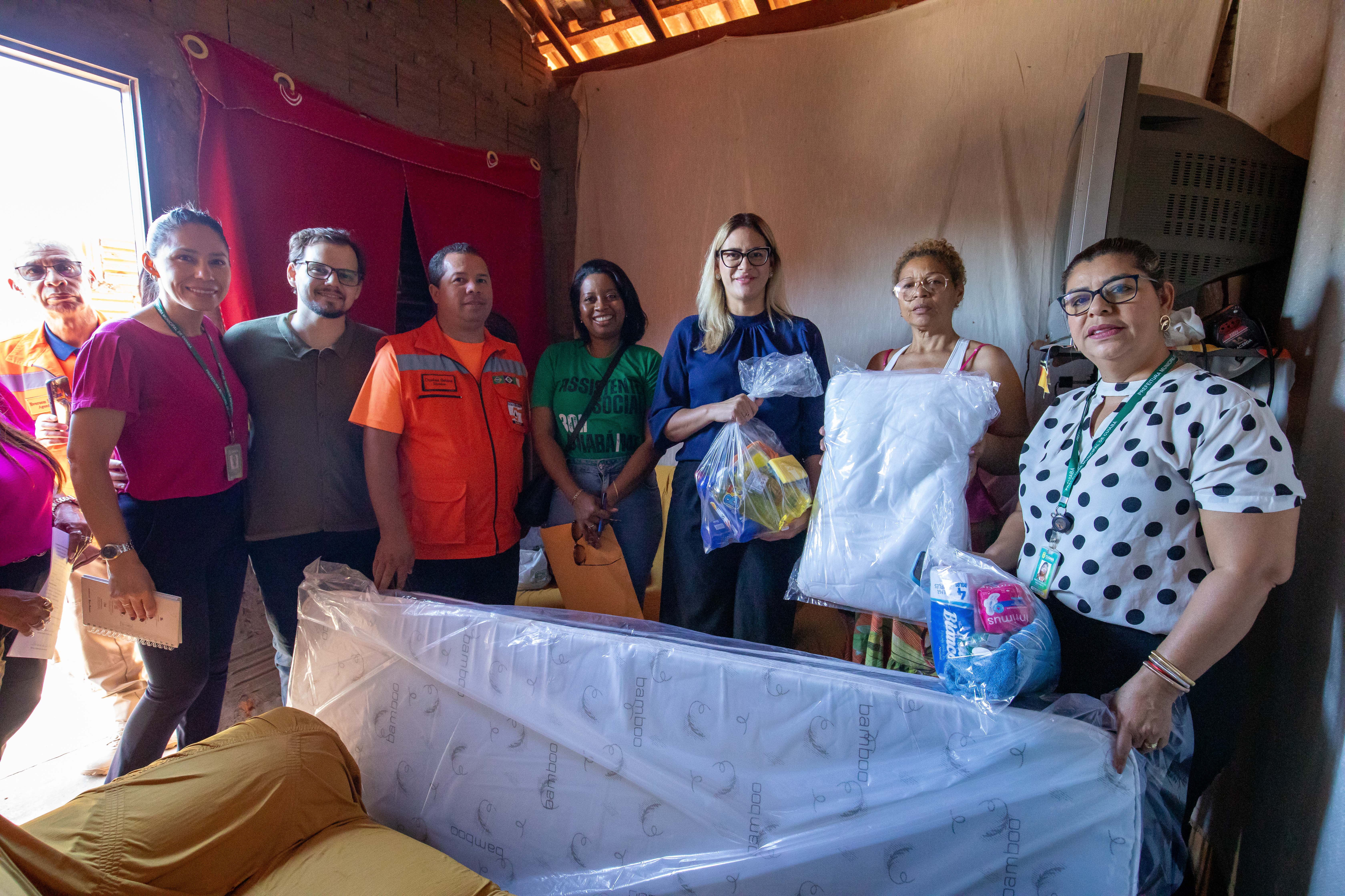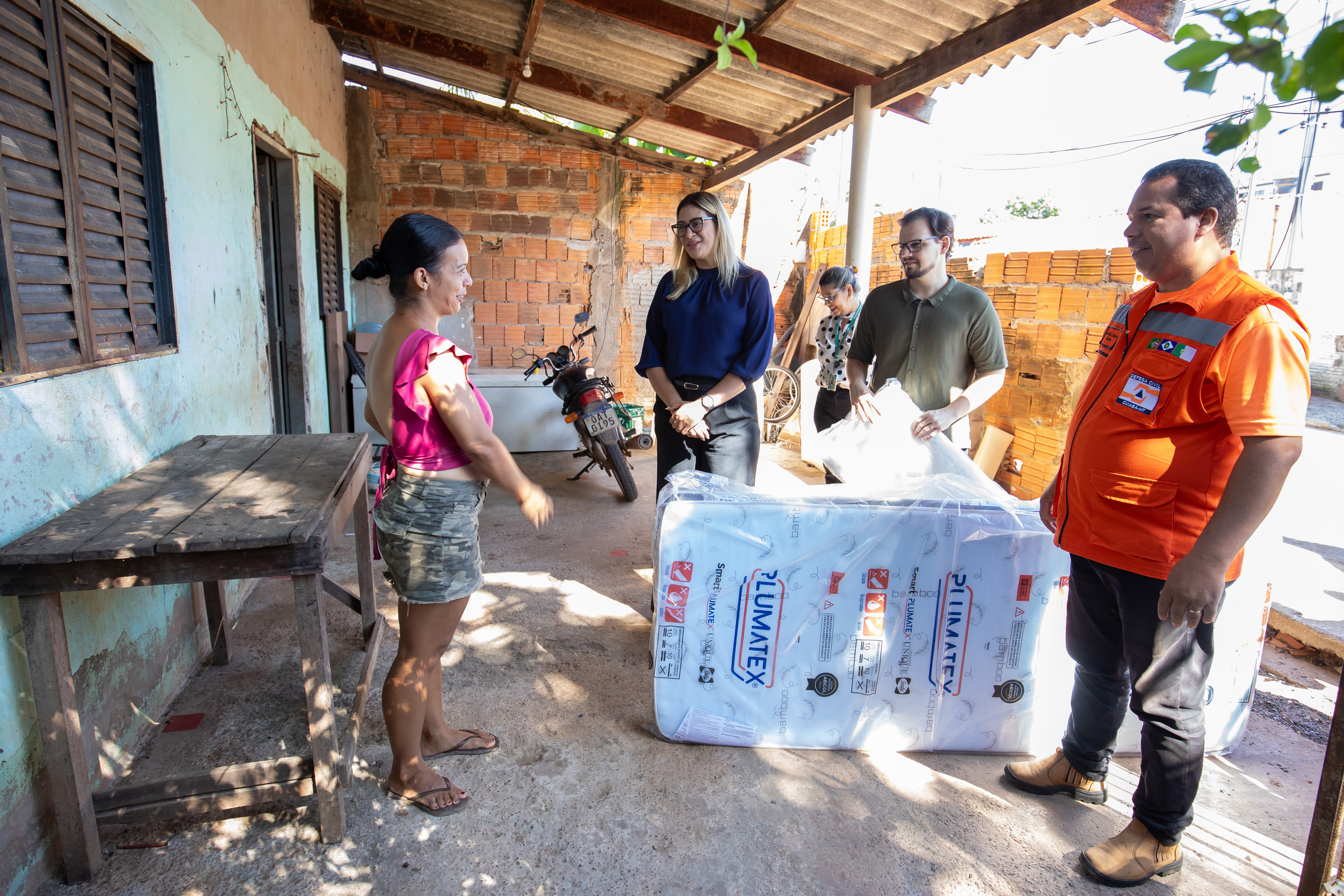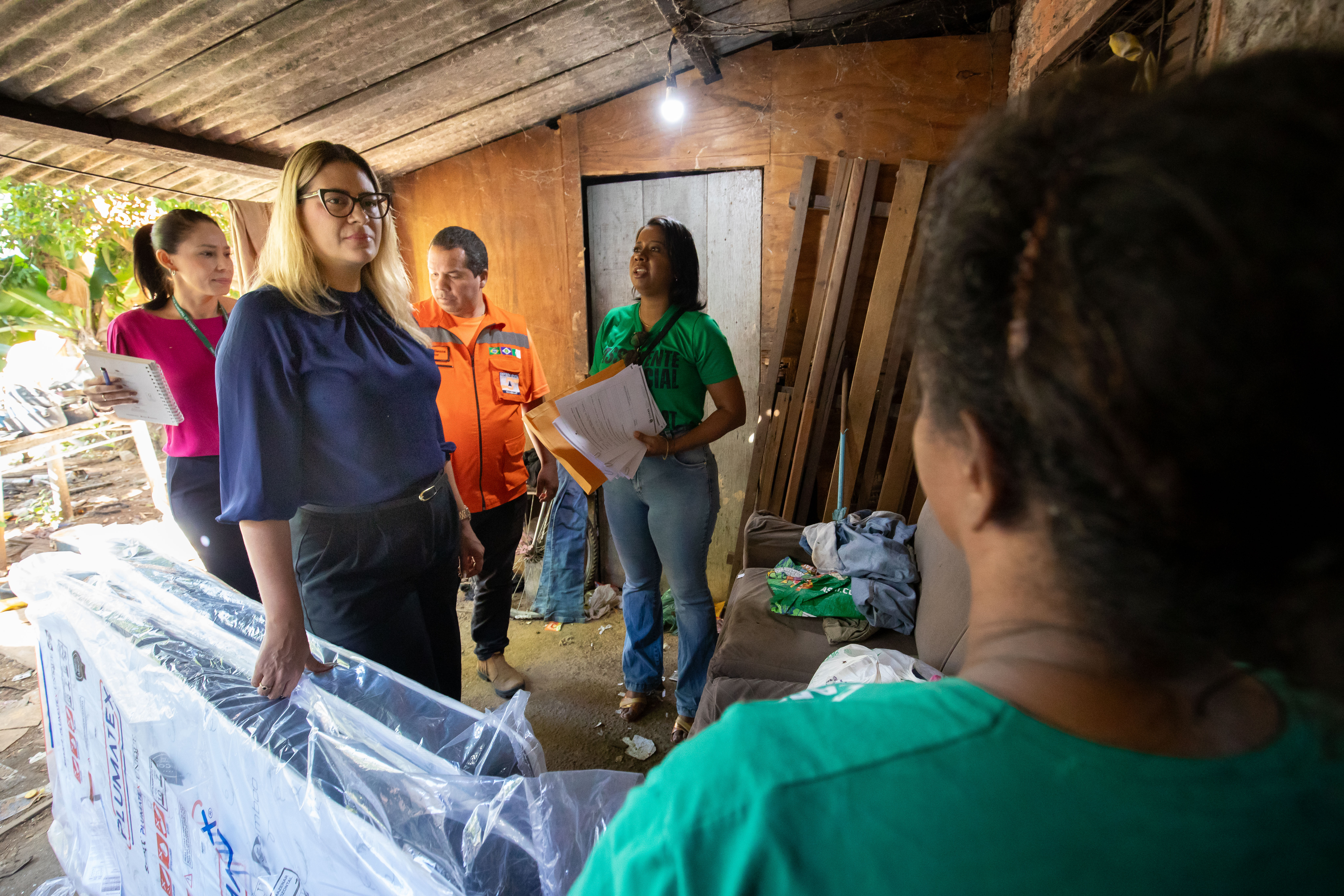 Durante as visitas, além de conversar com as famílias sobre suas principais demandas, Paolla Reis entregou cestas básicas, kits de limpeza e colchões. Estes últimos foram disponibilizados por meio de uma parceria entre a Defesa Civil Municipal e a Defesa Civil Estadual.