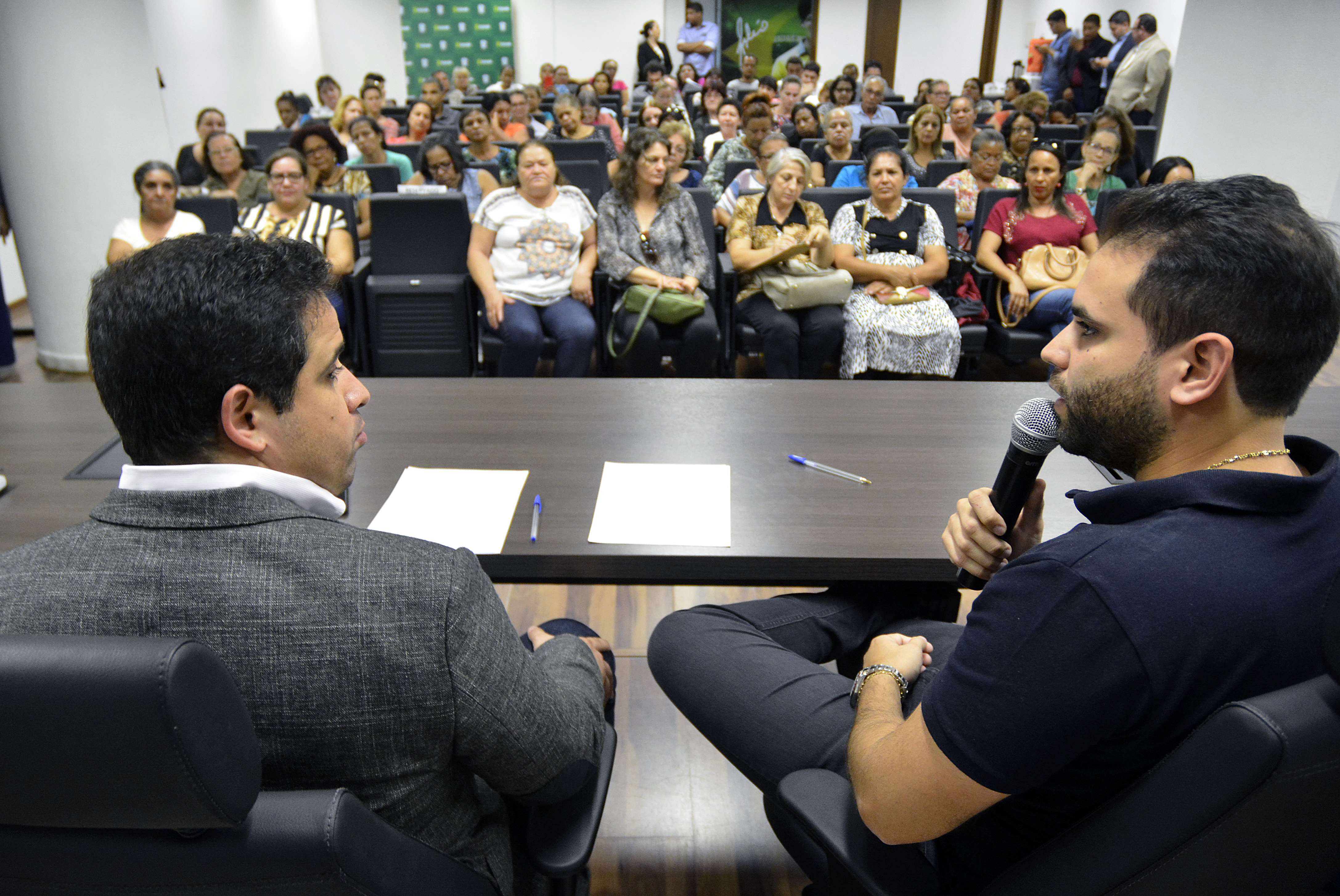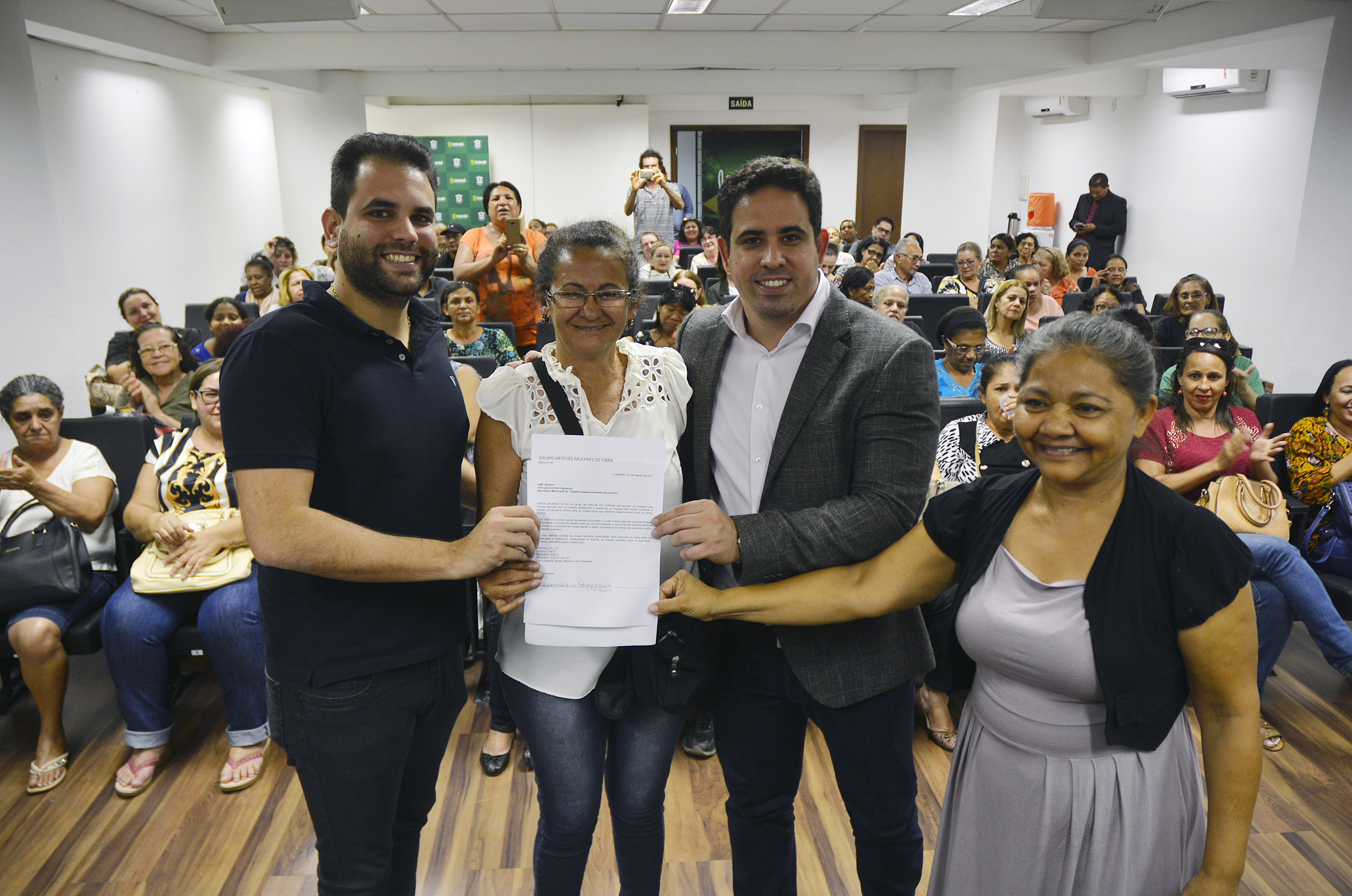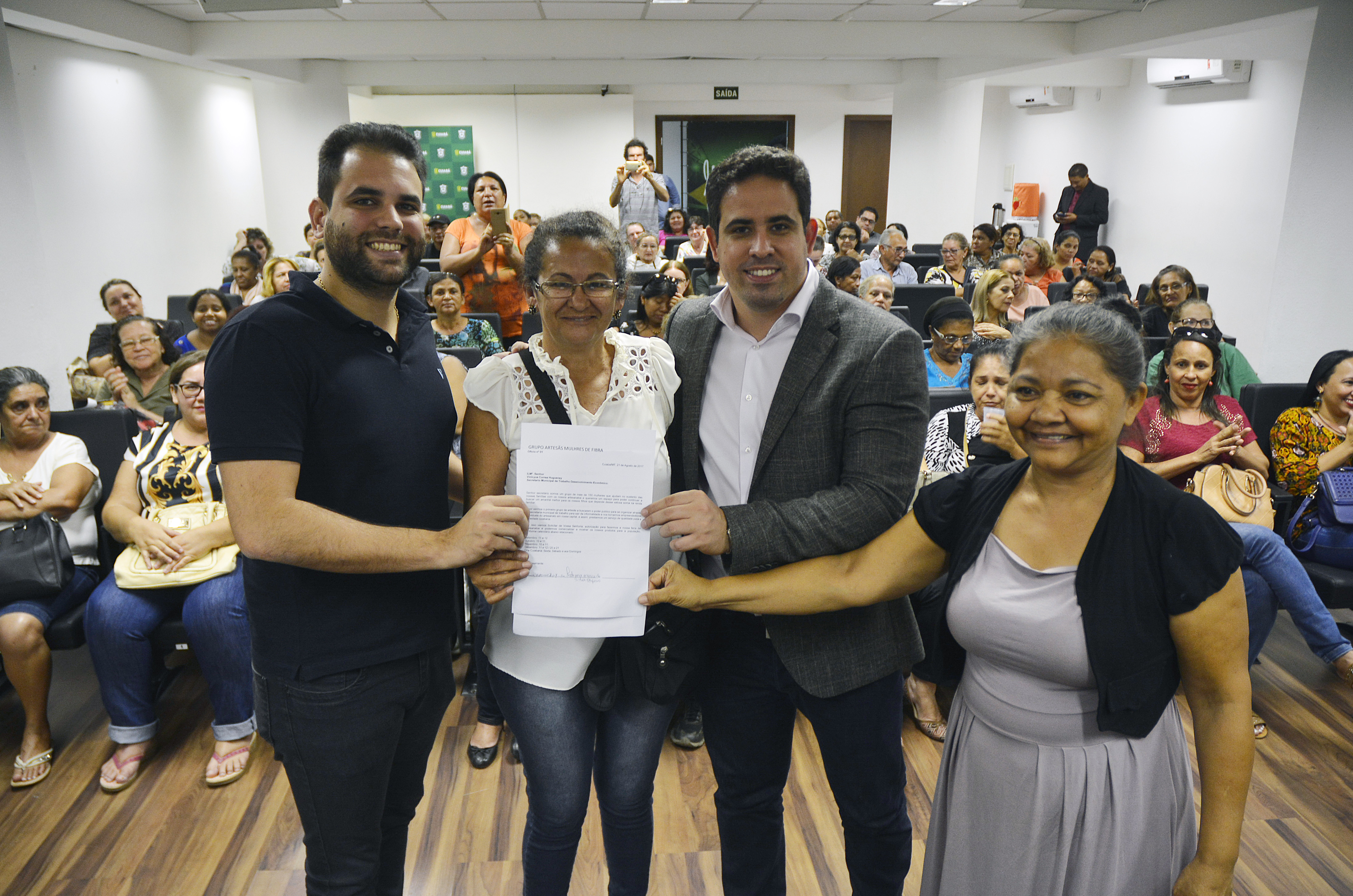 O prefeito em exercício, Niuan Ribeiro, e secretário de Trabalho e Desenvolvimento Econômico, Vinicius Hugueney, receberam nesta segunda-feira, 21, no auditório do Palácio Alencastro, o grupo de artesãs “Mulheres de Fibra”, a fim de delinearem assuntos pertinentes à classe.