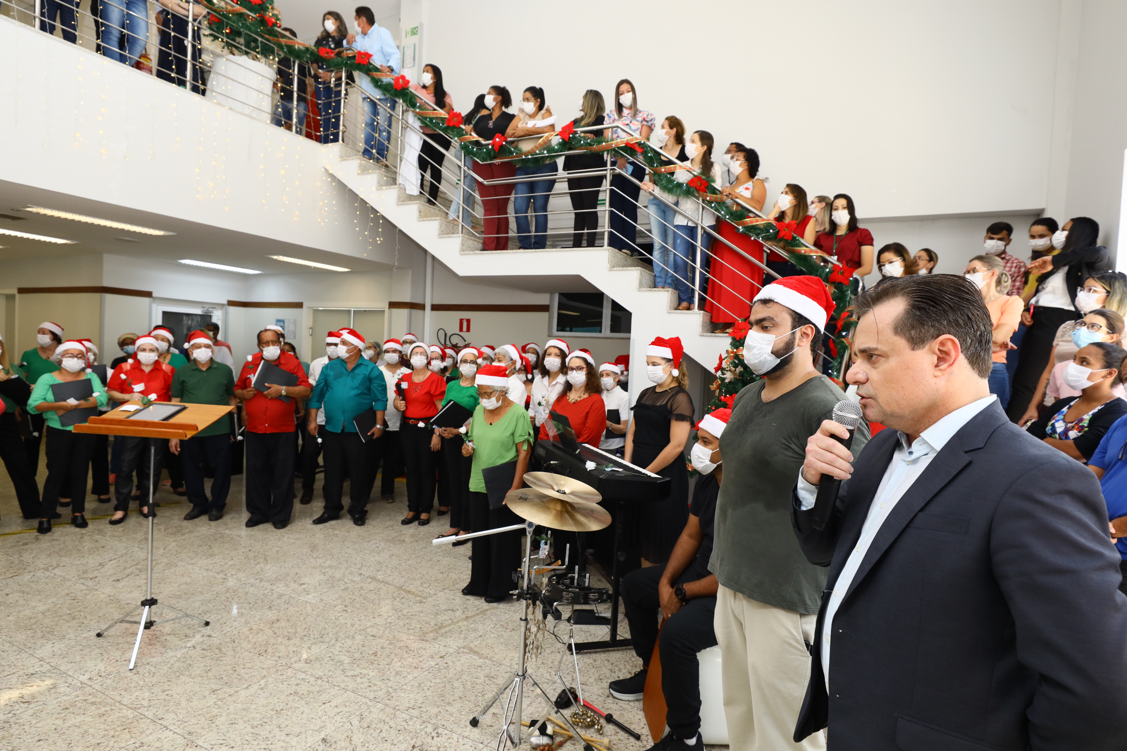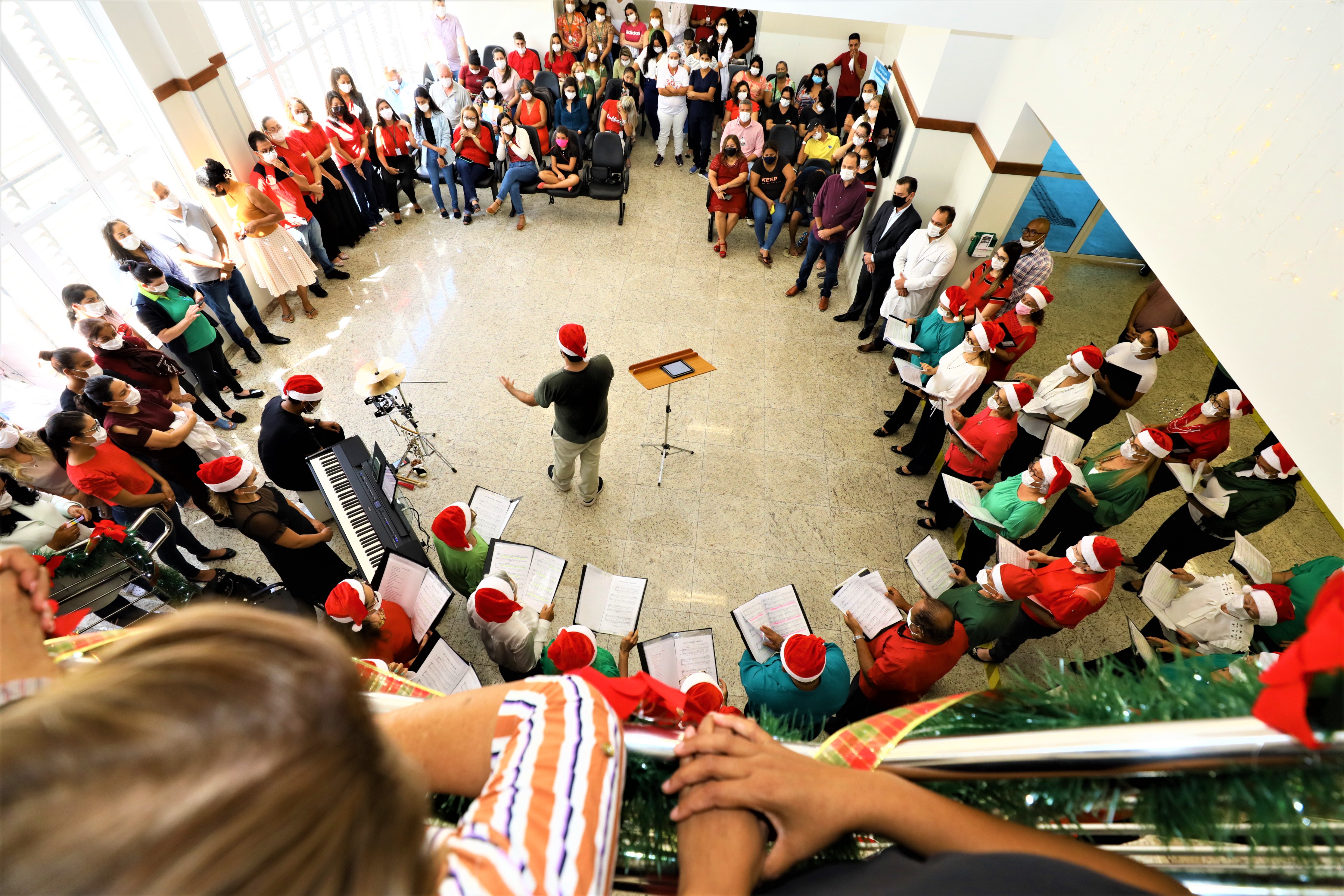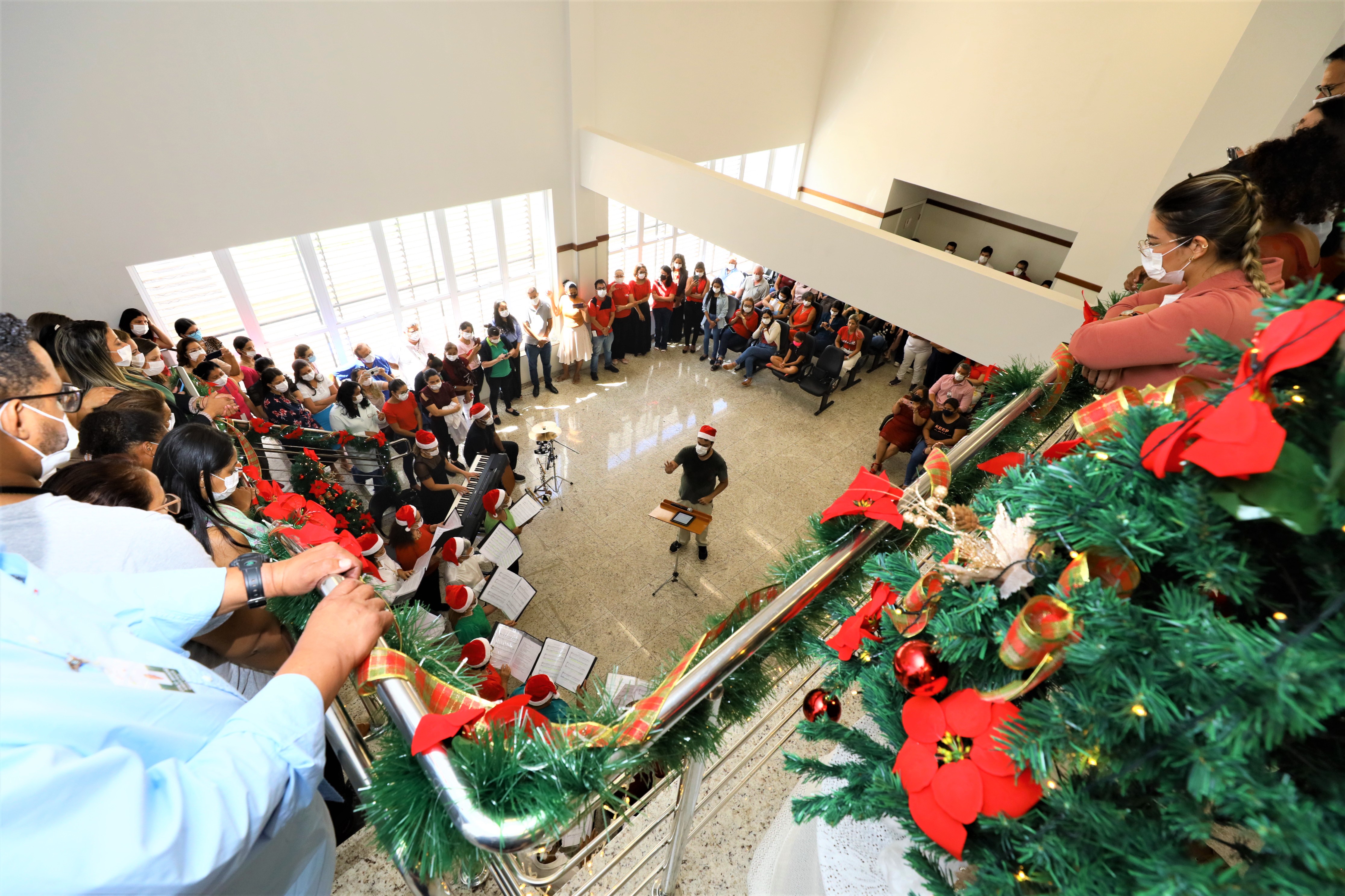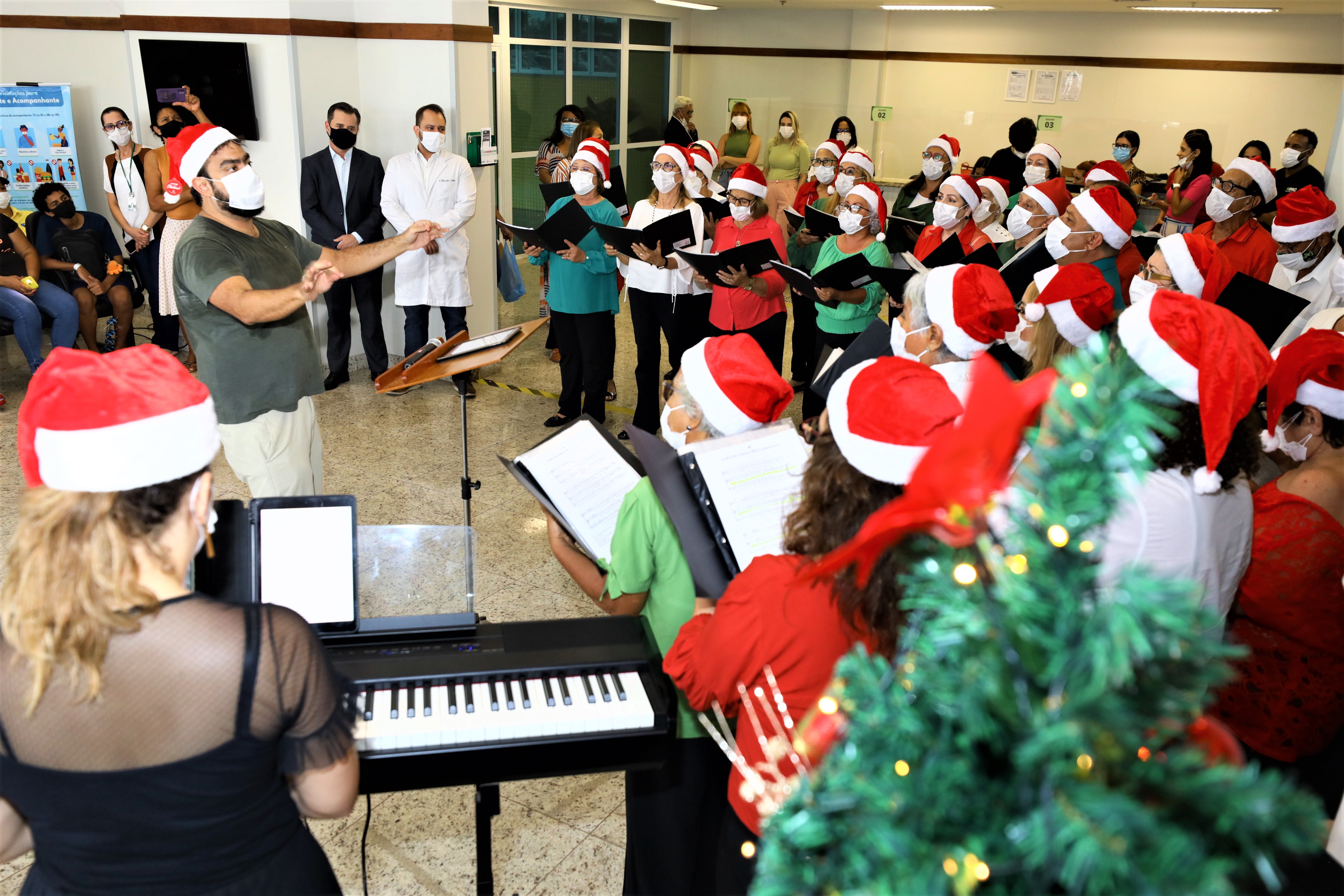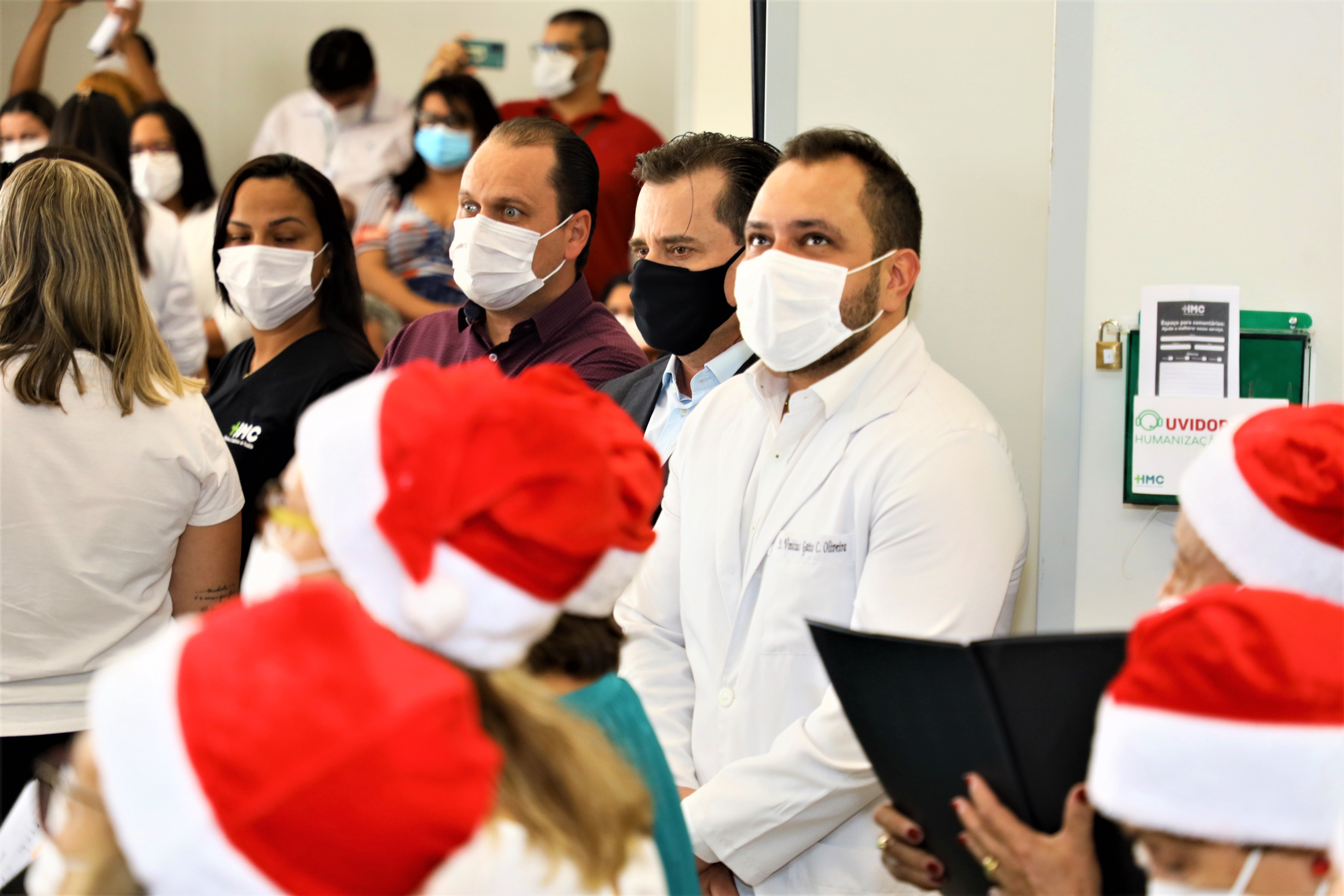 Para iniciar o mês natalino, o Hospital Municipal de Cuiabá e Pronto-Socorro “Dr. Leony Palma de Carvalho” (HMC) e Hospital Municipal São Benedito (HMSB), ambos geridos pela Empresa Cuiabana de Saúde Pública (ECSP), sob a administração do prefeito Emanuel Pinheiro, abriu o mês de dezembro com decoração e cantata de natal, na quarta-feira (7). A ação faz parte do Projeto Acolher e envolve vários setores dos dois hospitais.
