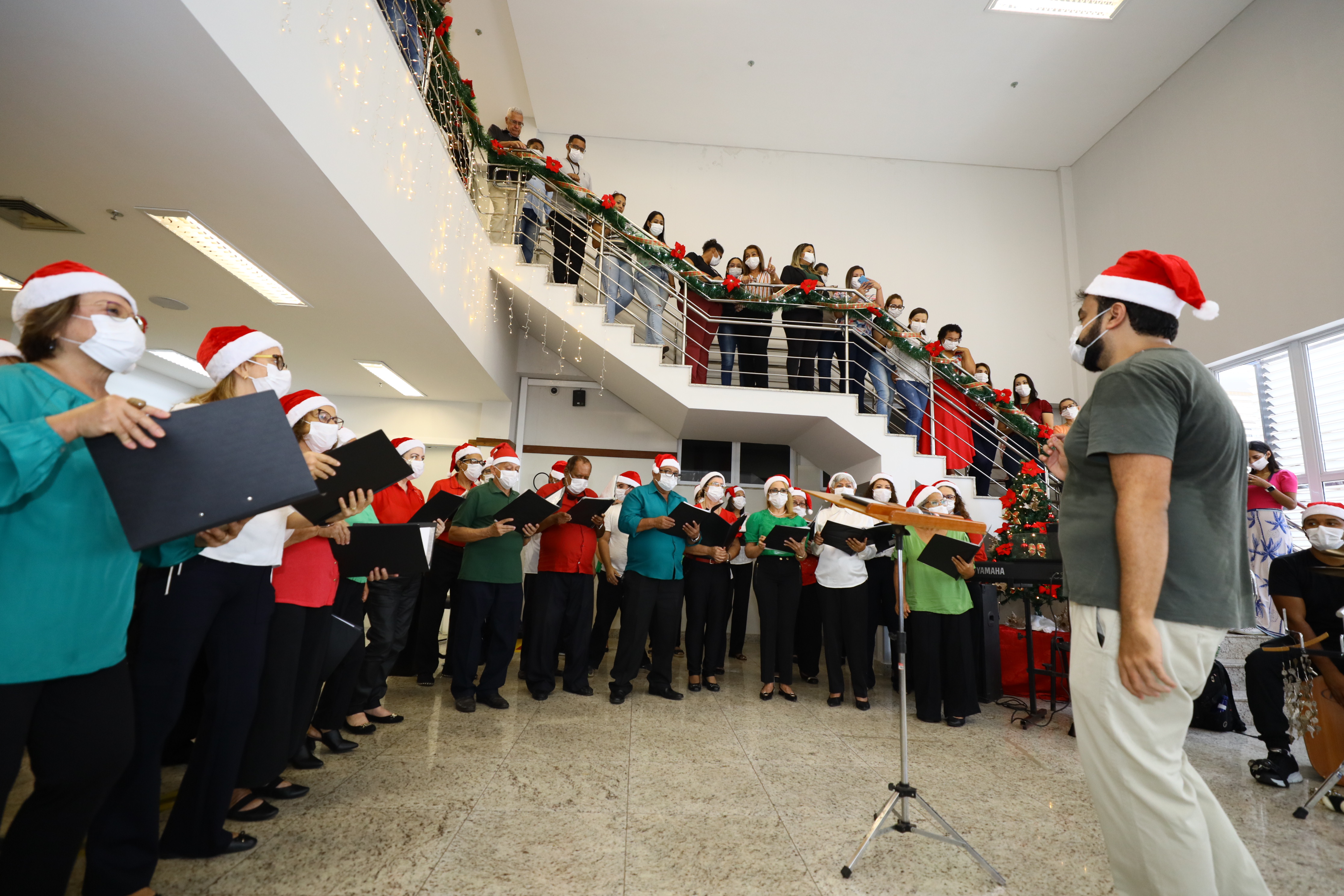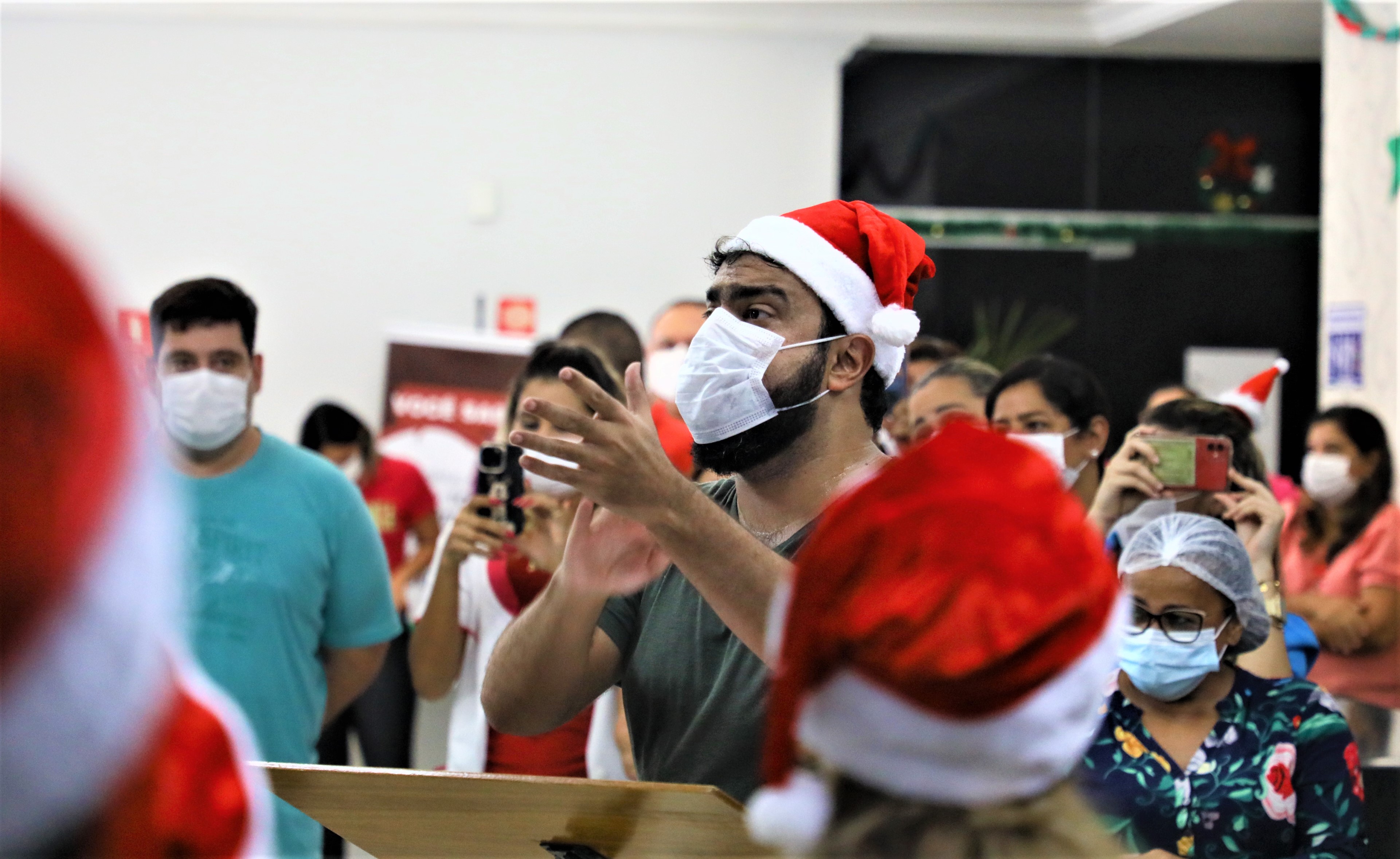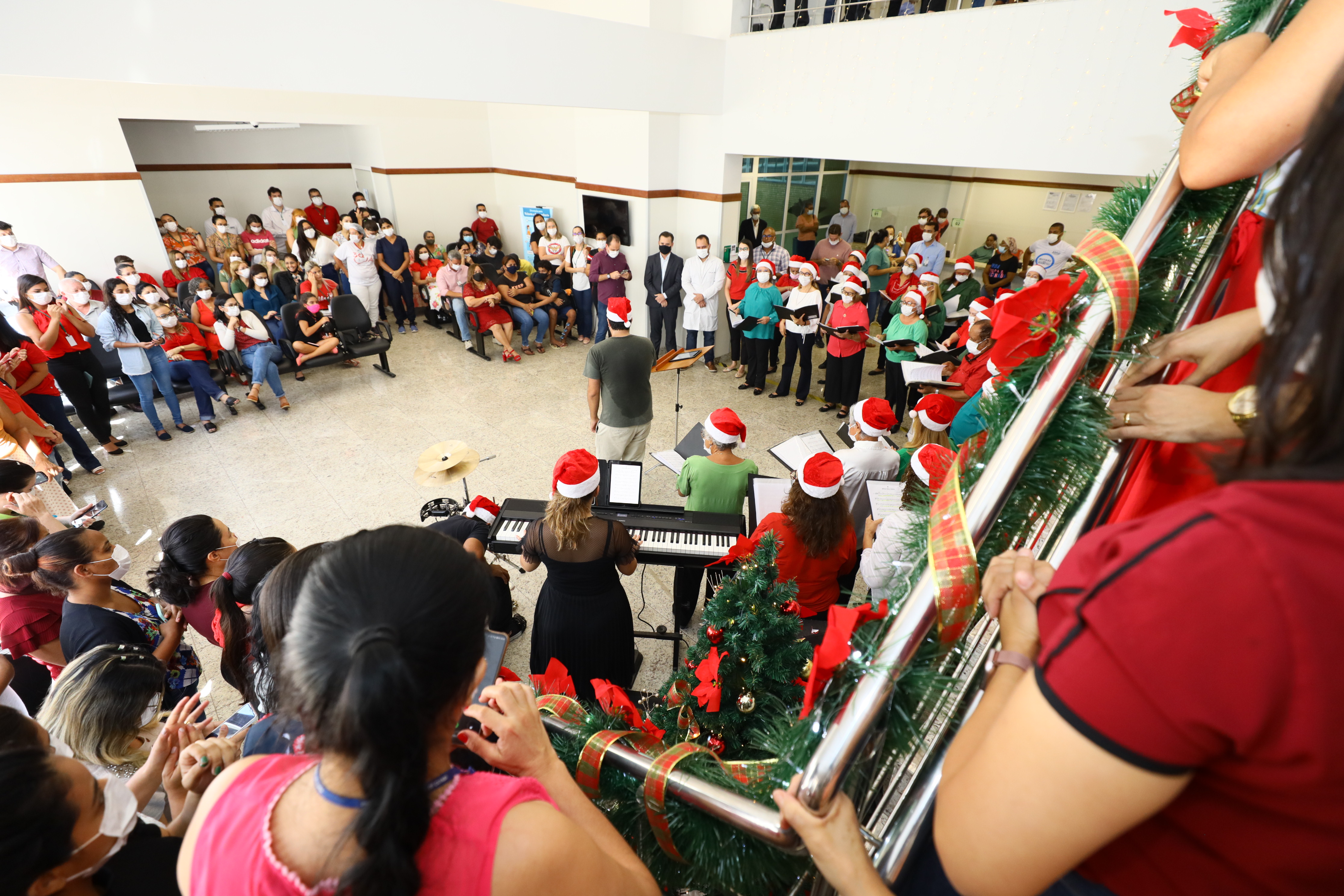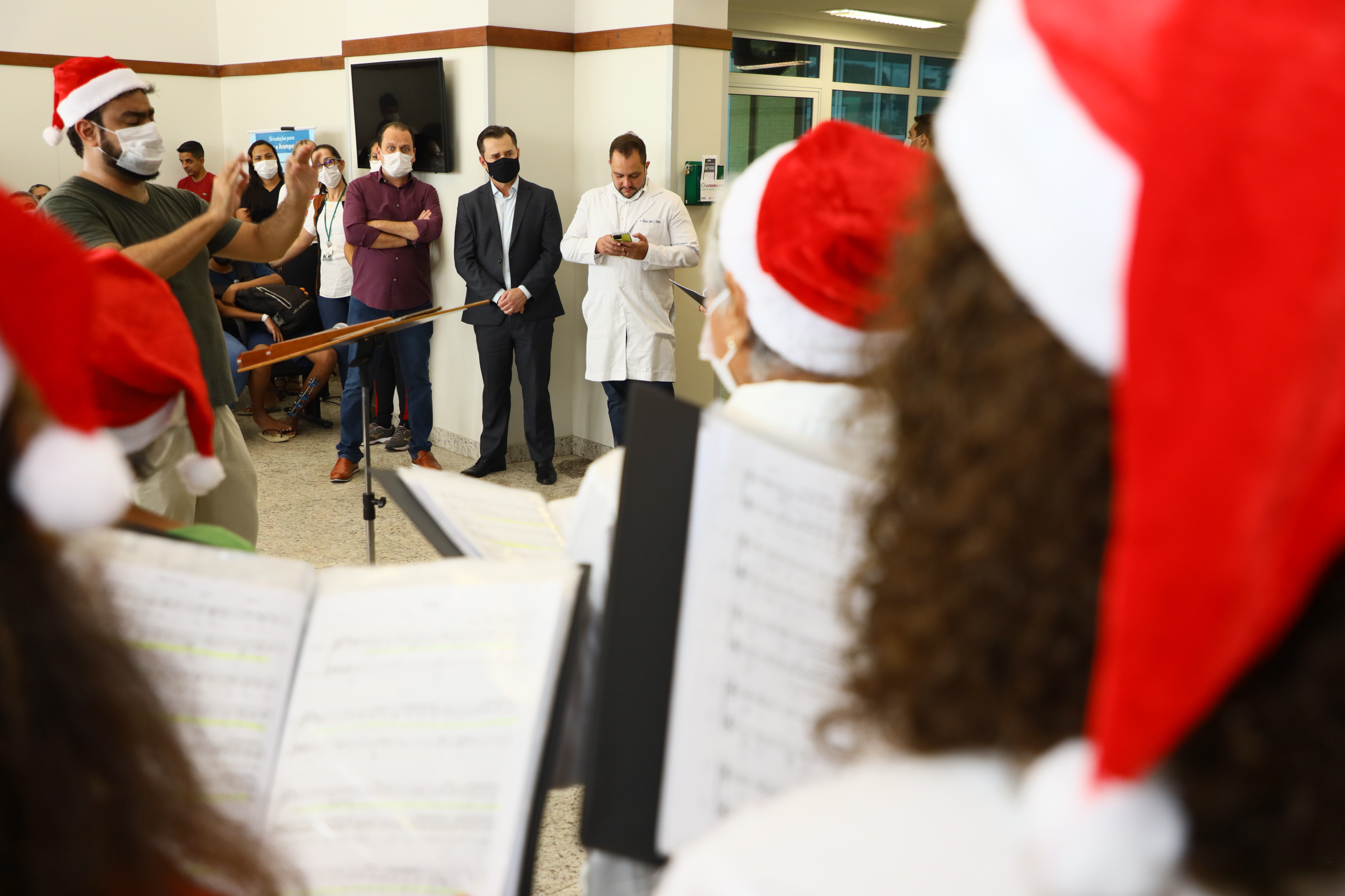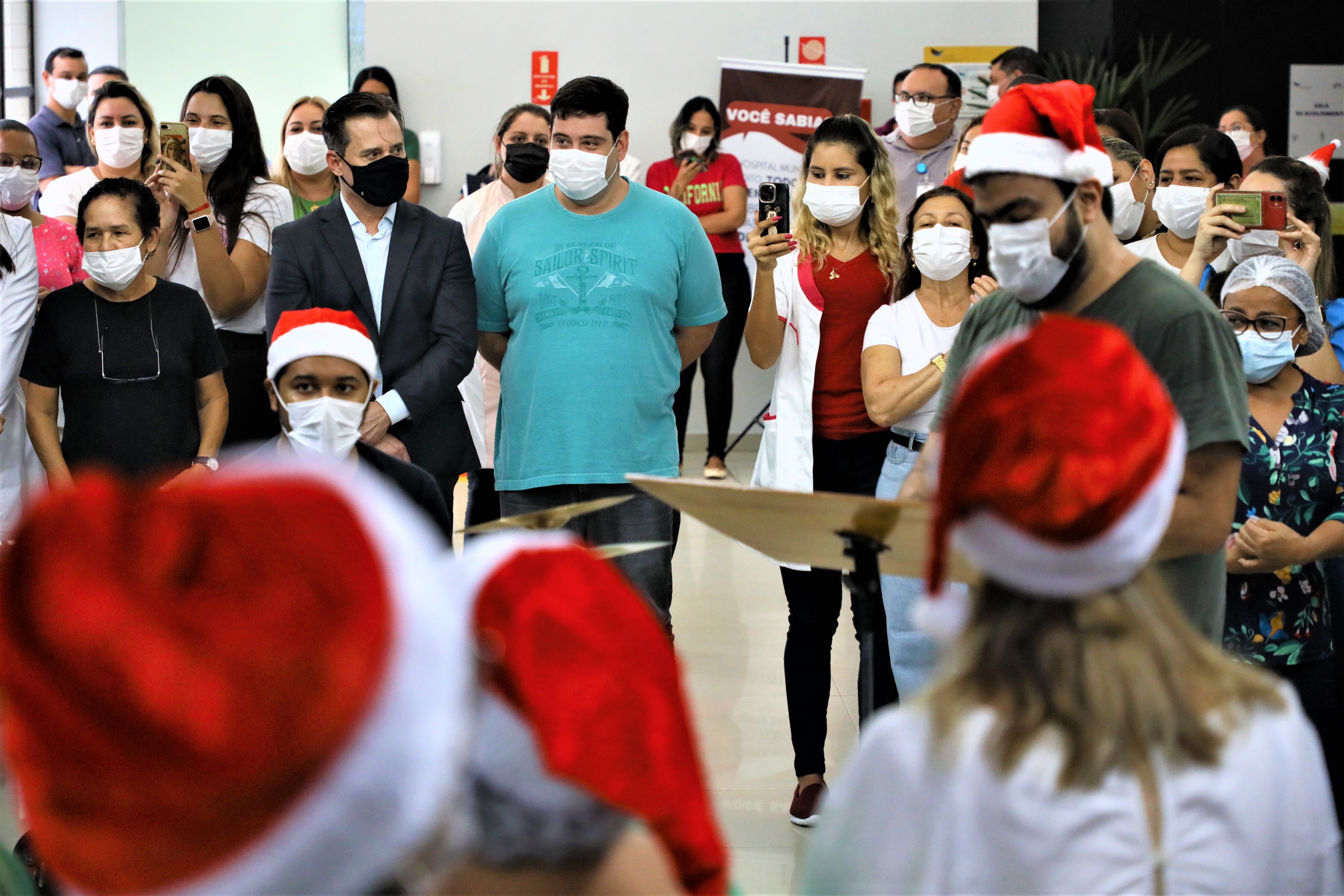 Para iniciar o mês natalino, o Hospital Municipal de Cuiabá e Pronto-Socorro “Dr. Leony Palma de Carvalho” (HMC) e Hospital Municipal São Benedito (HMSB), ambos geridos pela Empresa Cuiabana de Saúde Pública (ECSP), sob a administração do prefeito Emanuel Pinheiro, abriu o mês de dezembro com decoração e cantata de natal, na quarta-feira (7). A ação faz parte do Projeto Acolher e envolve vários setores dos dois hospitais.