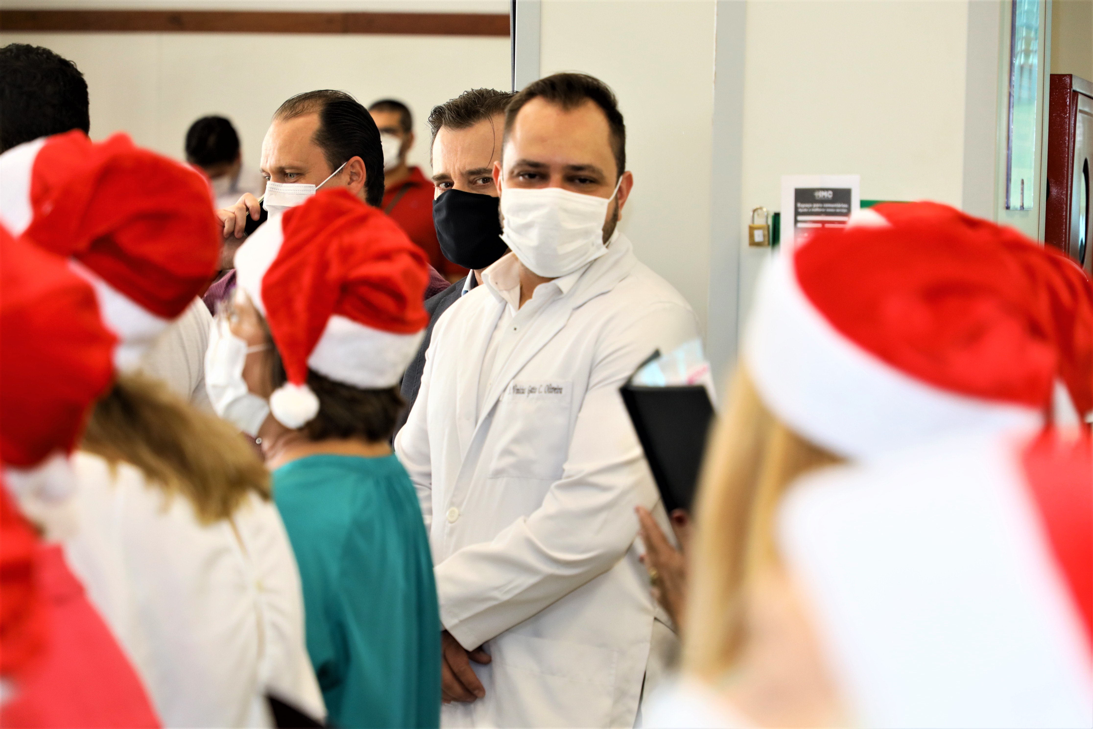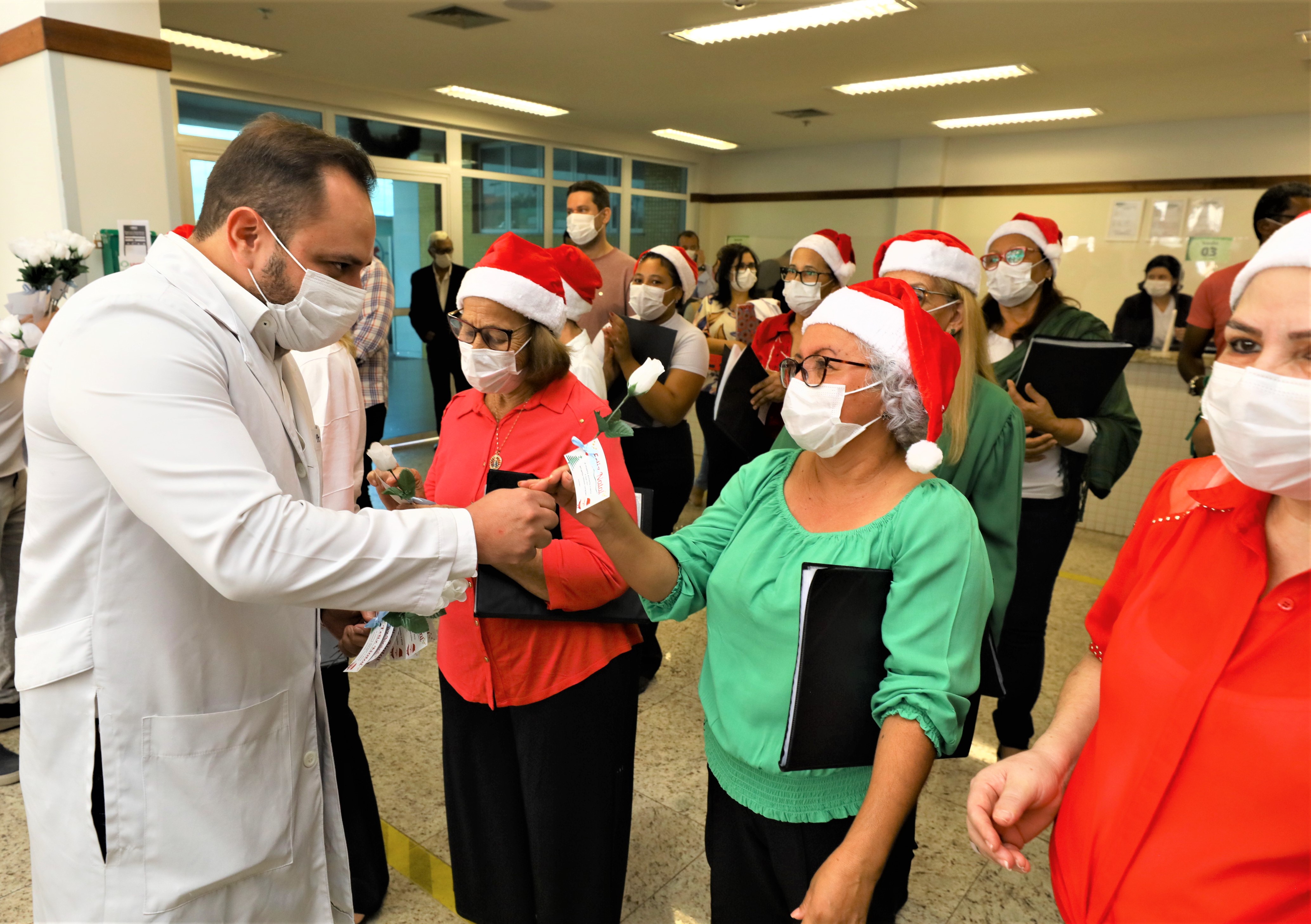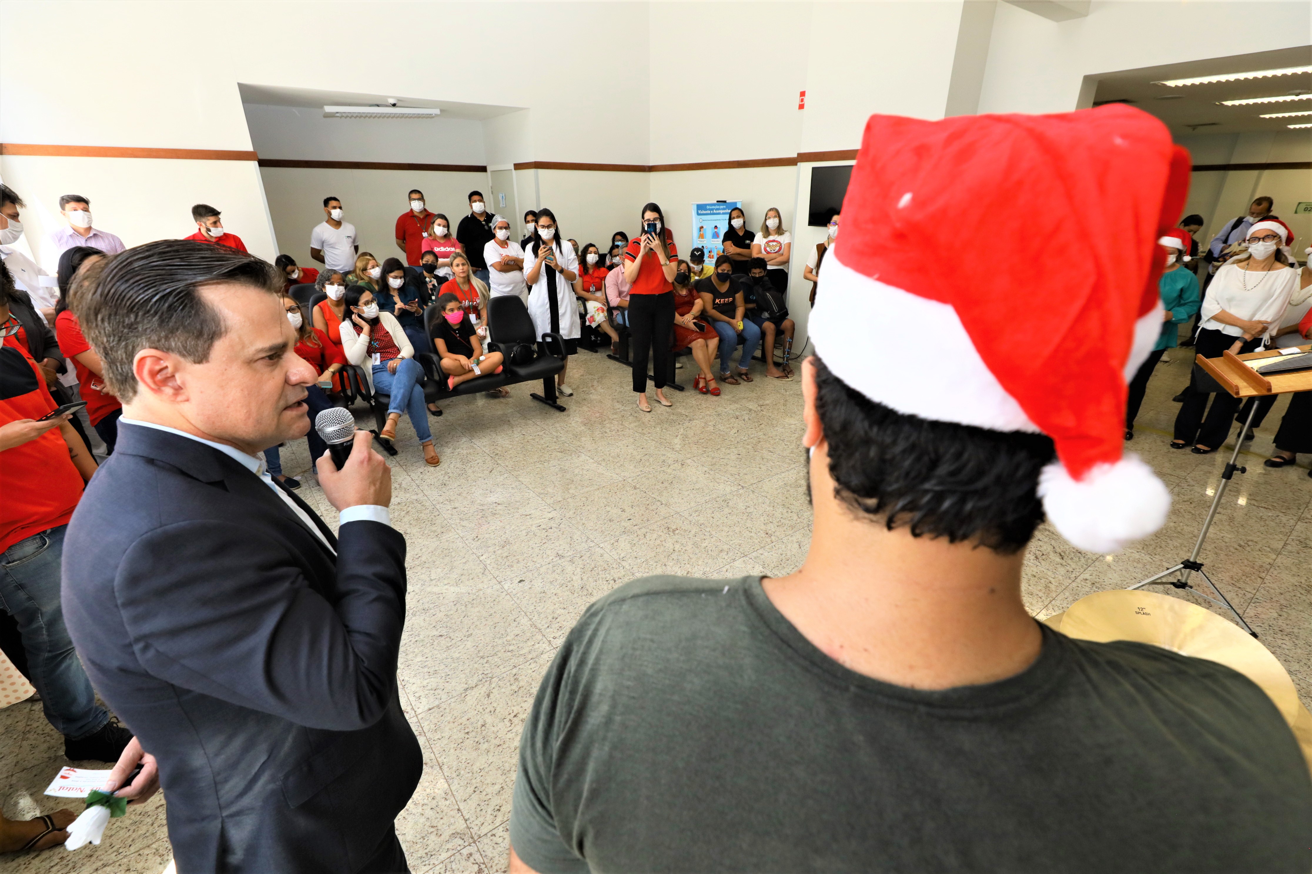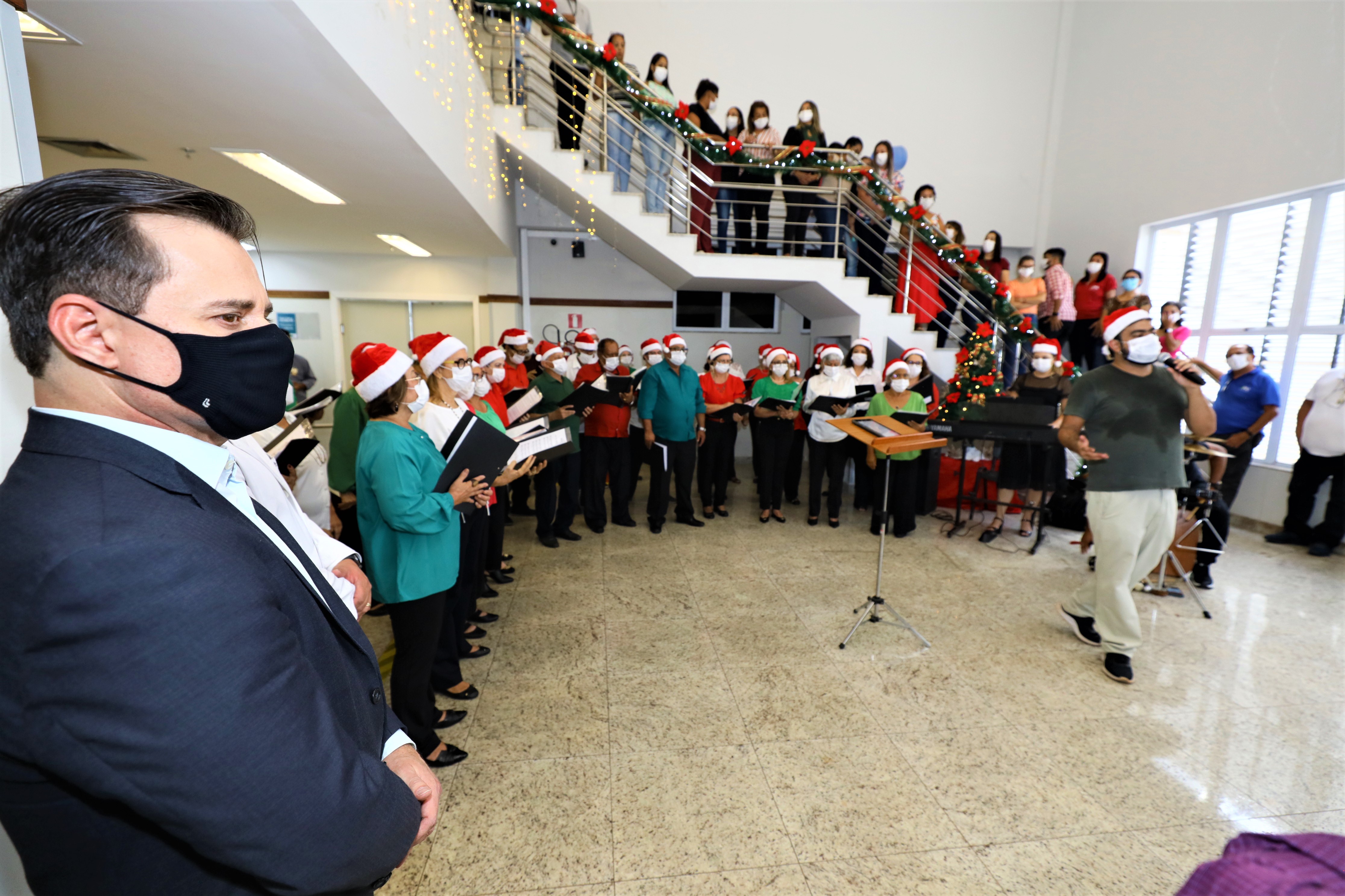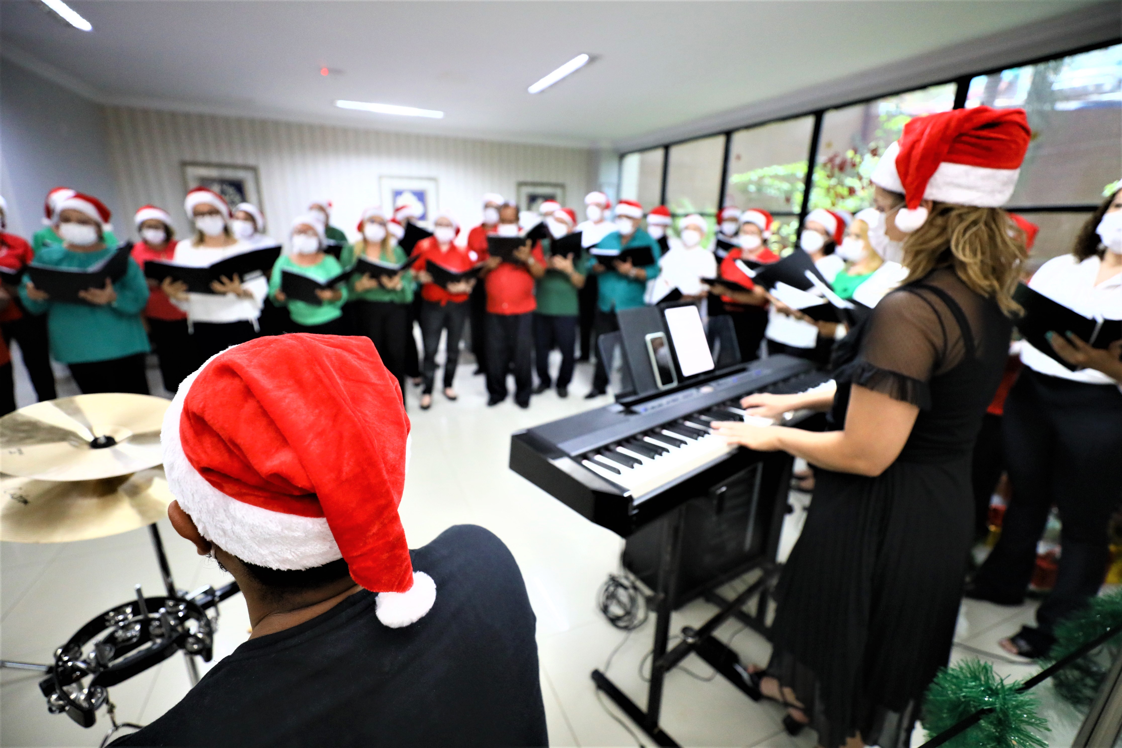Para iniciar o mês natalino, o Hospital Municipal de Cuiabá e Pronto-Socorro “Dr. Leony Palma de Carvalho” (HMC) e Hospital Municipal São Benedito (HMSB), ambos geridos pela Empresa Cuiabana de Saúde Pública (ECSP), sob a administração do prefeito Emanuel Pinheiro, abriu o mês de dezembro com decoração e cantata de natal, na quarta-feira (7). A ação faz parte do Projeto Acolher e envolve vários setores dos dois hospitais.