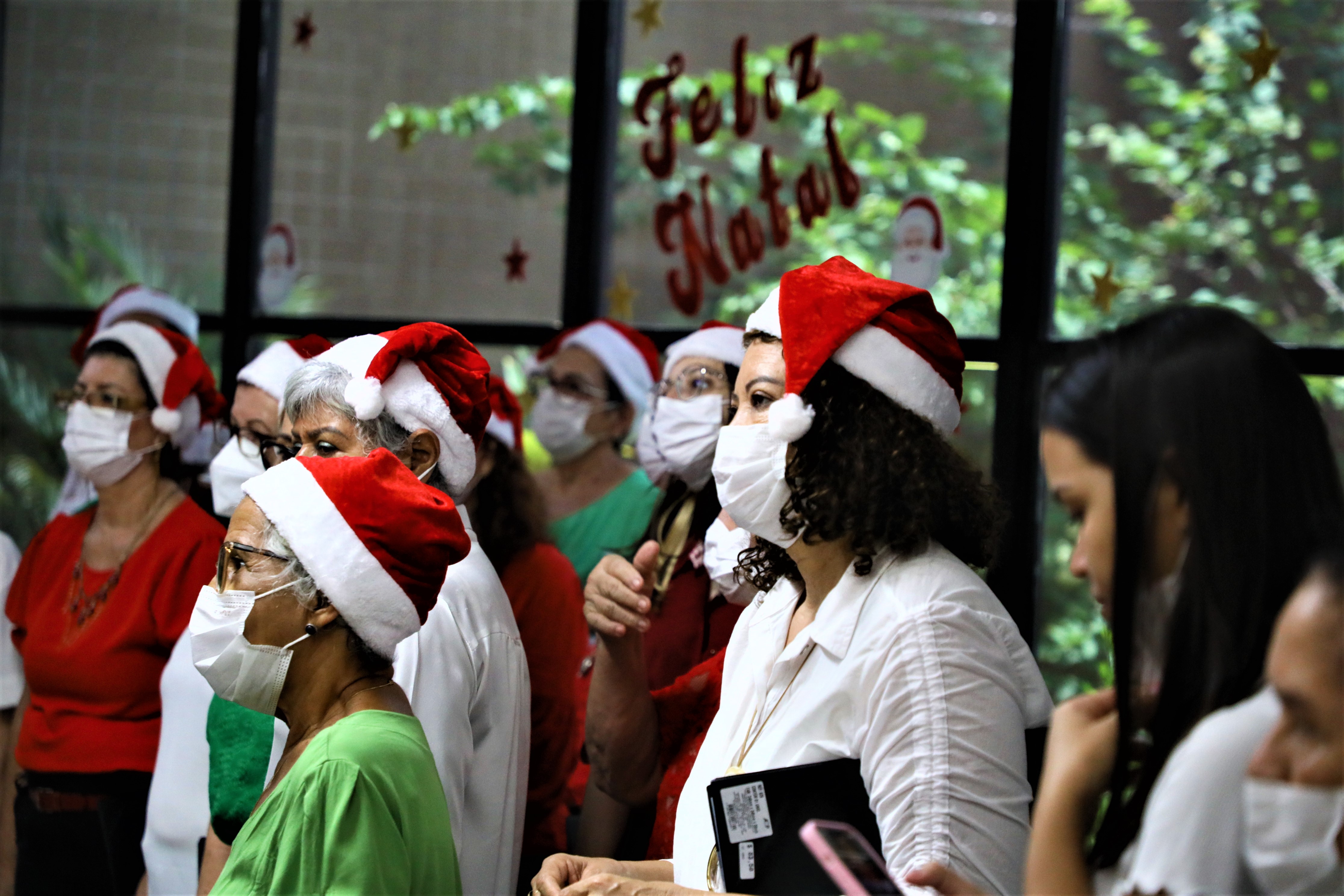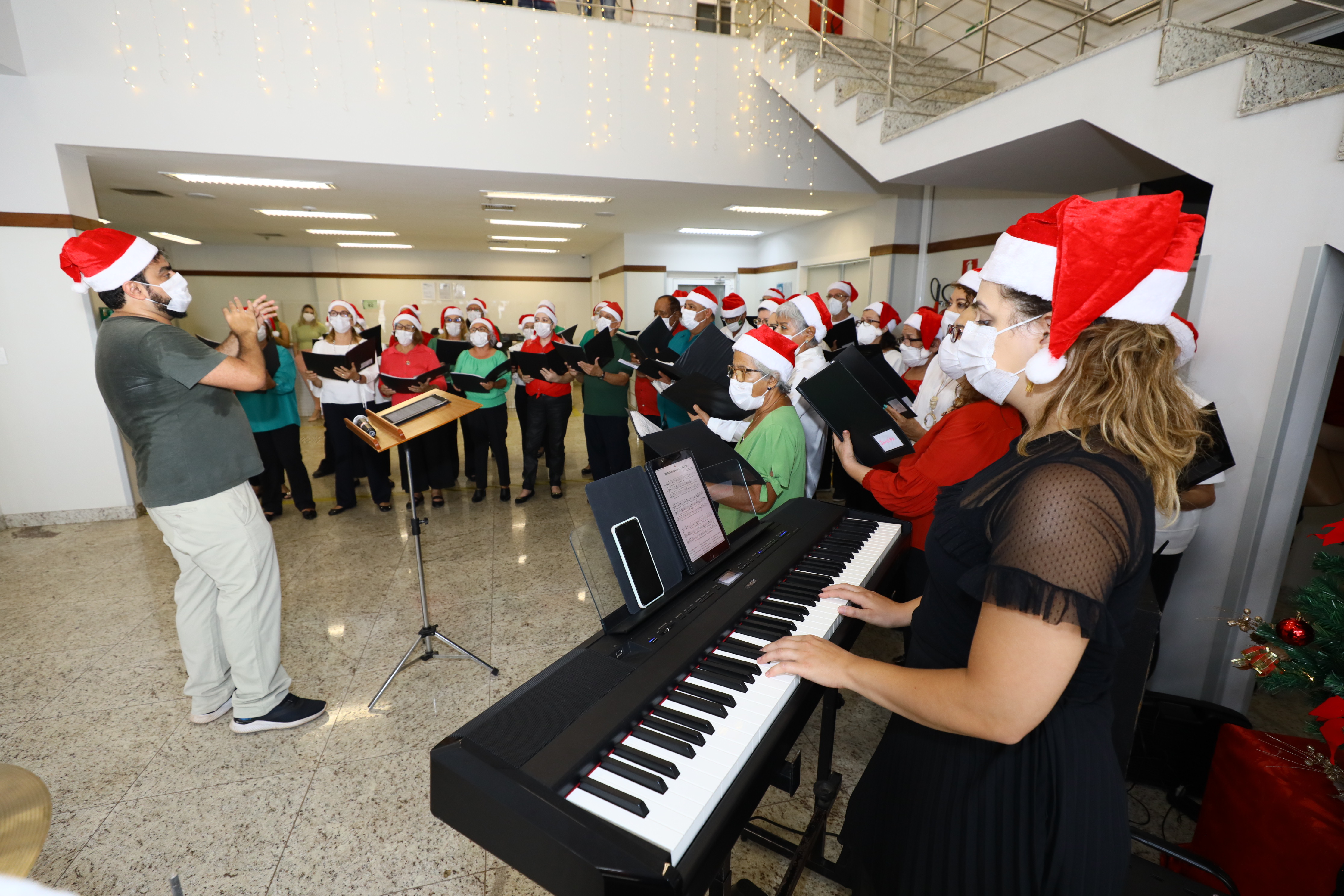Servidores, alguns pacientes, e seus familiares, acompanharam no saguão das unidades hospitalares, belas músicas do repertório de natal do coral da terceira idade da Universidade Federal de Mato Grosso (UFMT), que abrilhantaram o clima natalino.
