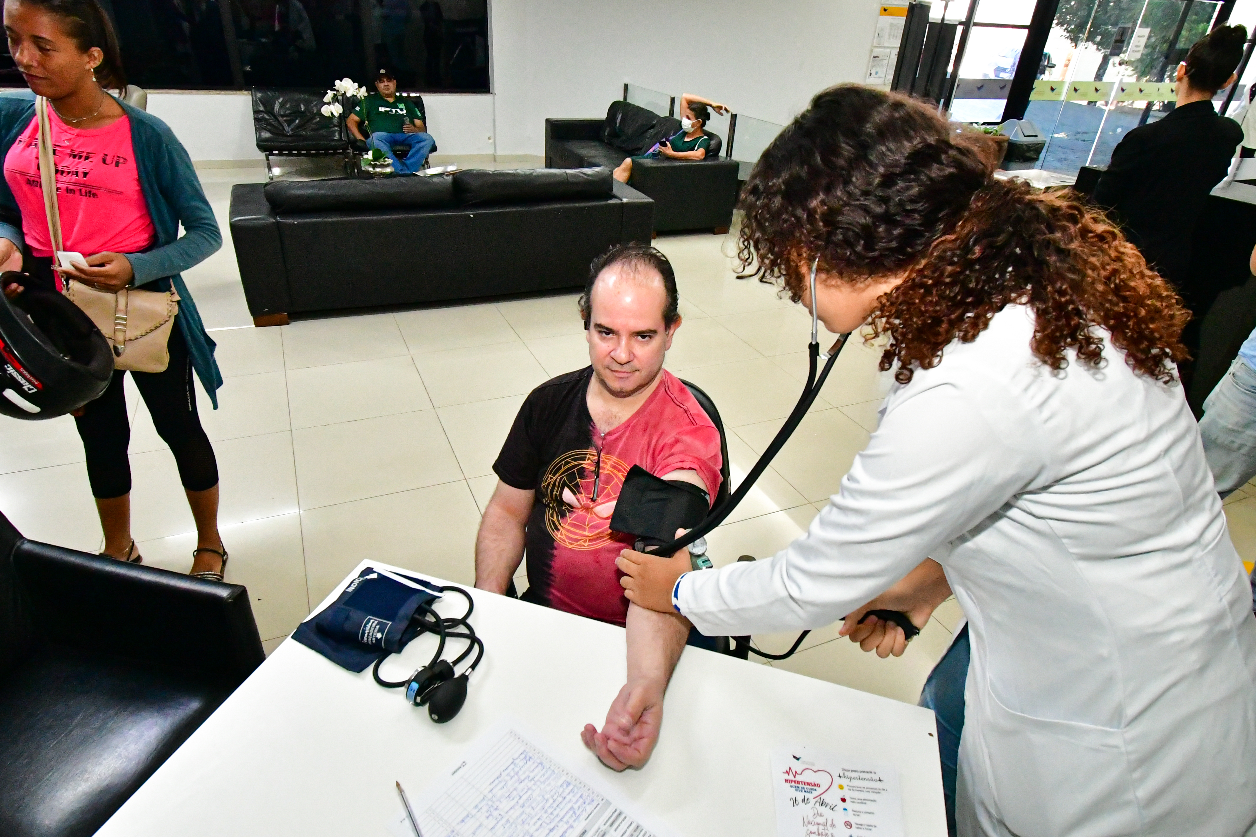 “As pessoas estão tão corridas que acabam deixando passar uma coisa importante, que é a aferição da pressão diariamente, e nós nos deparamos aqui com visitantes e profissionais com pressão alta, pessoas que nos relataram que não aferiram a pressão há um ano”, afirmou Khassiany Farias.
