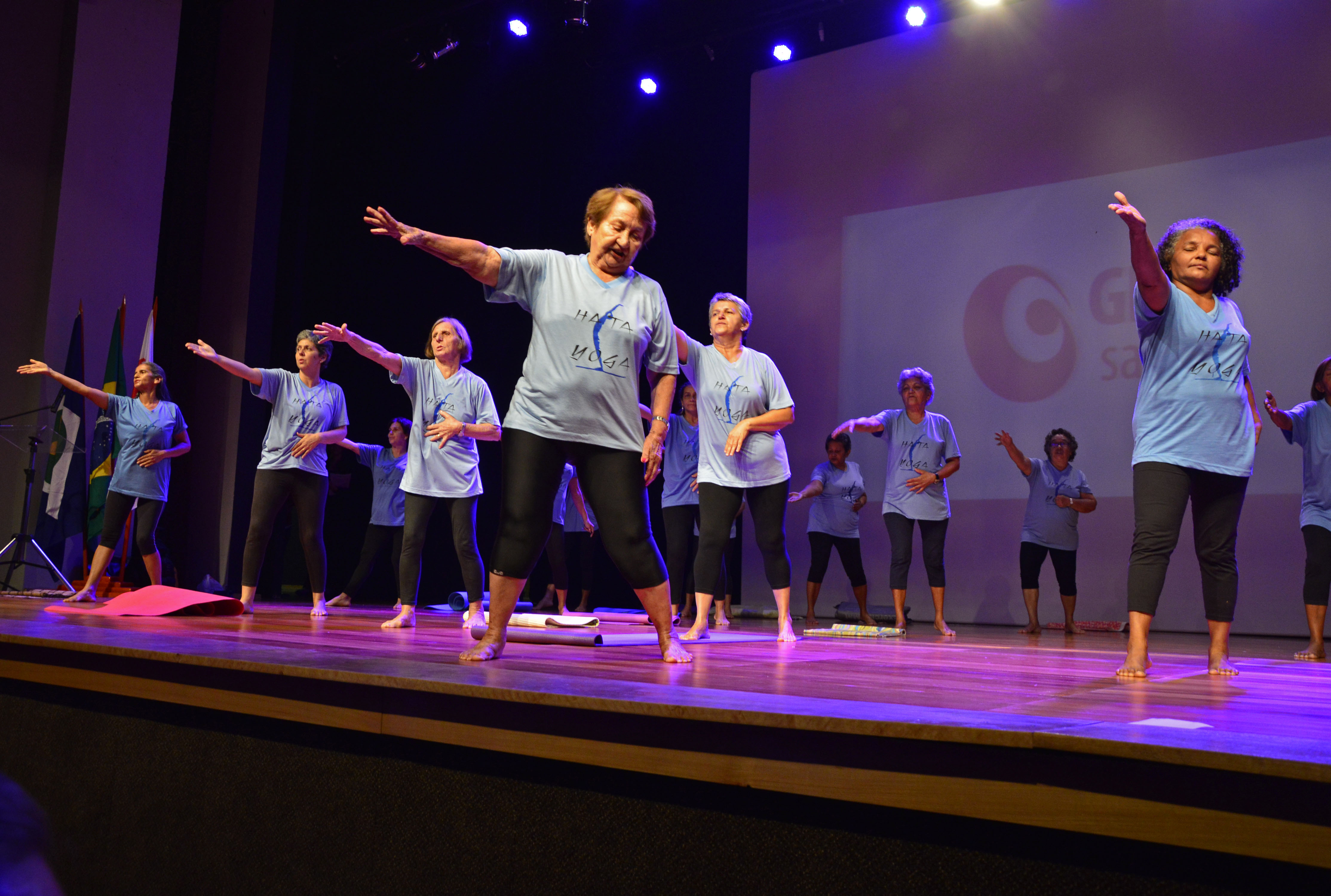 O grupo de idosos do “Padre Firmo” fez uma amostra sobre yoga e apresentou seis exercícios que são realizados durante as aulas que acontecem duas vezes por semana nos centros de convivência. O objetivo era mostrar a sociedade que ser idoso não é sinônimo de indisposição ou monotonia, de acordo com a professora de Yoga, Rosinha Rodrigues, 80 anos, que coordena um grupo de 33 idosos.