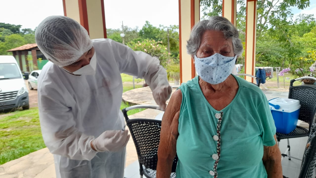 A campanha “Vacina Cuiabá – sua vida em primeiro lugar”, de imunização contra a covid-19, chegou nesta quarta-feira (17) à zona rural da Capital, com a vacinação de 28 idosos acima de 80 anos, que receberam a primeira dose da Coronavac, nas comunidades de Rio dos Peies, Barreiro Branco e Coxipó do Ouro. O trabalho é feito pelas equipes dos programas AMOR - Assistência Médica e Odontológica Rural – e Saúde da Família.
