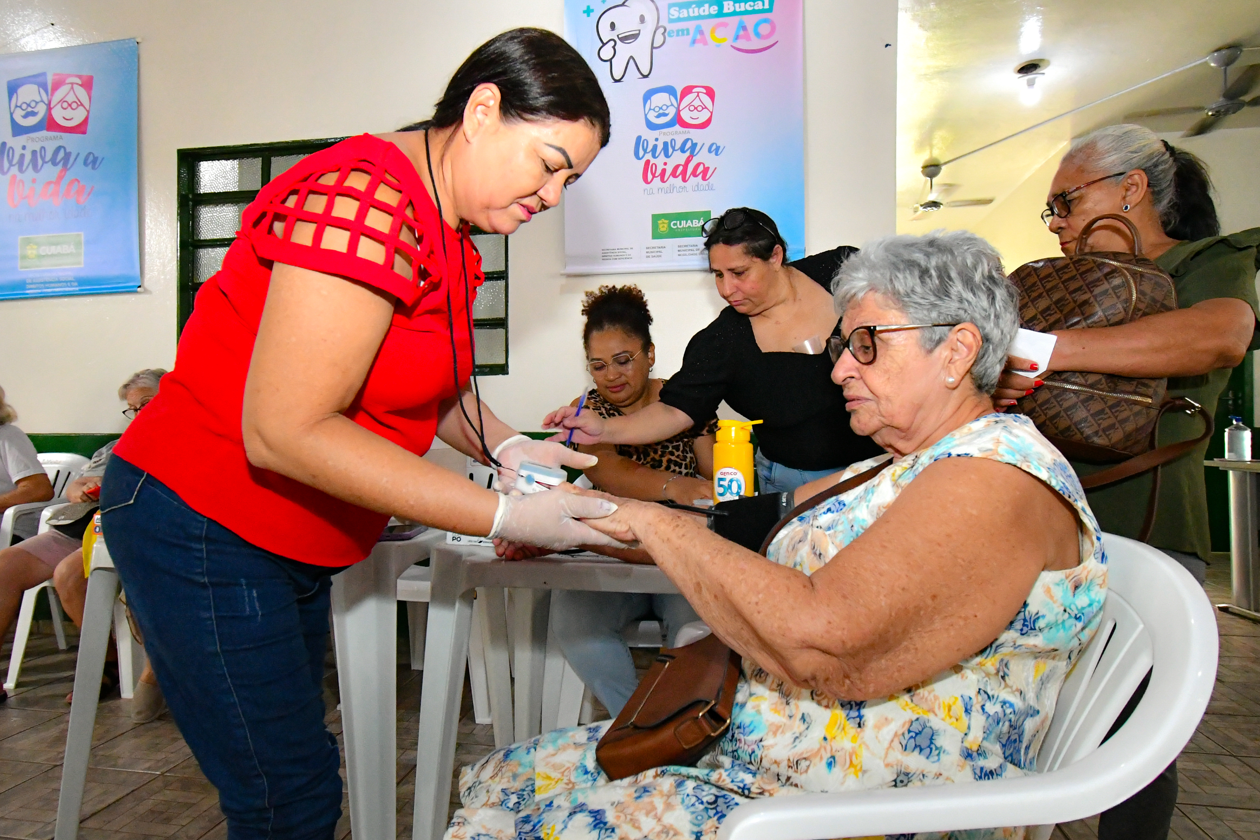 Os idosos atendidos no Centro de Convivência de Idosos (CCI) Padre Firmo foram os primeiros a participar da ação de saúde promovida nesta terça-feira (26) pela Prefeitura de Cuiabá. A iniciativa, realizada por meio das Secretarias Municipais de Assistência Social, Direitos Humanos e da Pessoa com Deficiência e Saúde, integra o programa “Viva a Vida na Melhor Idade”. Idealizado pelo prefeito Emanuel Pinheiro e pela primeira-dama Márcia Pinheiro, o programa busca aproximar serviços essenciais da população idosa, promovendo qualidade de vida e atendimento integral.