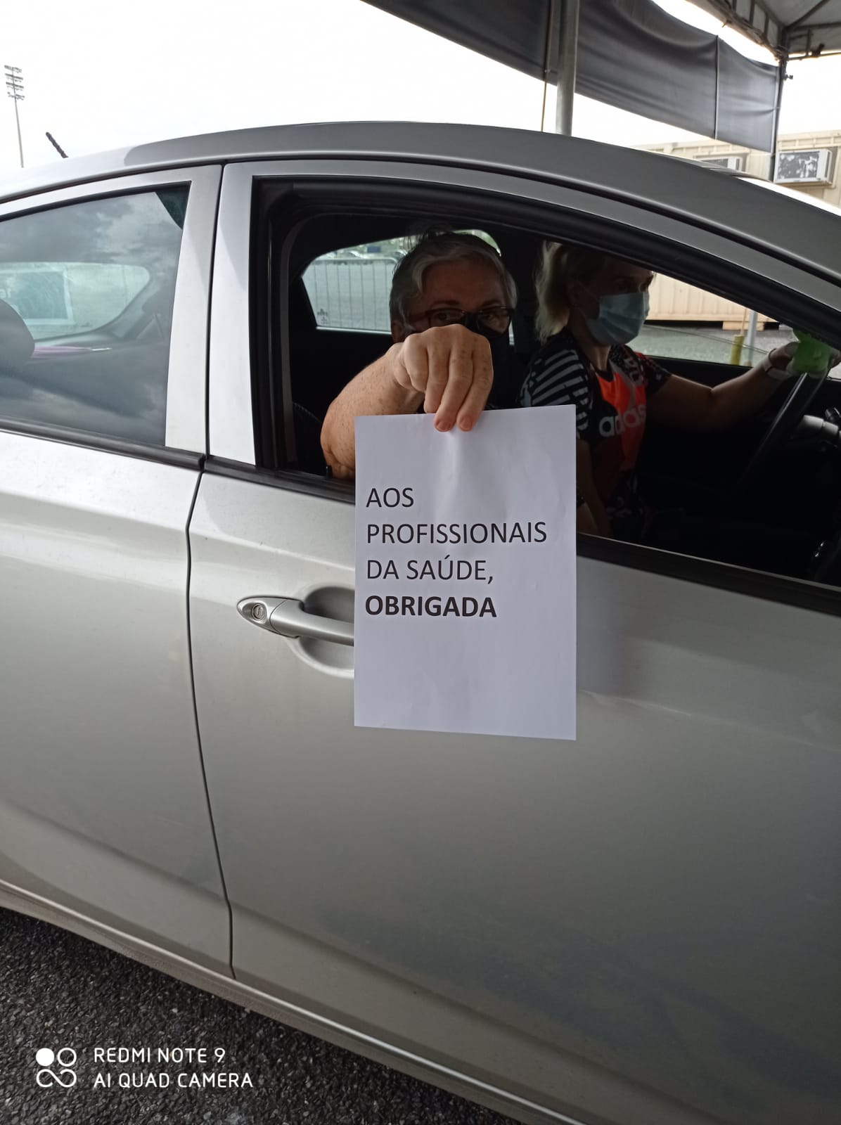 A idosa ainda explicou o porquê de ter feito questão de levar a plaquinha para o polo de vacinação. “Estava muito ansiosa para vacinar, agora estou me sentindo bem melhor, esperançosa de que algum dia a gente consiga sair desse buraco negro que nos metemos. E com esse cartaz, eu quero dizer que está todo mundo batendo muito na Saúde, no SUS [Sistema Único de Saúde] e eu acho que a gente tem que mostrar que apoiamos, porque, sem vacina, sem ciência e sem saúde pública, a gente não vai para lugar nenhum. Temos que manter todo protocolo sanitário, porque ainda podemos transmitir o vírus para outras pessoas enquanto não houver uma diminuição sensível da população, a gente tem que fazer a nossa parte”, disse.