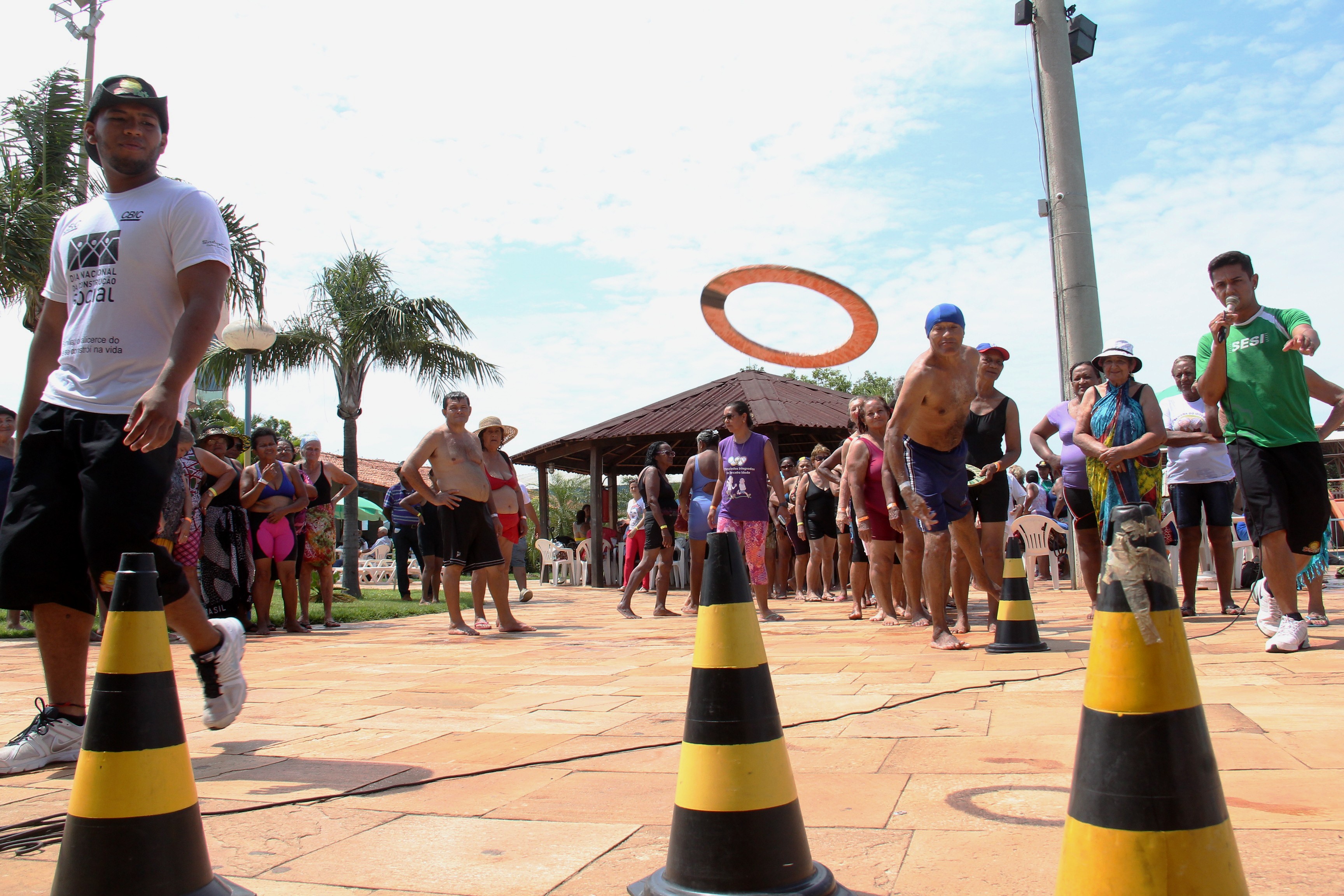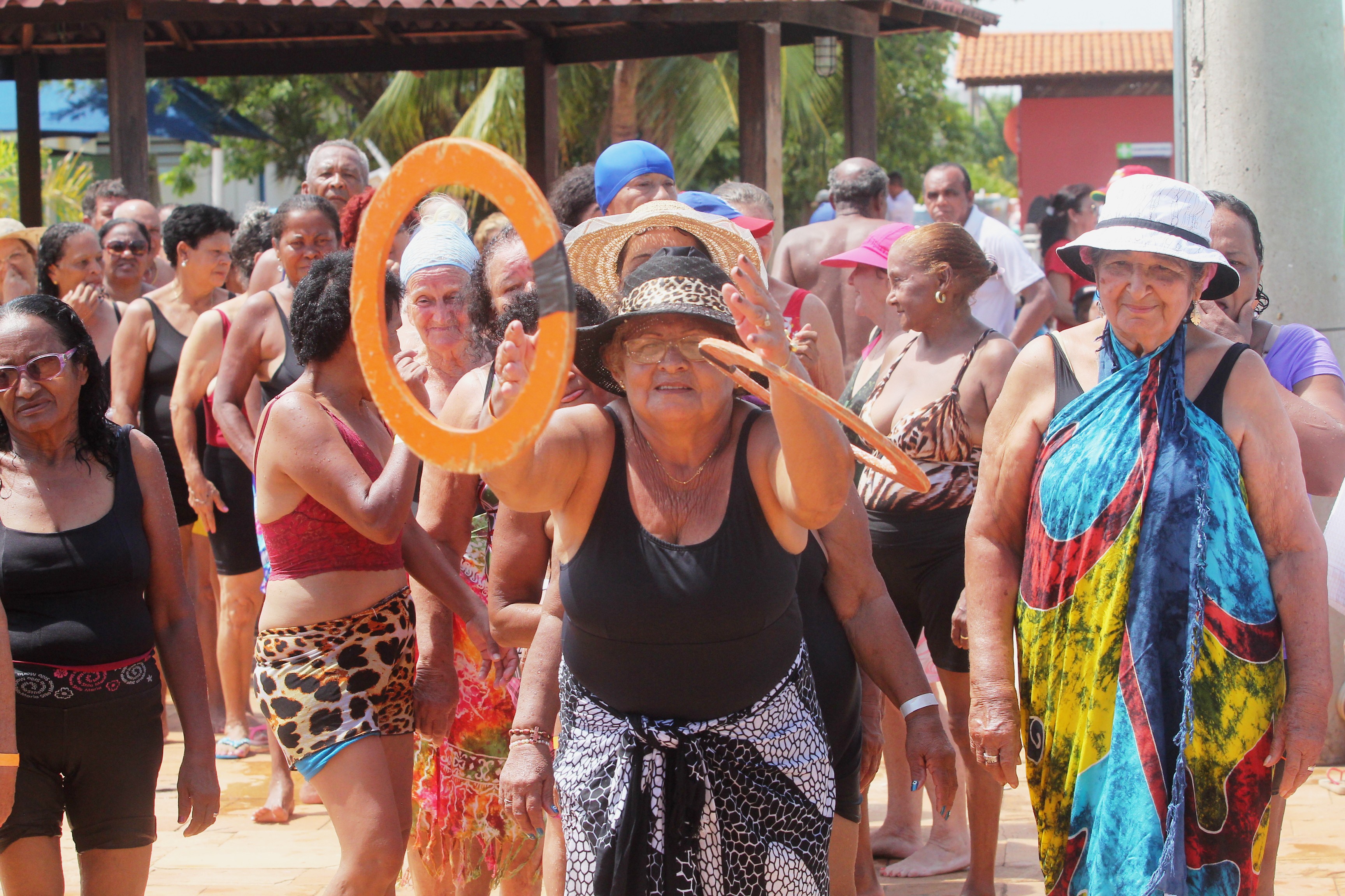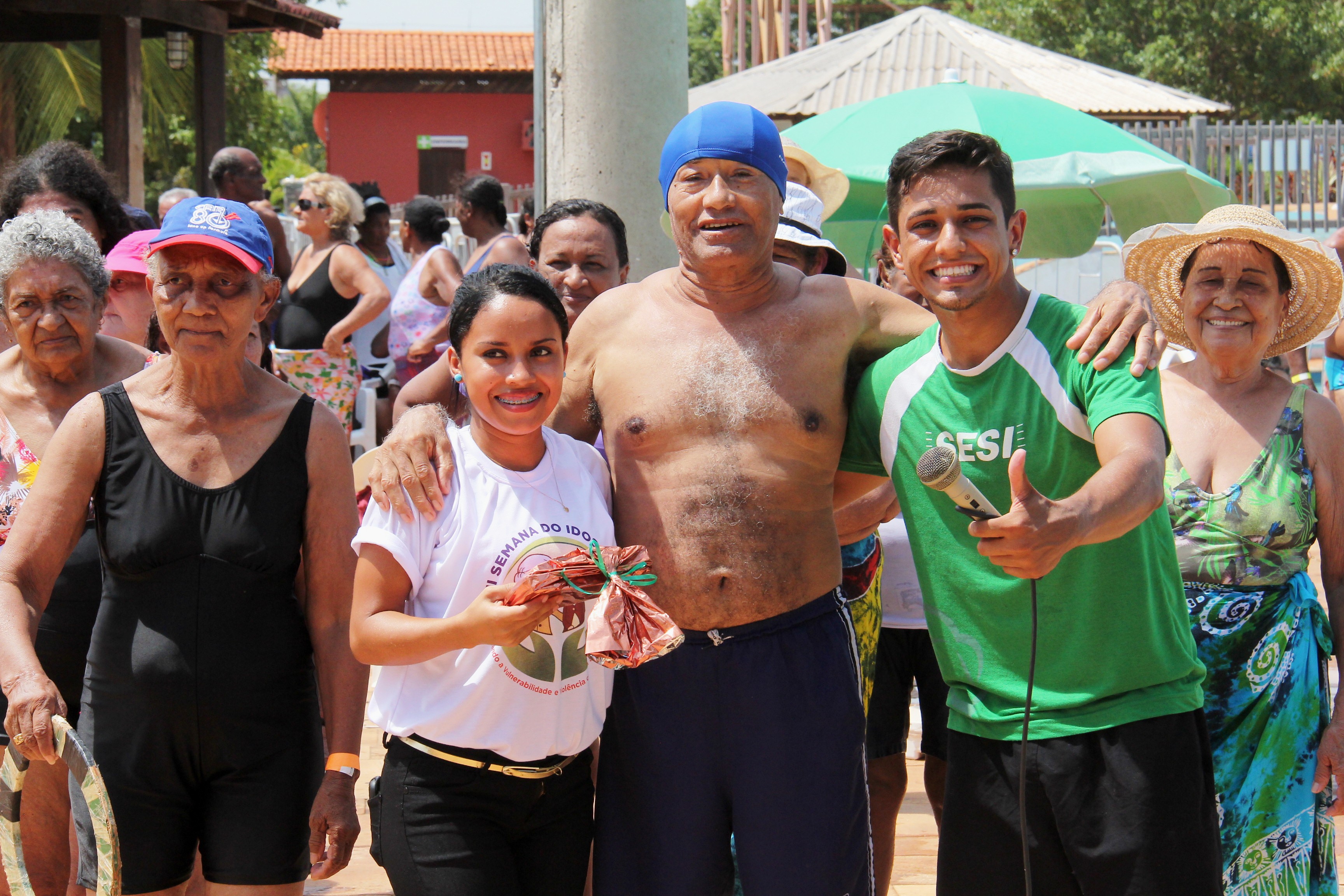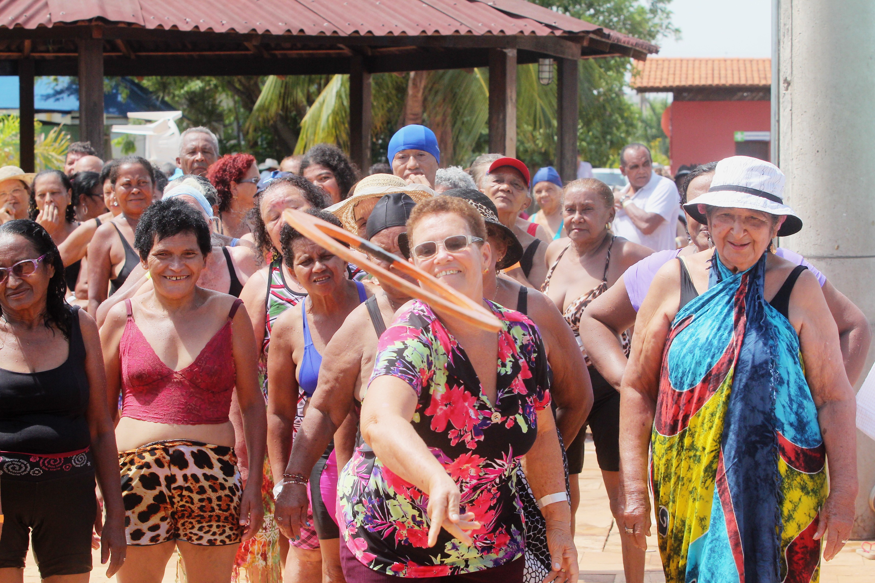 Dentre as atividades oferecidas, os idosos participaram de gincanas, sorteio de brindes, hidroginástica, além de um baile na parte da tarde.