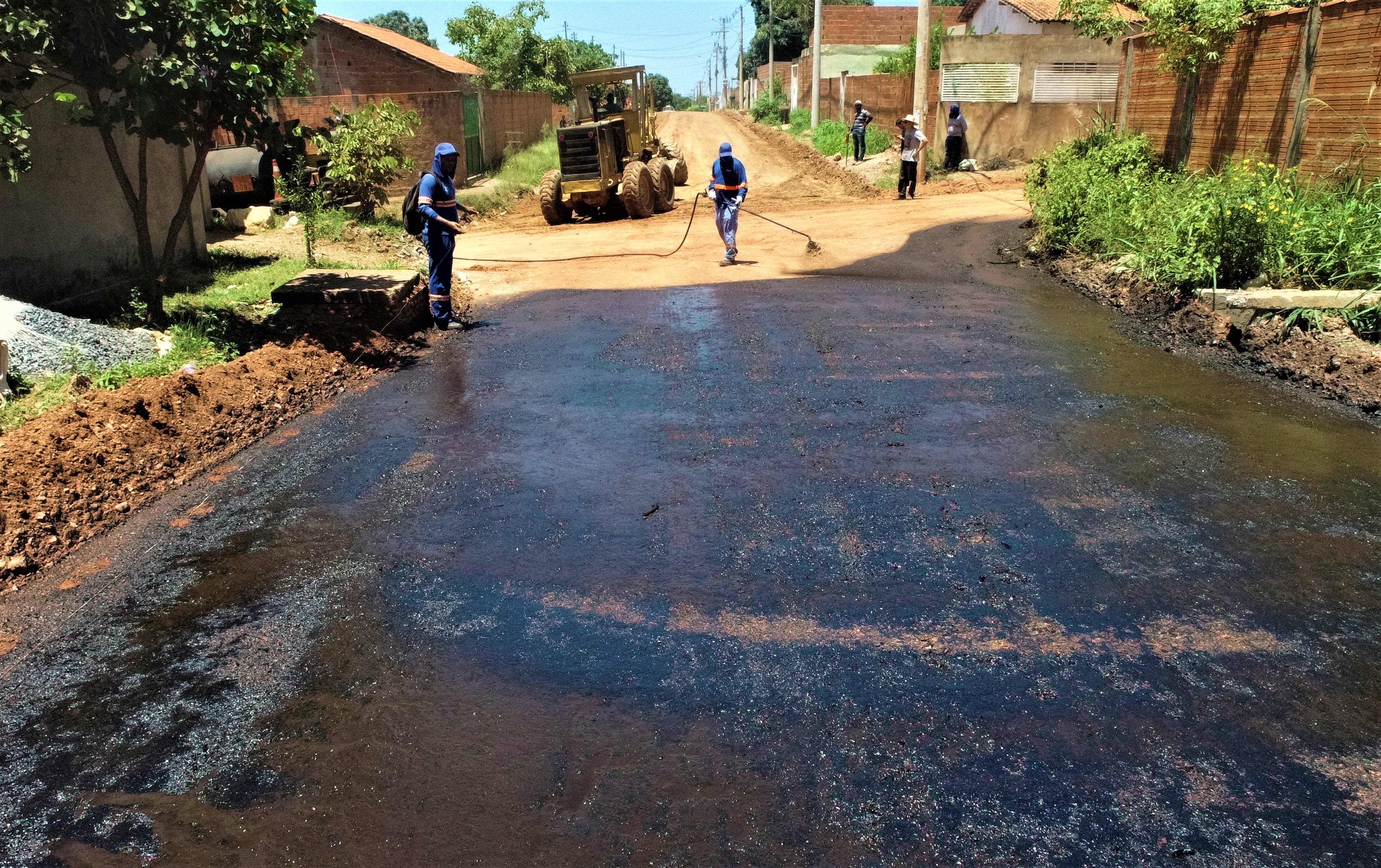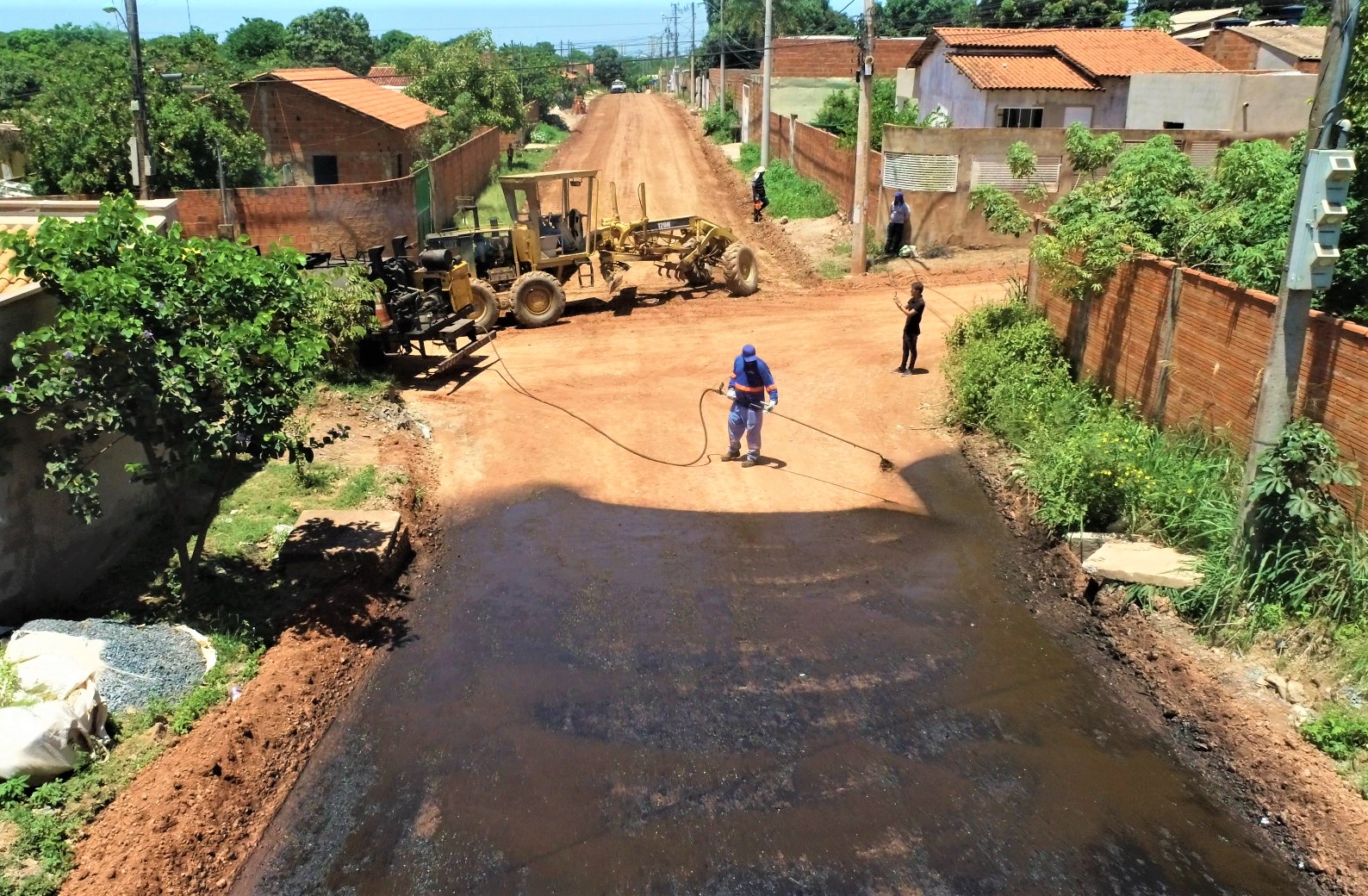 Implantação da pavimentação do bairro Altos da Serra II chega à fase de imprimação
