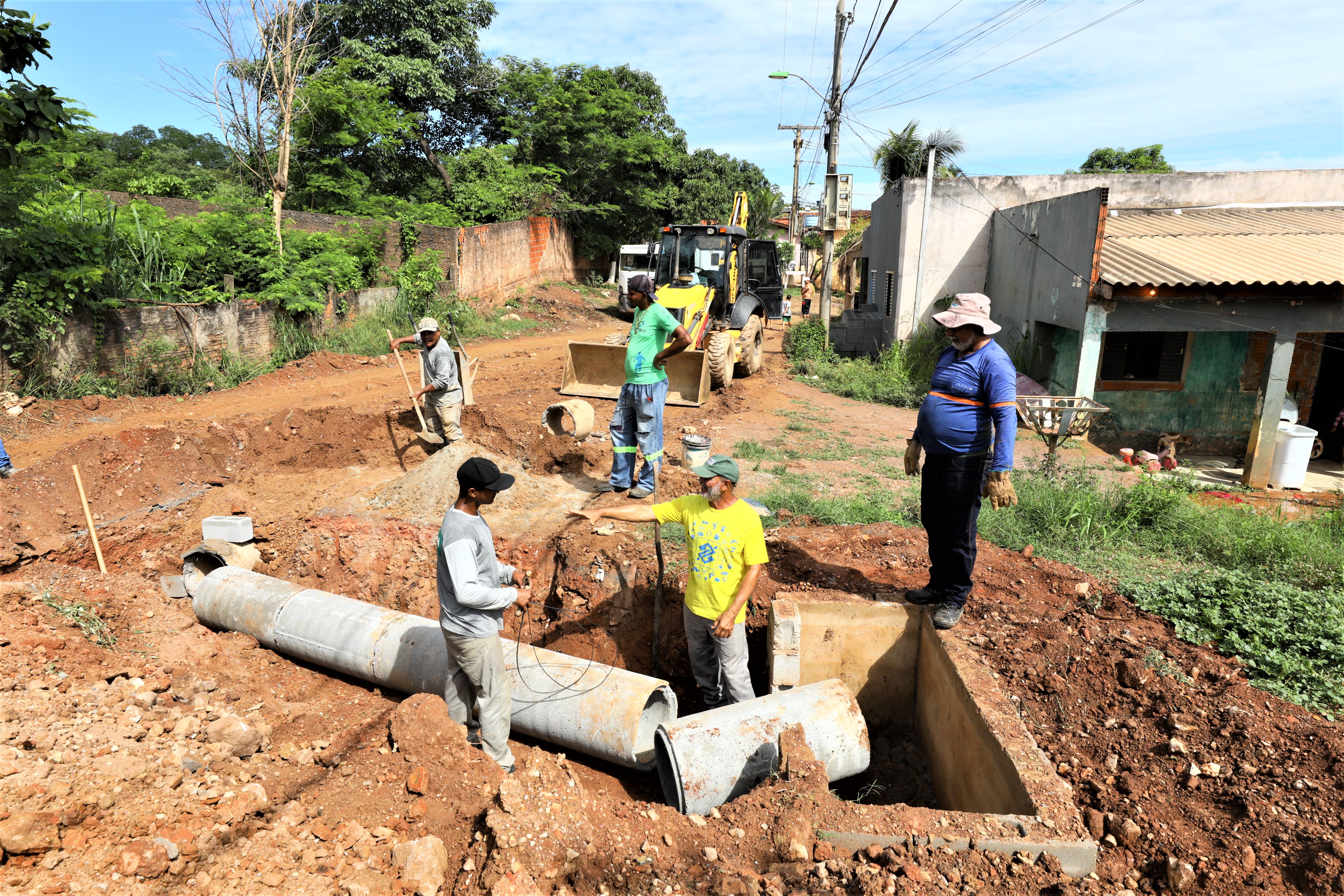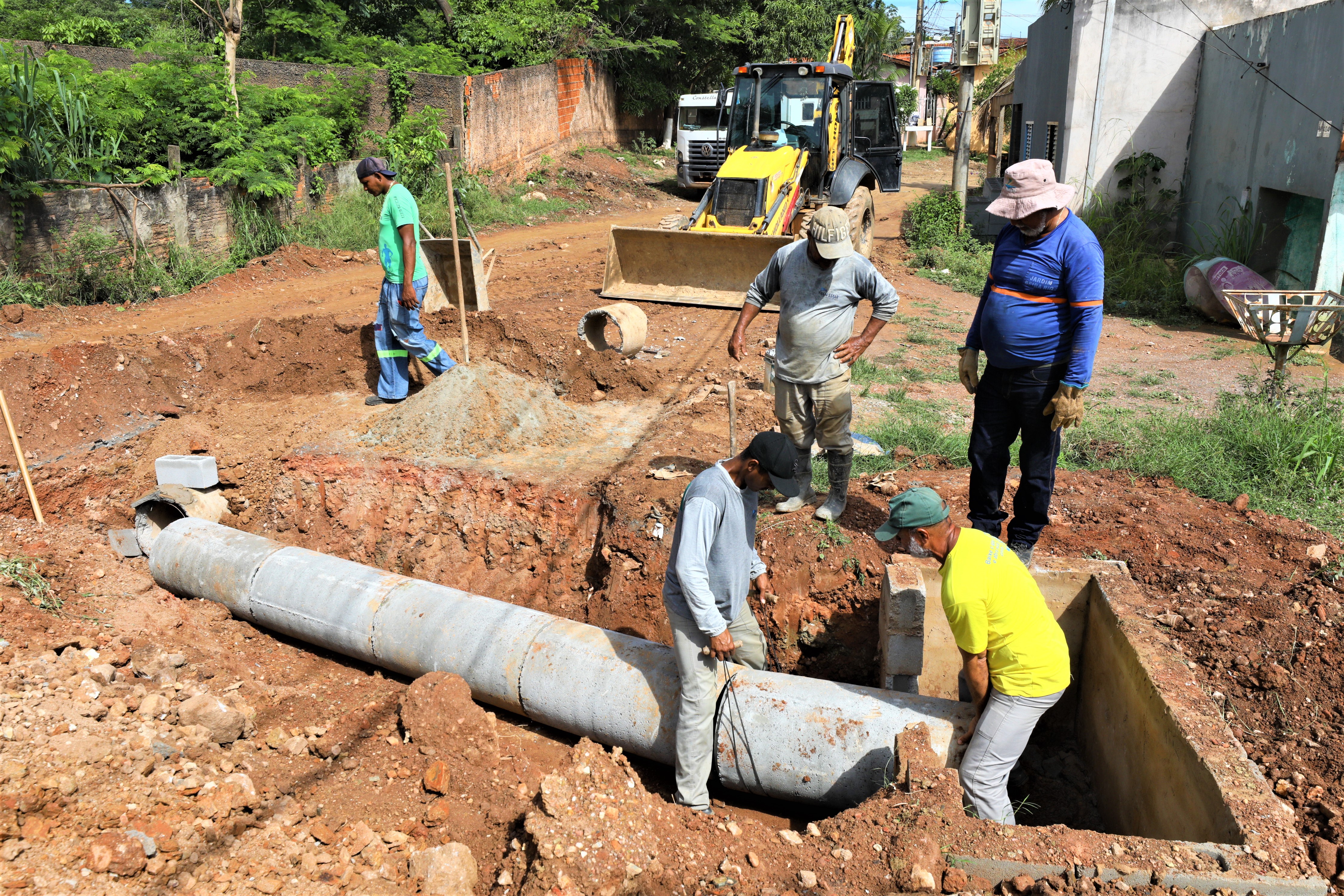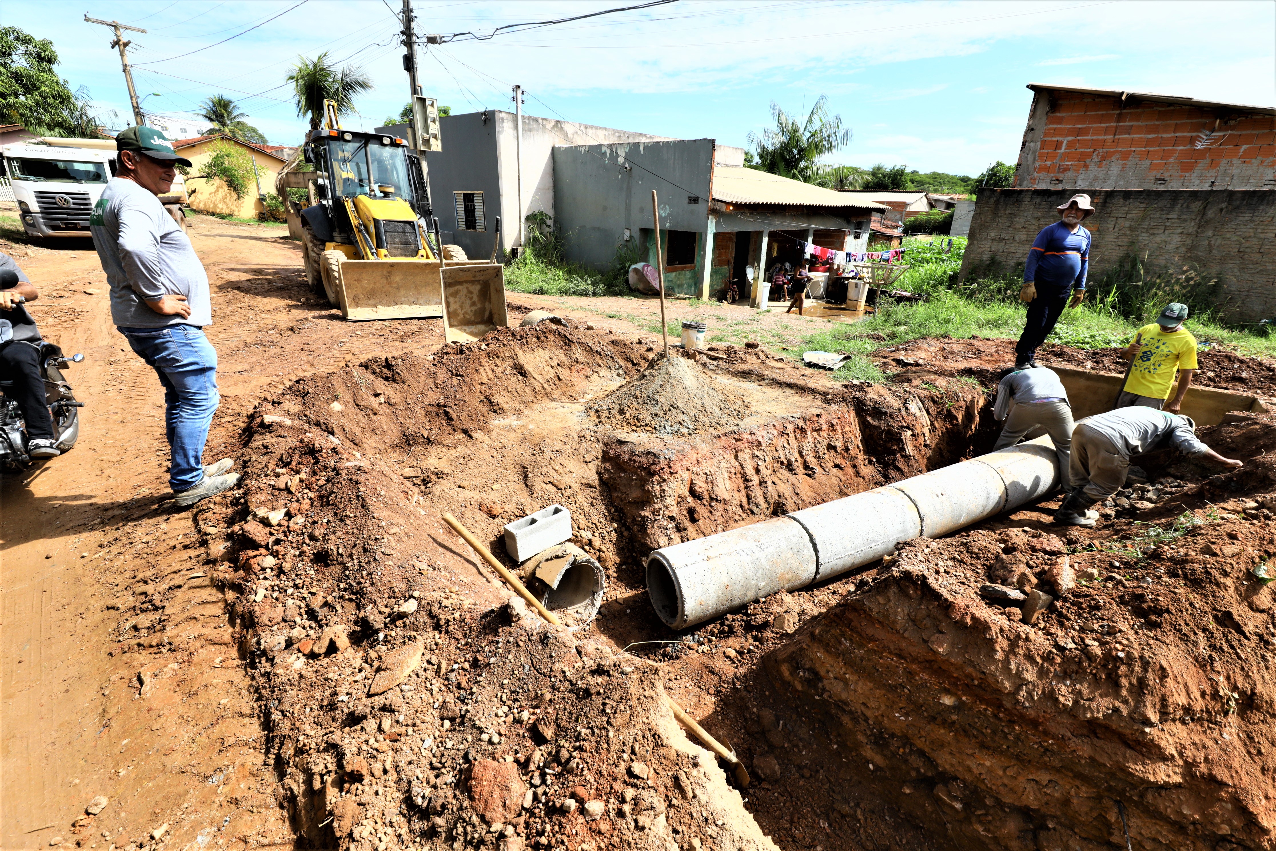 No local, as equipes desempenham as atividades de escavação do solo para instalação das tubulações. Após o término, o projeto seguirá para a promoção dos serviços de terraplanagem, preparando o solo para receber o revestimento asfáltico. Ao todo, mais de 2,5 quilômetros de vias serão contempladas, por meio de investimentos de cerca de R$ 4 milhões, originários da Fonte 100.