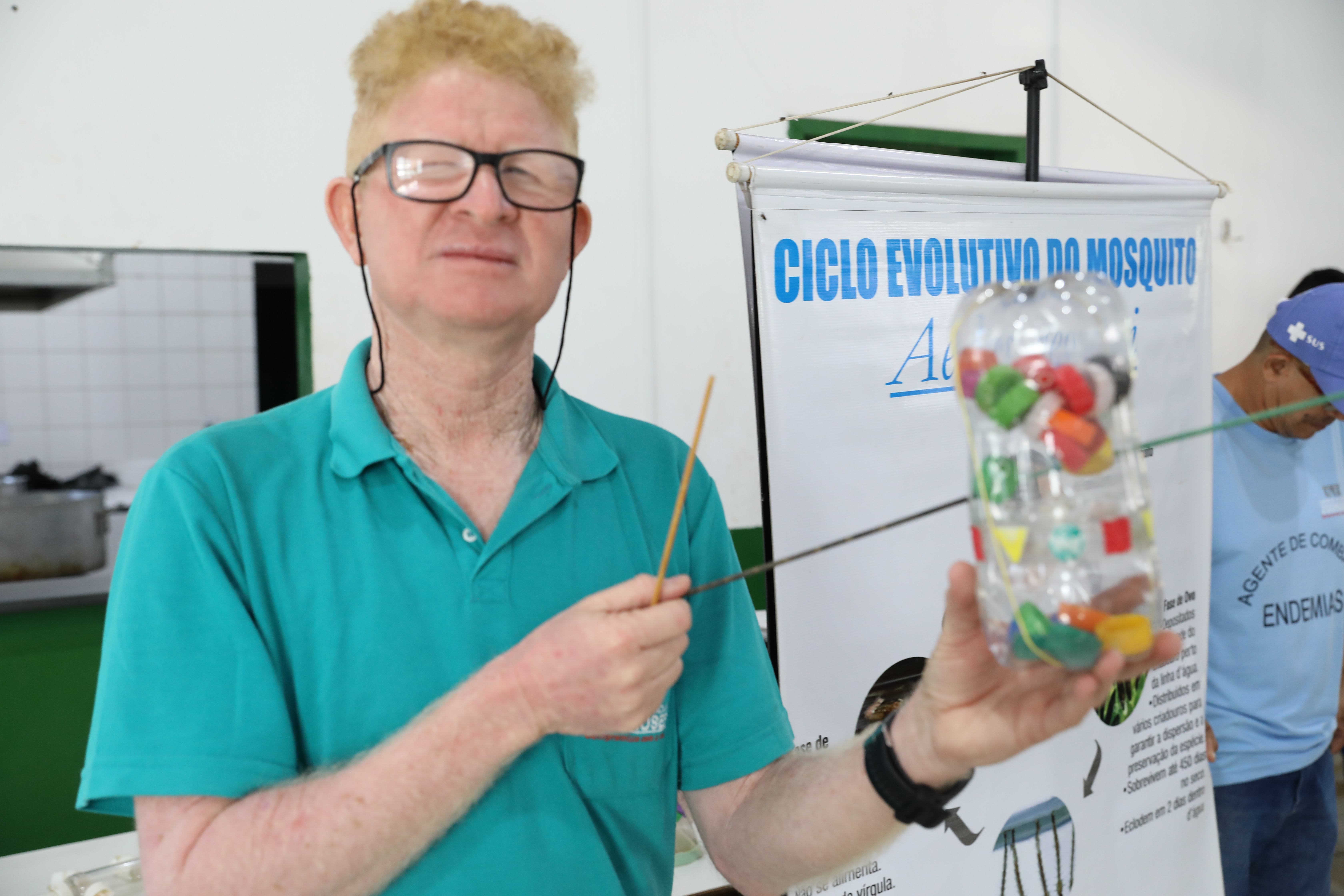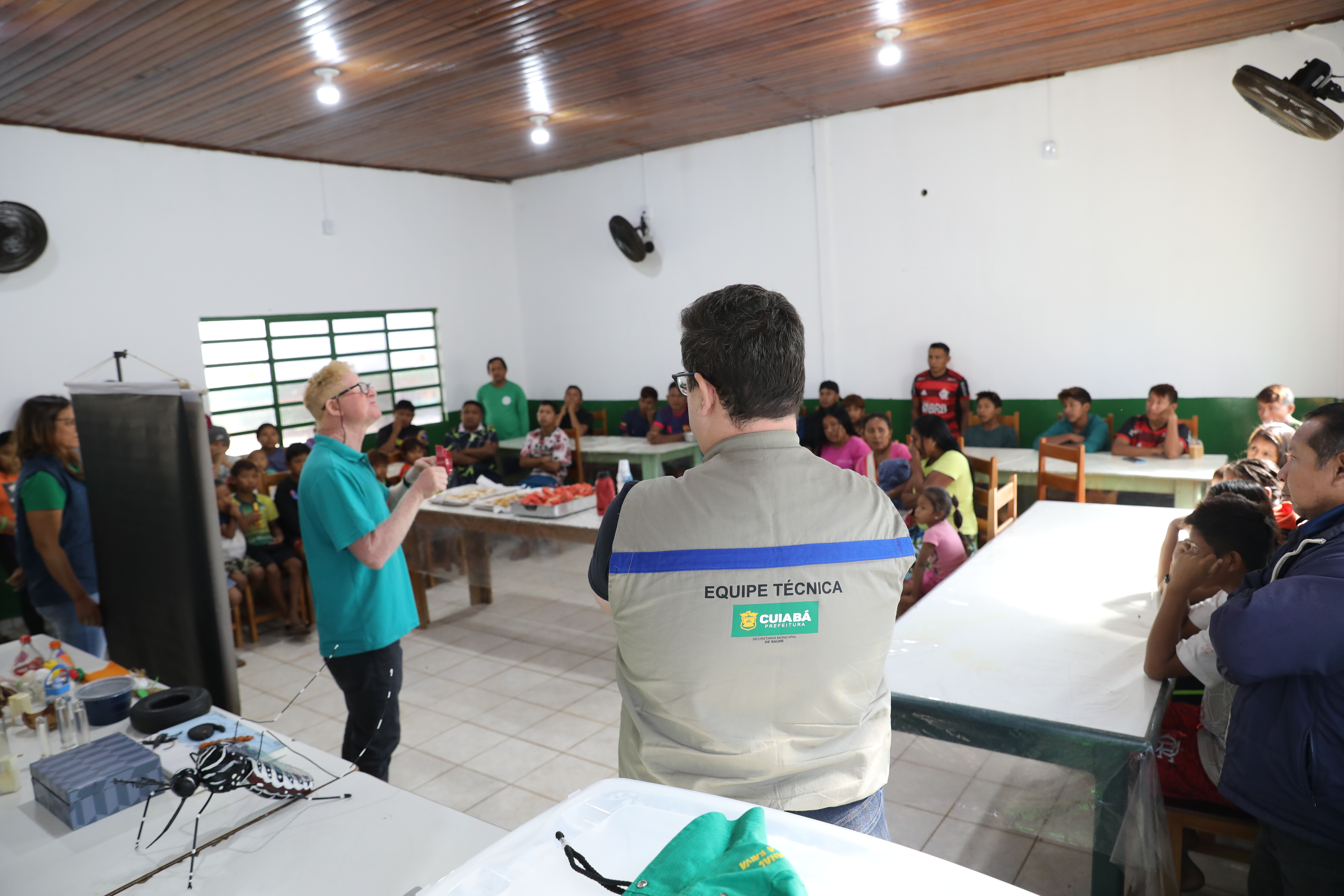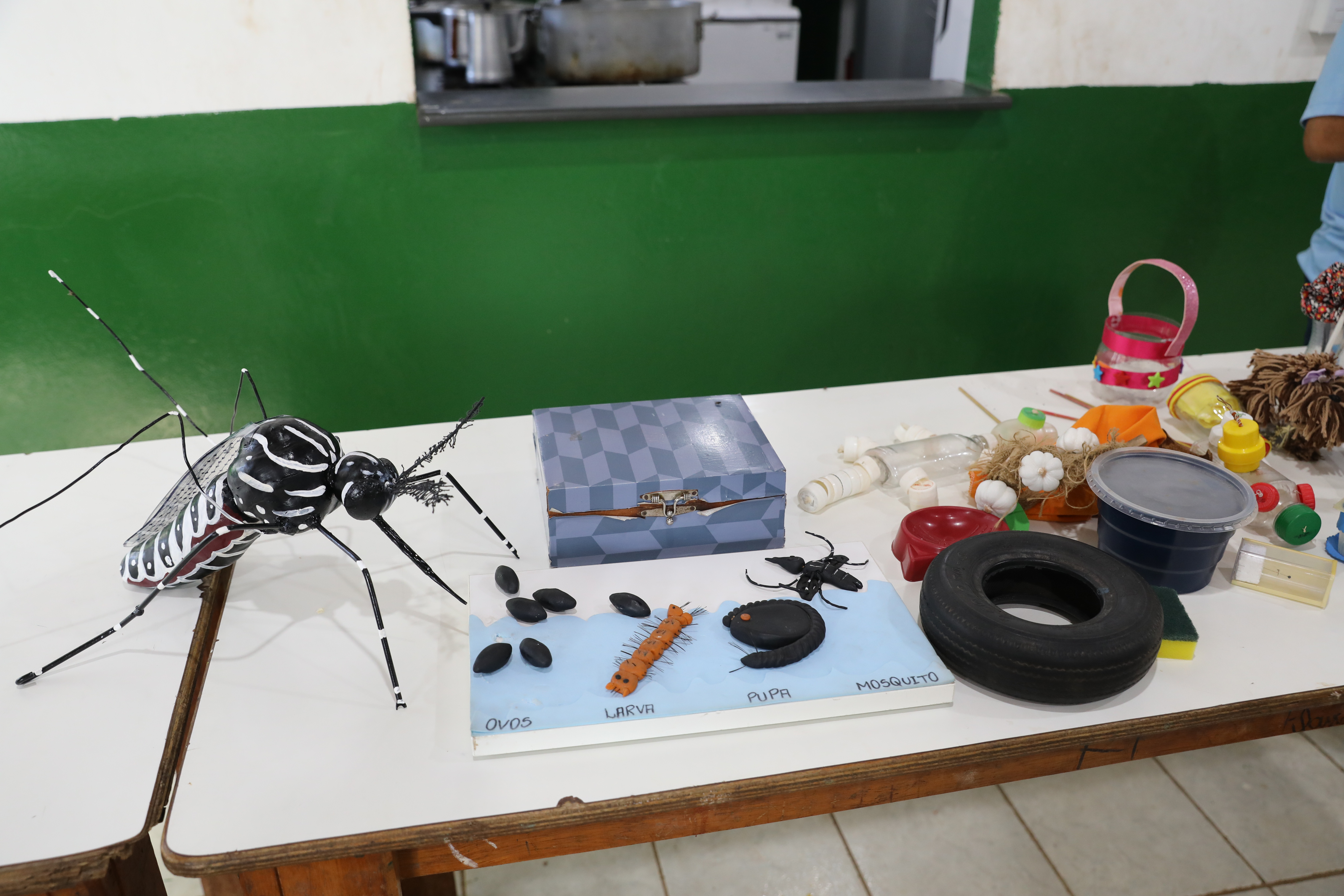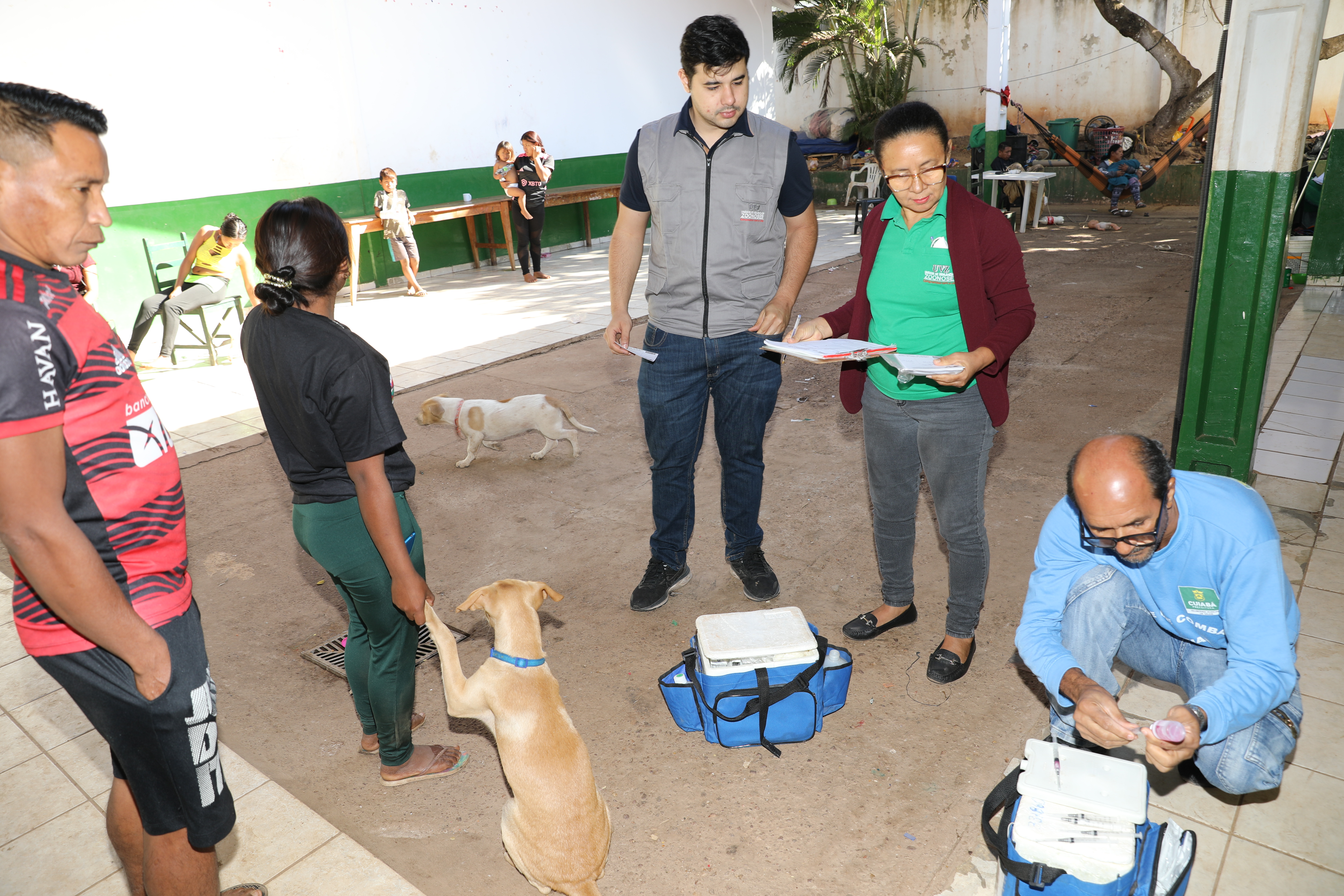 Na unidade, também havia diversos animais que foram imunizados pela vacina antirrábica, ministrada pela equipe da vigilância. Amostras de sangue desses animais também foram coletadas para exames. “Trabalhamos com as famílias a prevenção ao mosquito Aedes aegypti, falando sobre a doença desde o ciclo de vida do mosquito. Para a ilustração da palestra, usamos materiais recicláveis e ainda fizemos a coleta dos possíveis criadouros dentro da unidade, com a participação dos indígenas abrigados no local”, explica o agente de endemias, Hélio Simião de Almeida.