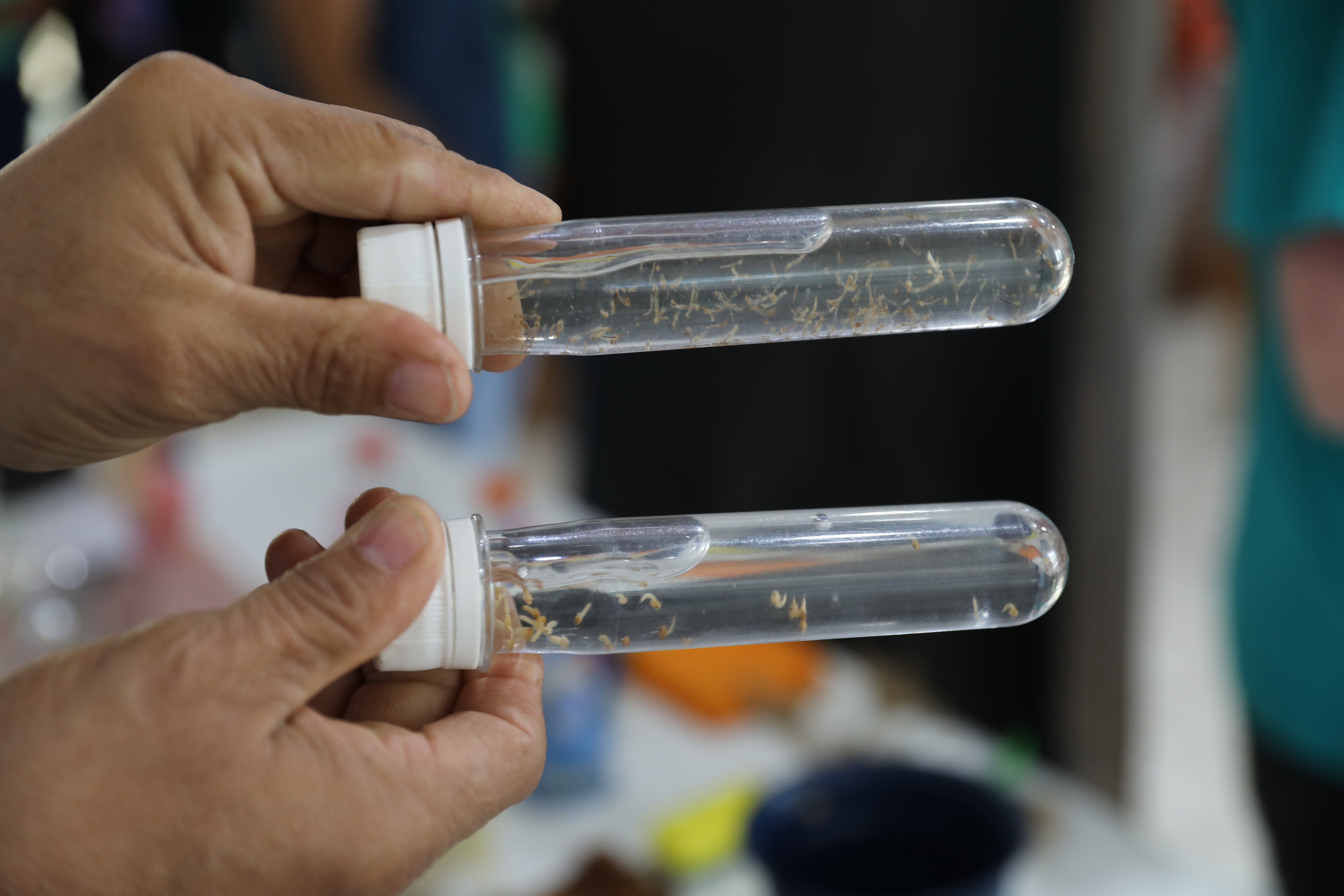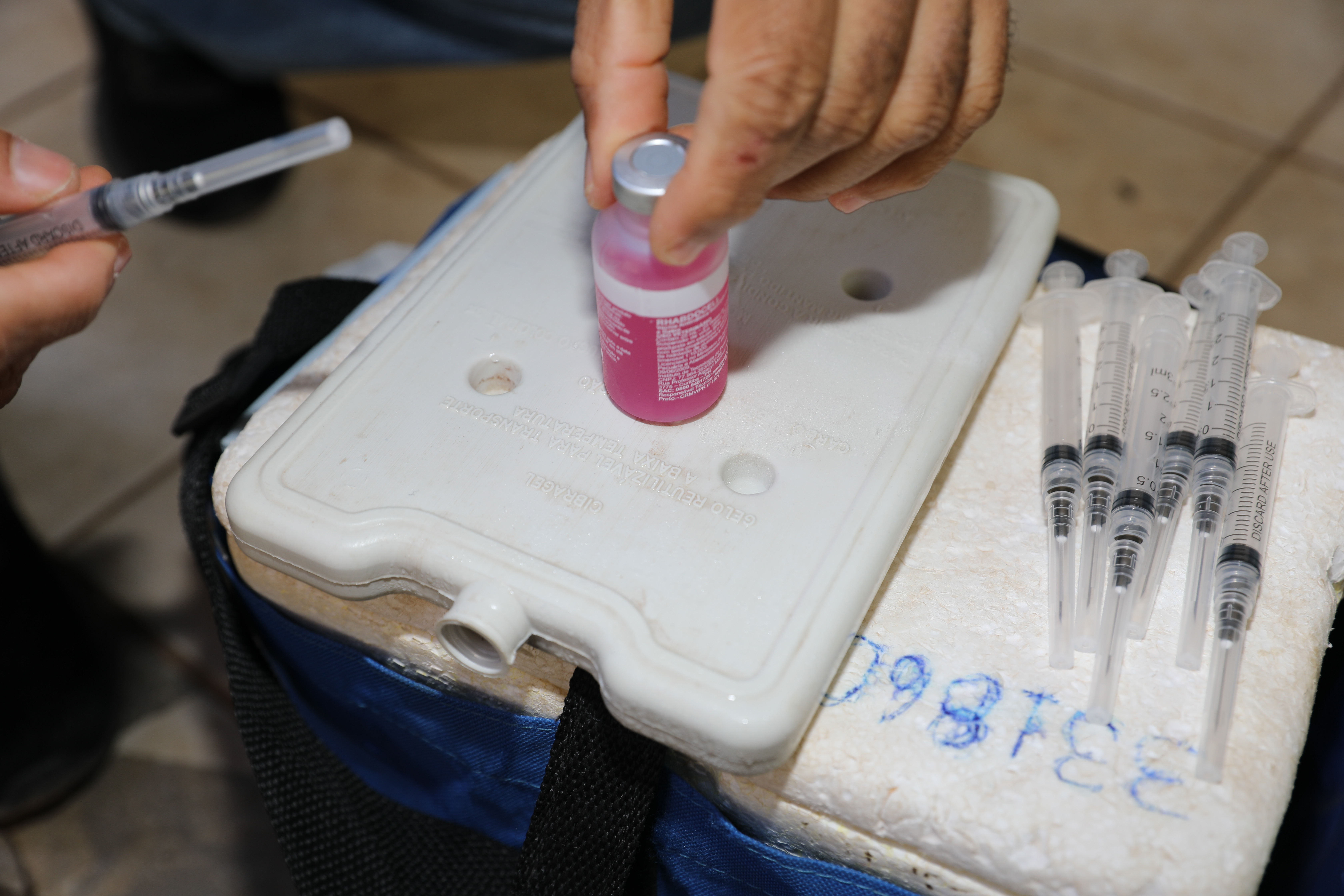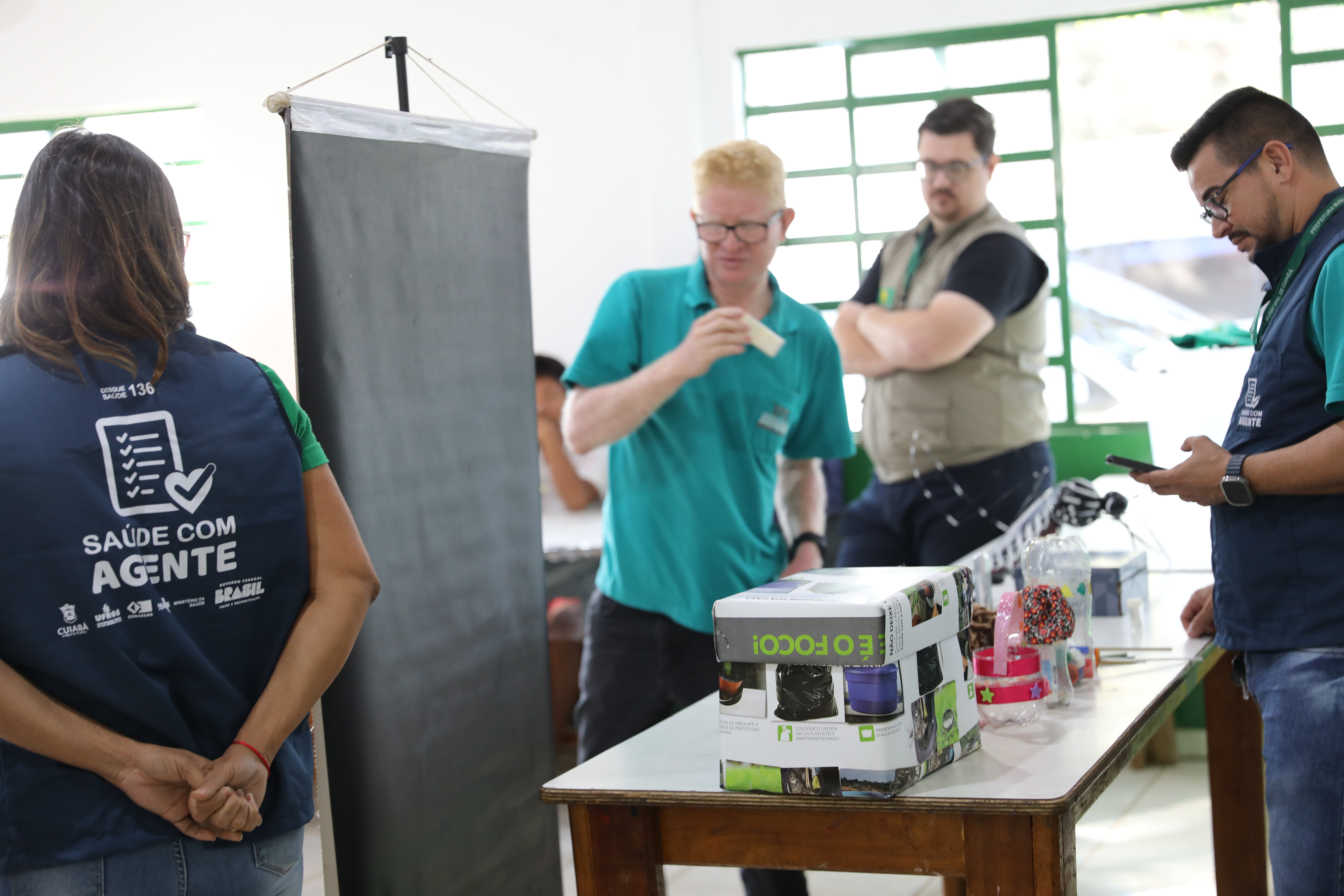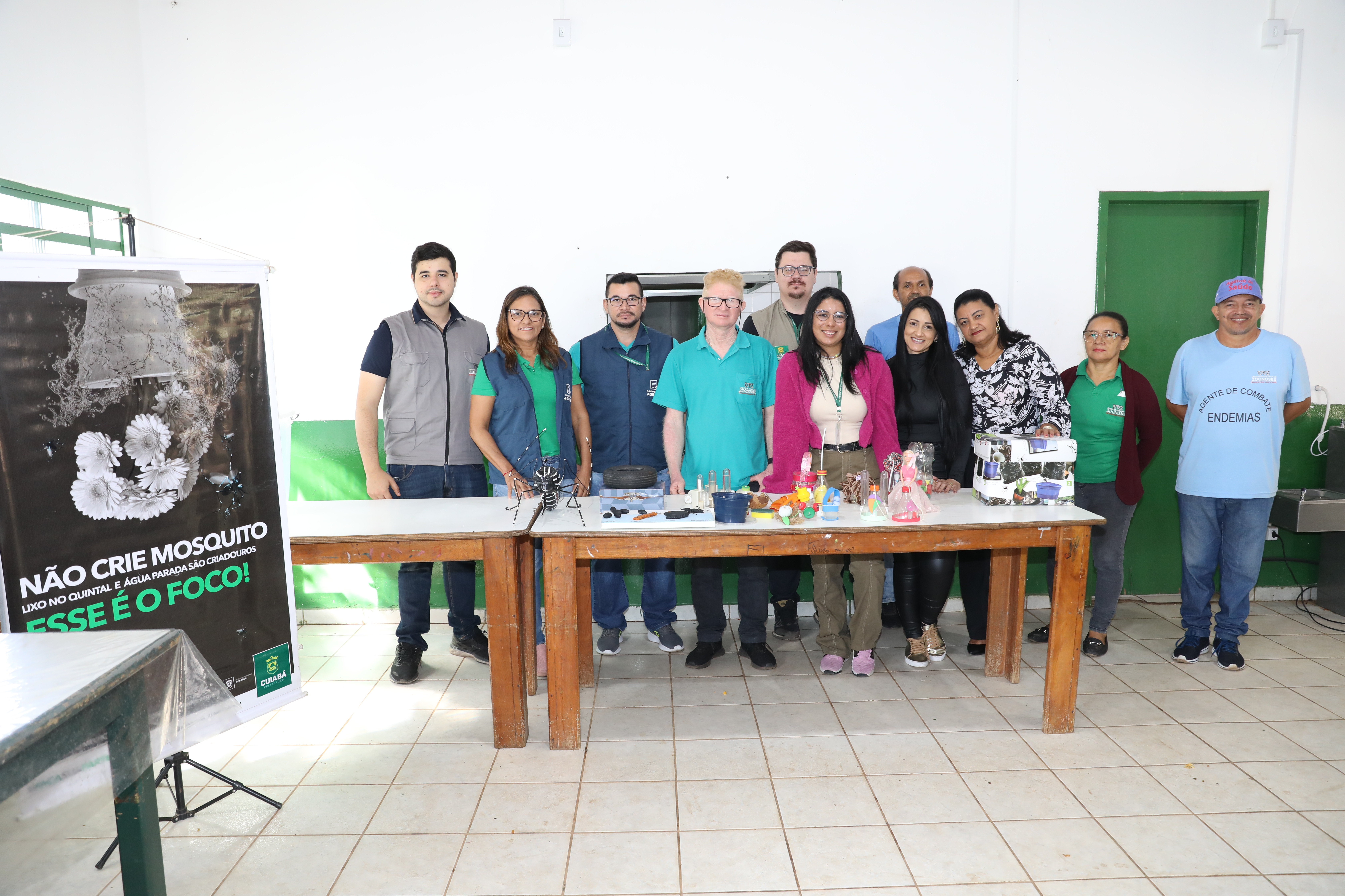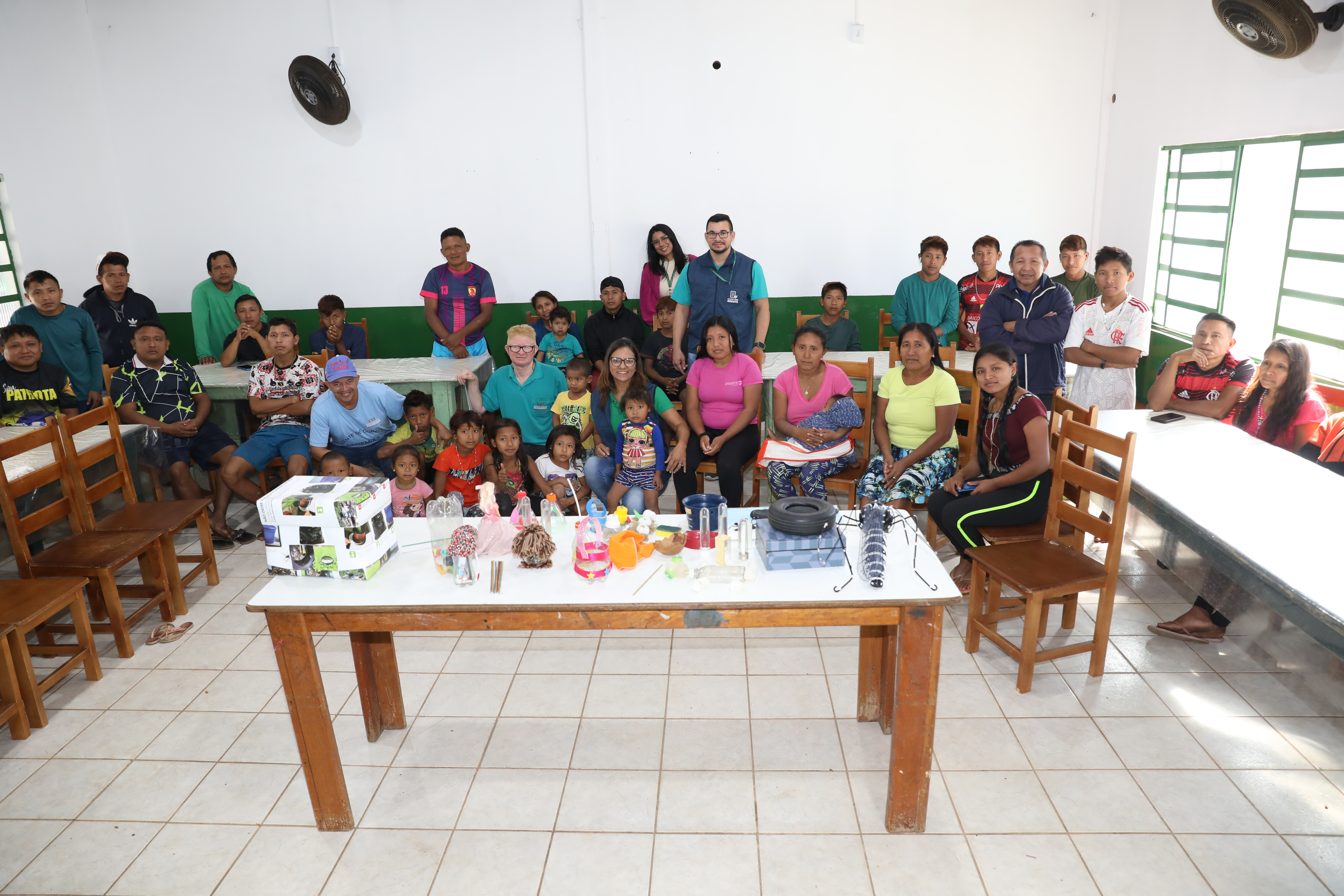 Na unidade, também havia diversos animais que foram imunizados pela vacina antirrábica, ministrada pela equipe da vigilância. Amostras de sangue desses animais também foram coletadas para exames. “Trabalhamos com as famílias a prevenção ao mosquito Aedes aegypti, falando sobre a doença desde o ciclo de vida do mosquito. Para a ilustração da palestra, usamos materiais recicláveis e ainda fizemos a coleta dos possíveis criadouros dentro da unidade, com a participação dos indígenas abrigados no local”, explica o agente de endemias, Hélio Simião de Almeida.