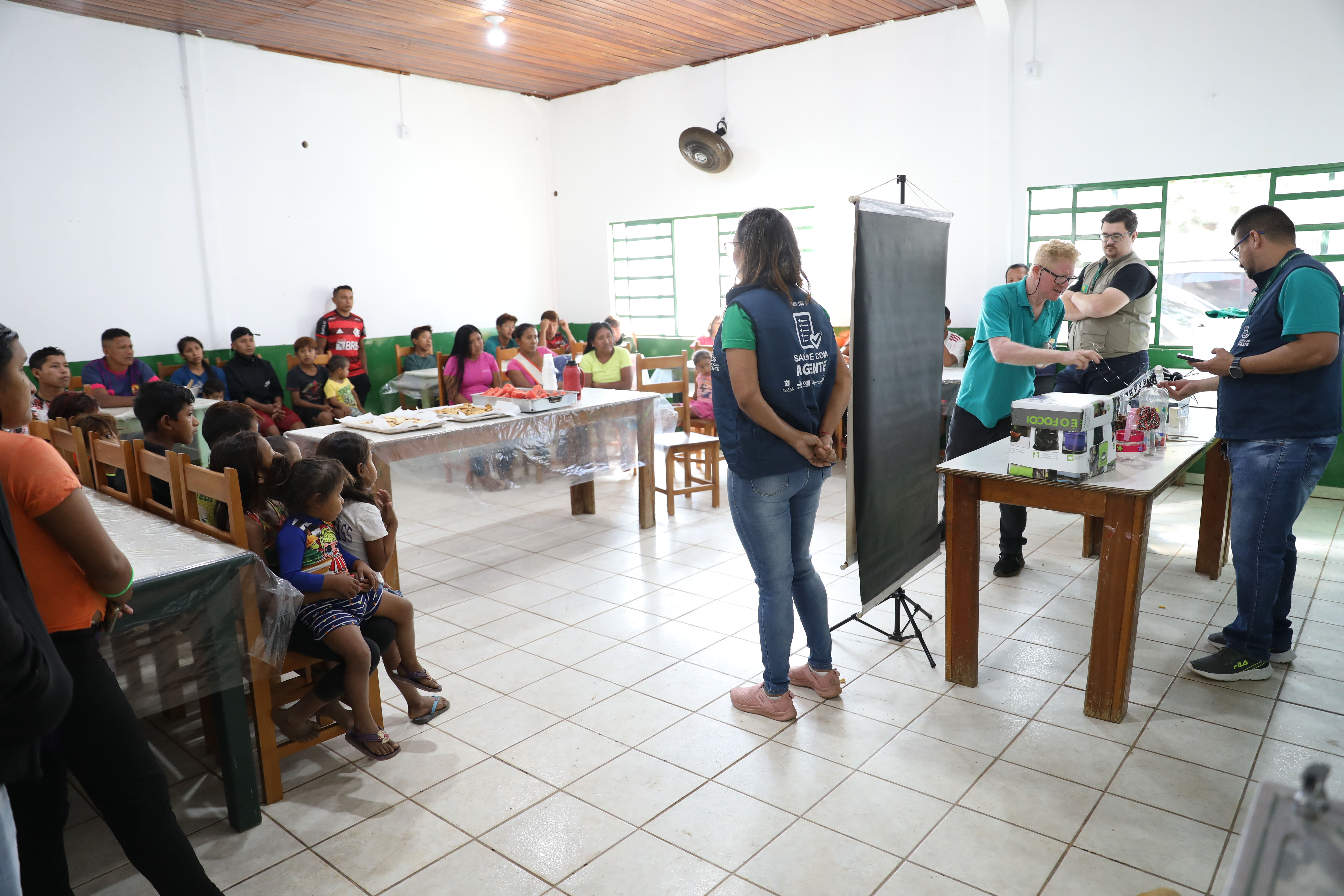 Indígenas venezuelanos que residem em abrigo recebem palestra e oficina sobre orientação e prevenção ao mosquito Aedes aegypti