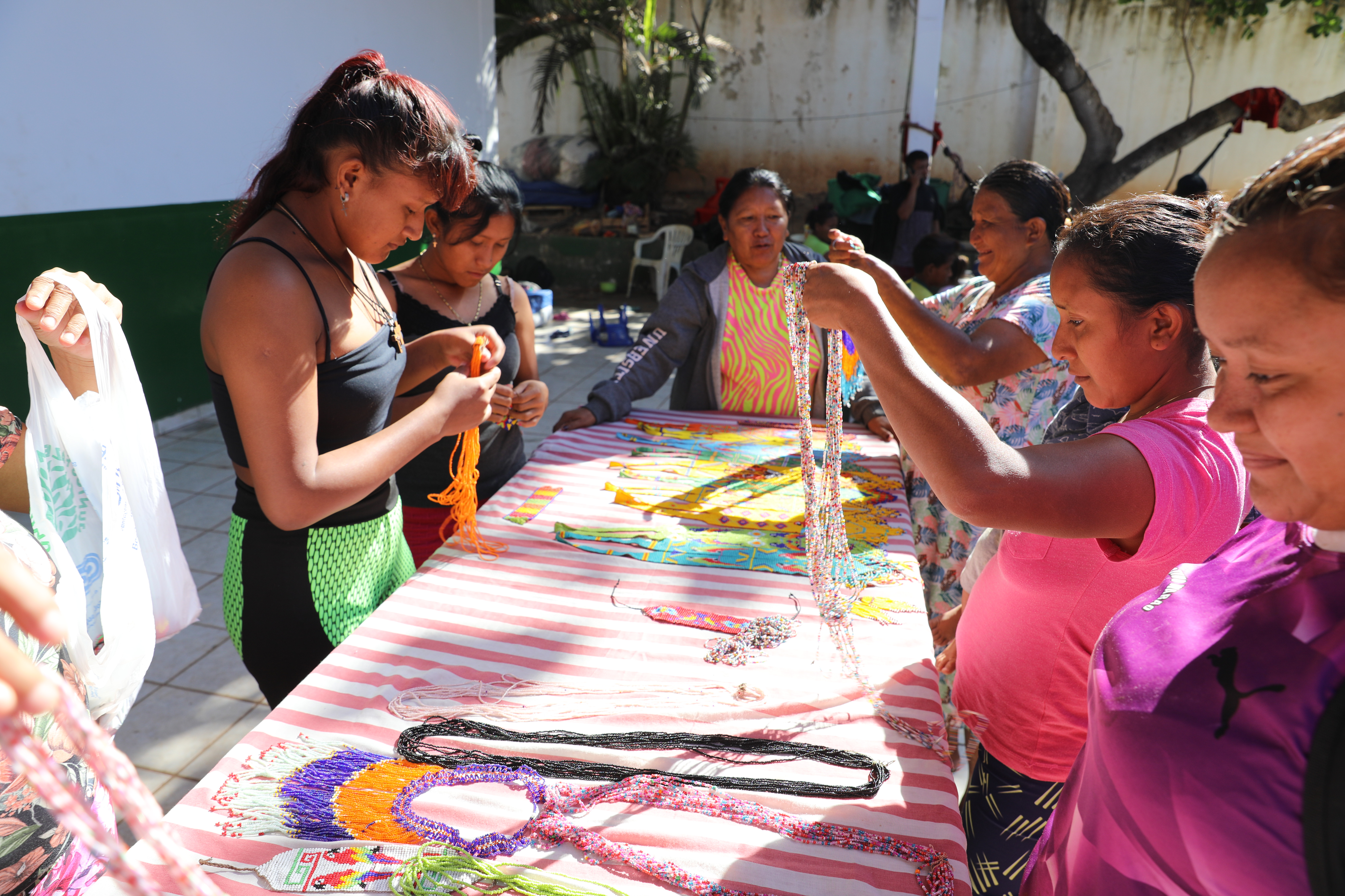 Na unidade, os indígenas fabricam joias em artesanato, um trabalho minucioso que leva tempo e investimento. Atualmente, são 106 indígenas abrigados na unidade de acolhimento Albergue Municipal Manoel Miraglia.