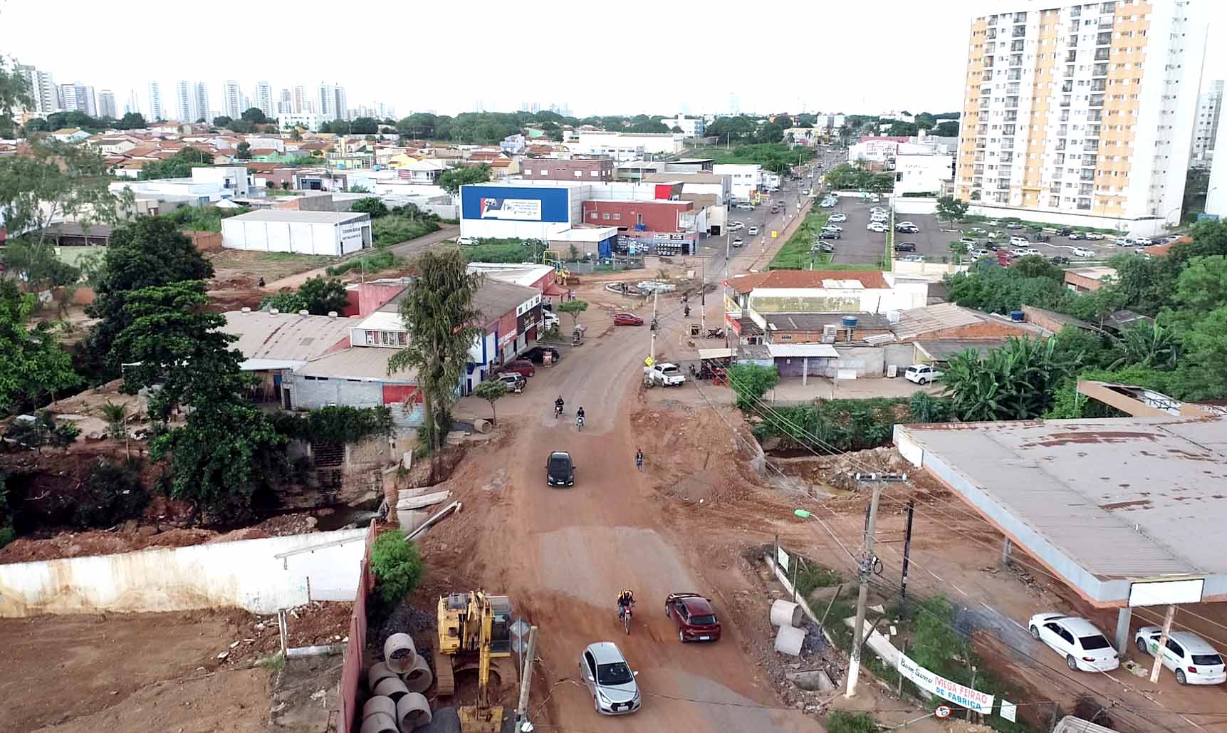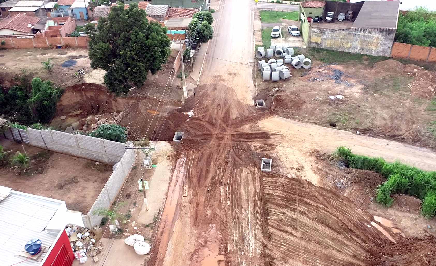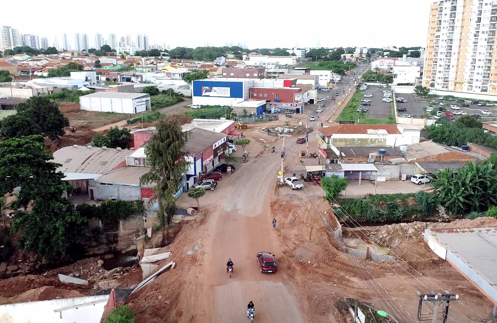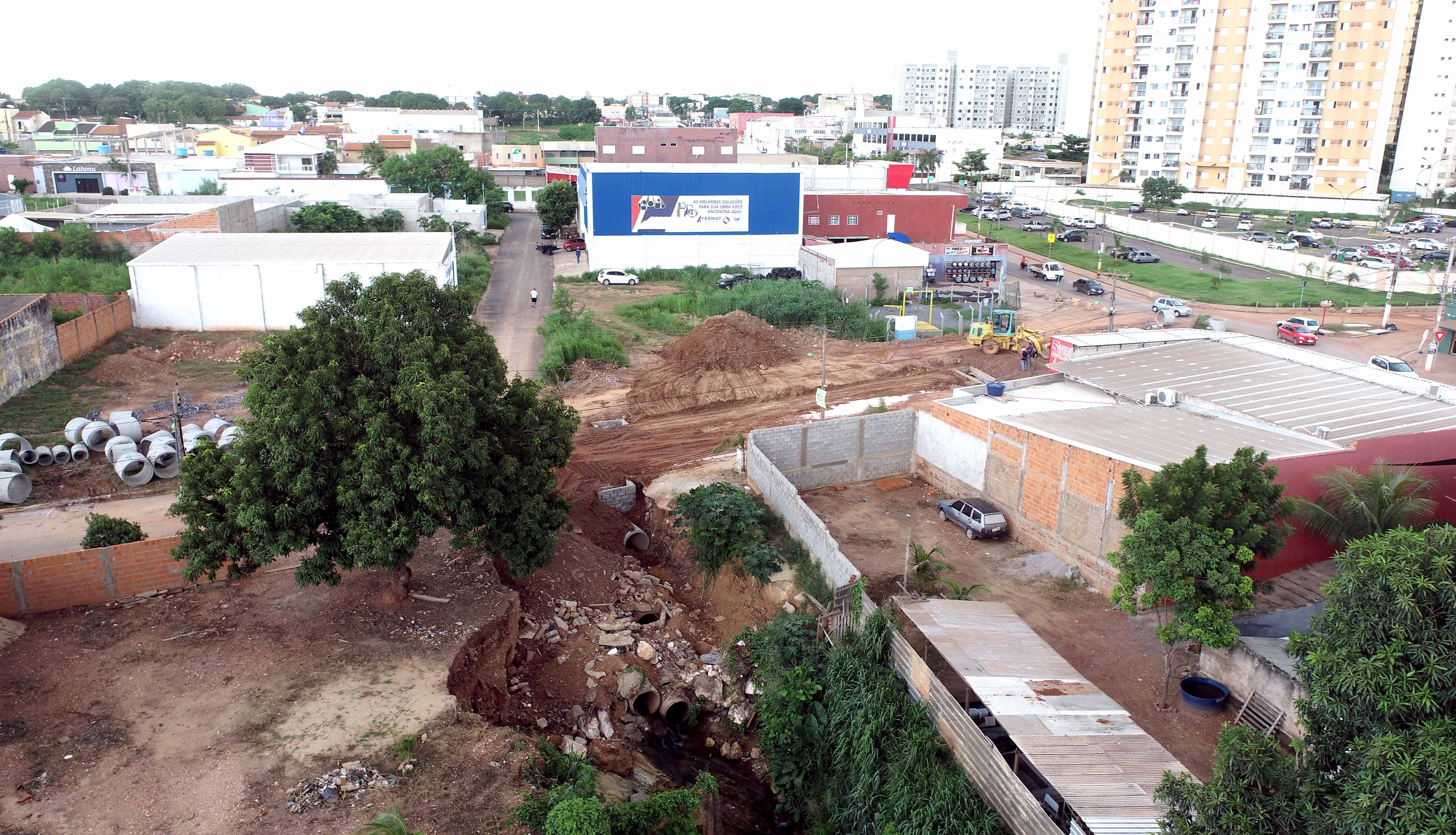 A Secretaria Municipal de Obras Públicas finalizou a instalação das aduelas de concreto no trecho do Córrego Gumitá, que passa pela Avenida Brasil, no bairro Morada do Ouro. Com a conclusão desta etapa, o percurso que estava bloqueado, situado entre as avenidas Tancredo Neves e Acácia Cuiabana, foi liberado para o trânsito, mas ainda passará pelo processo de reconstrução da pavimentação.
