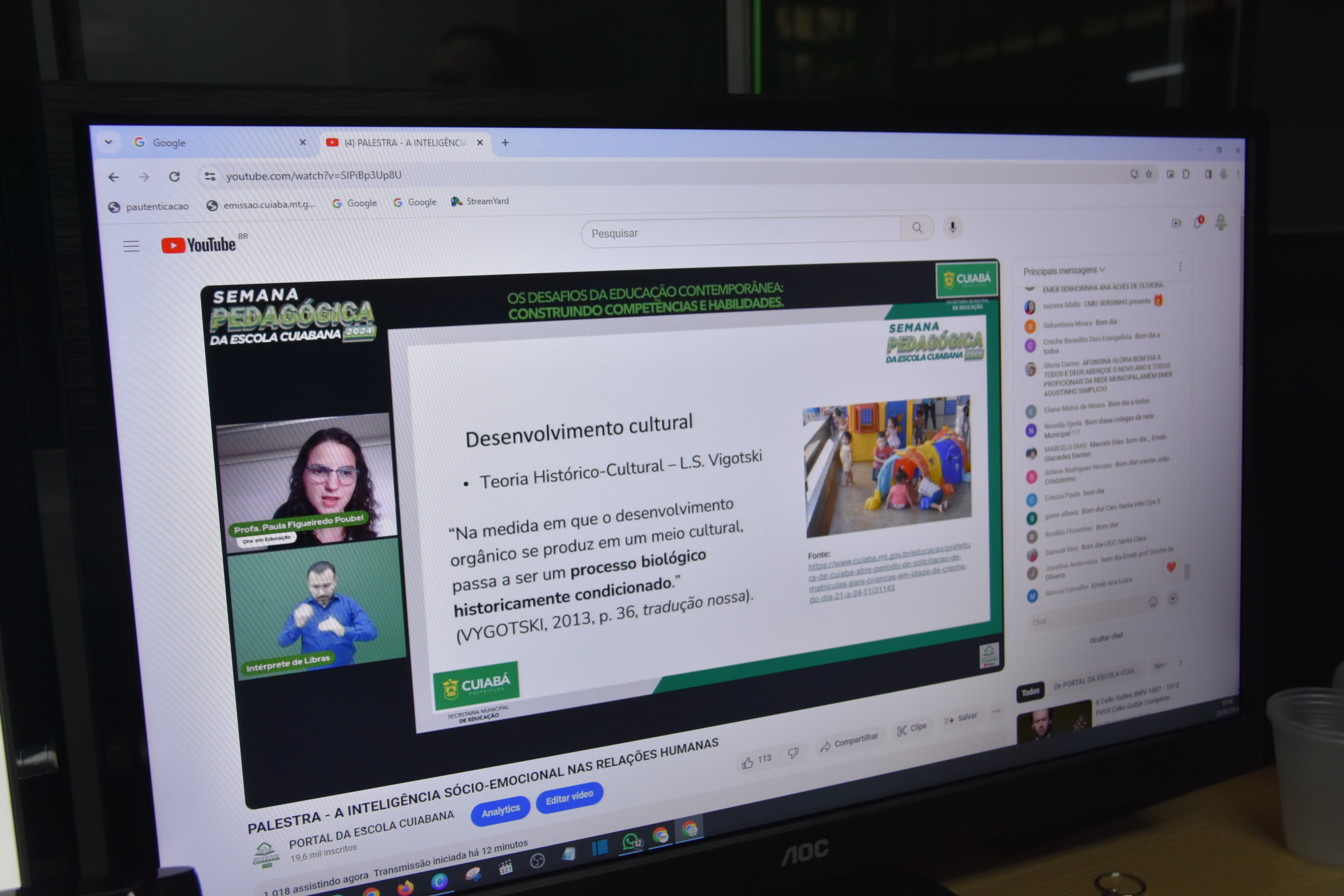 Local: Canal 1 da Escola Cuiabana, no YouTube (on-line)