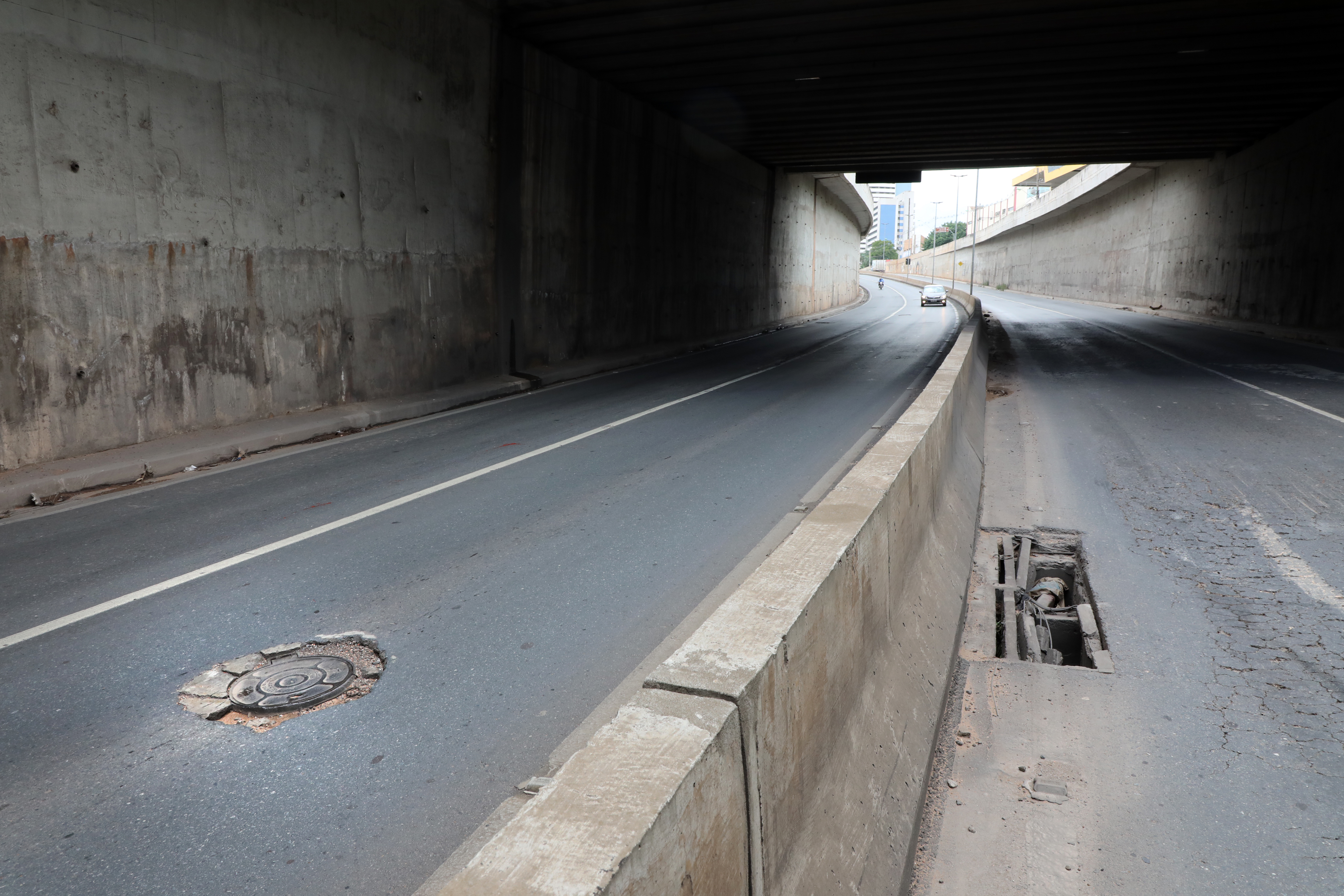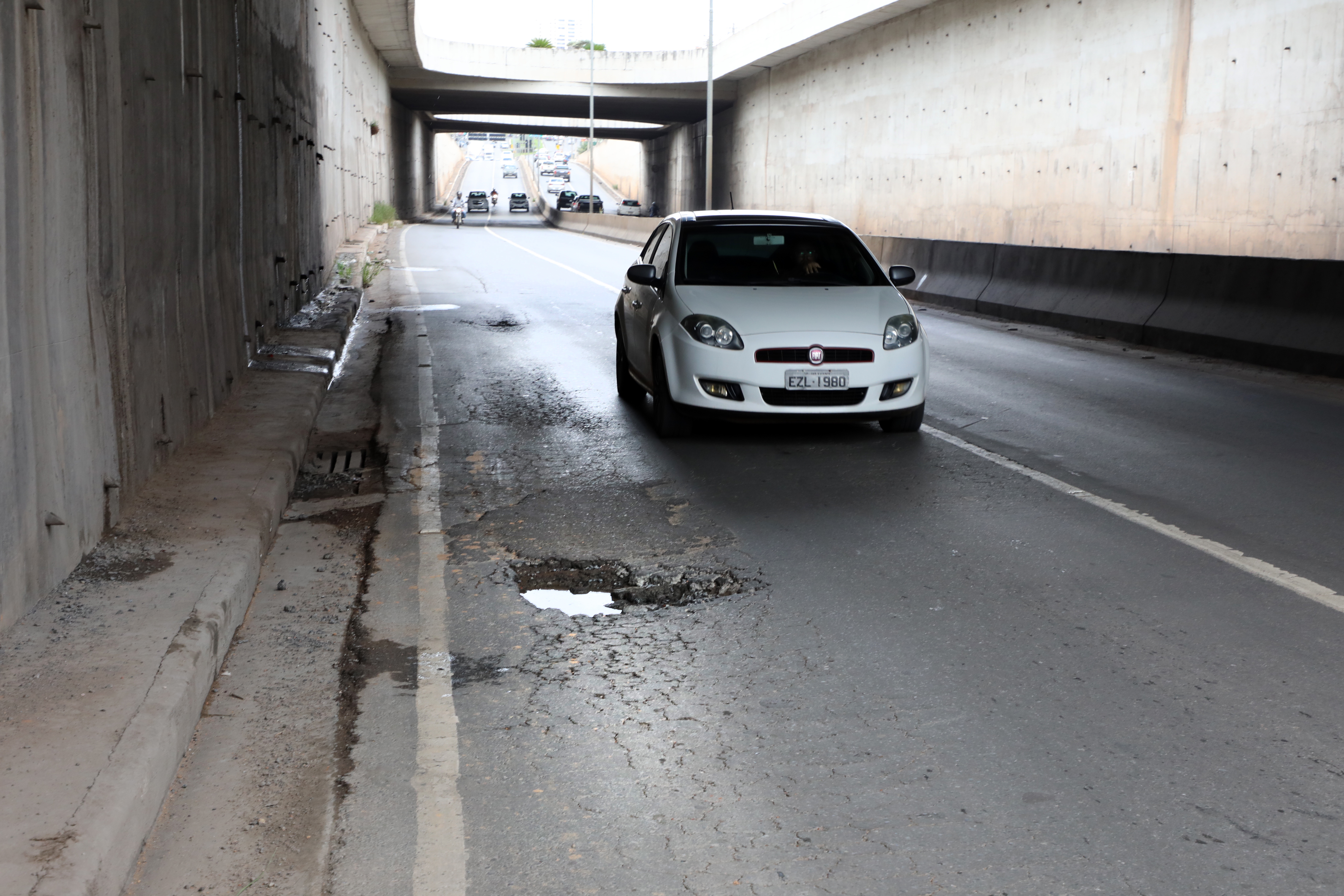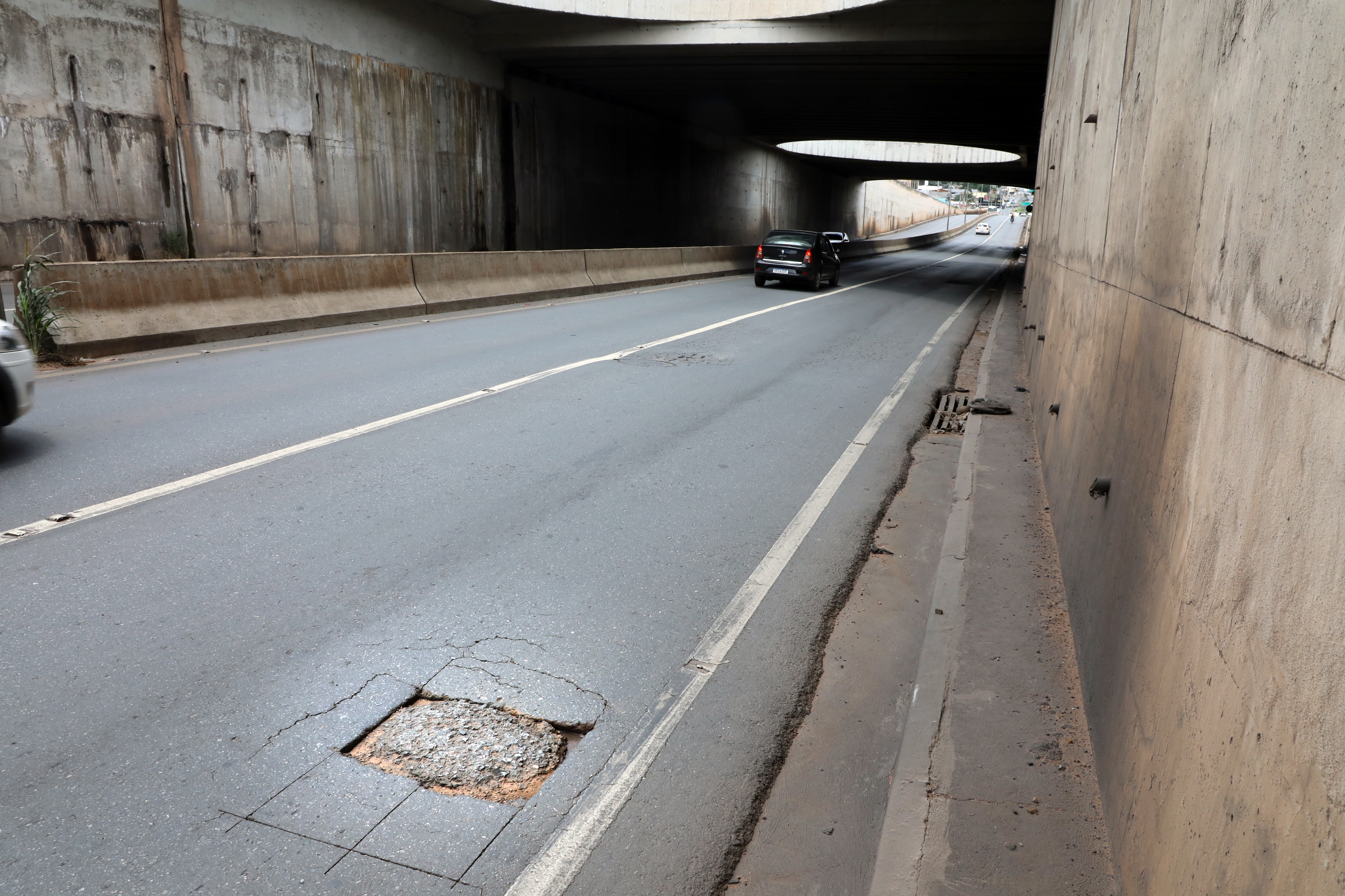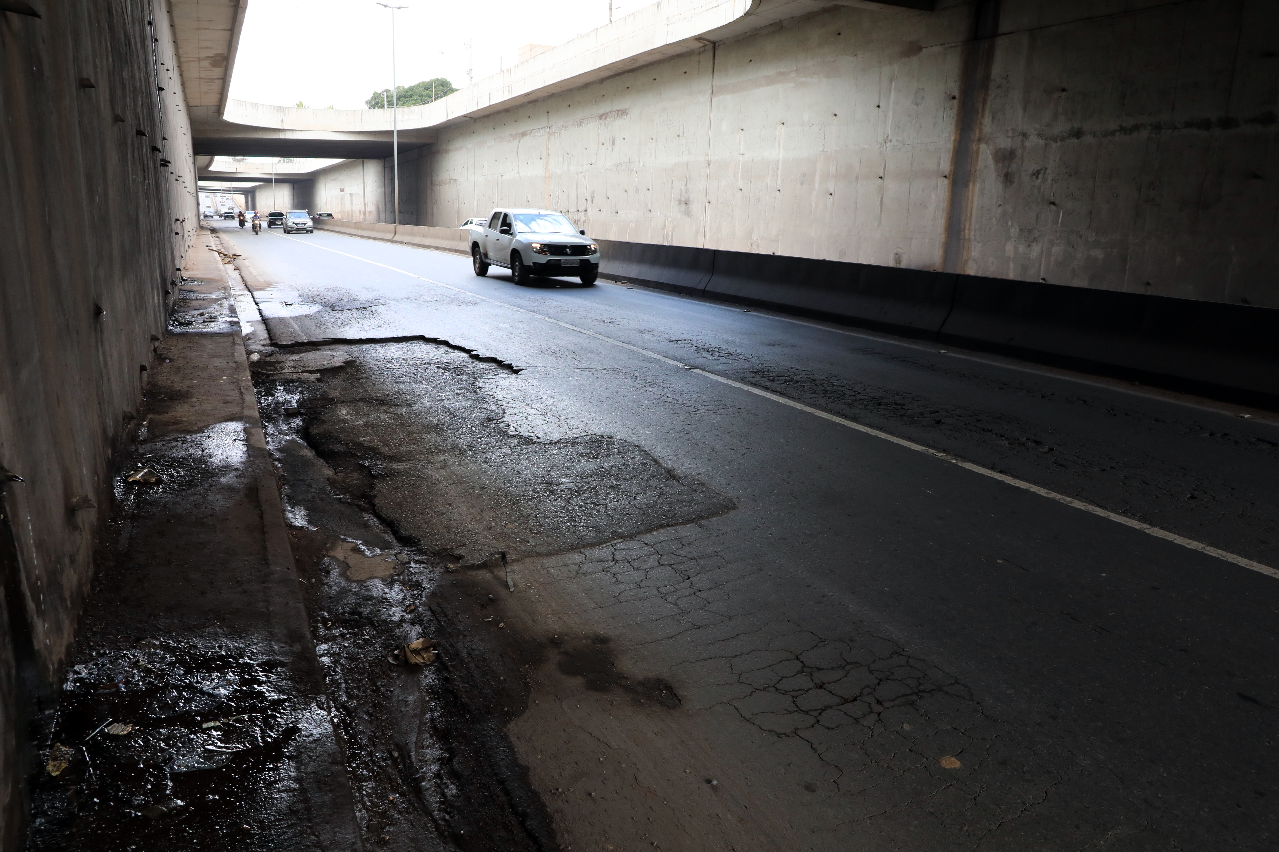 “A estrutura sofre desde sua construção com esse problema. O dreno foi extremamente mal feito ou inexistiu. Nas paredes, também não foi bem feito. Temos um impacto muito grande. Vocês percebem que o asfalto ficou esborrachado, e isto é problema de drenagem”, relata José Roberto Stopa.