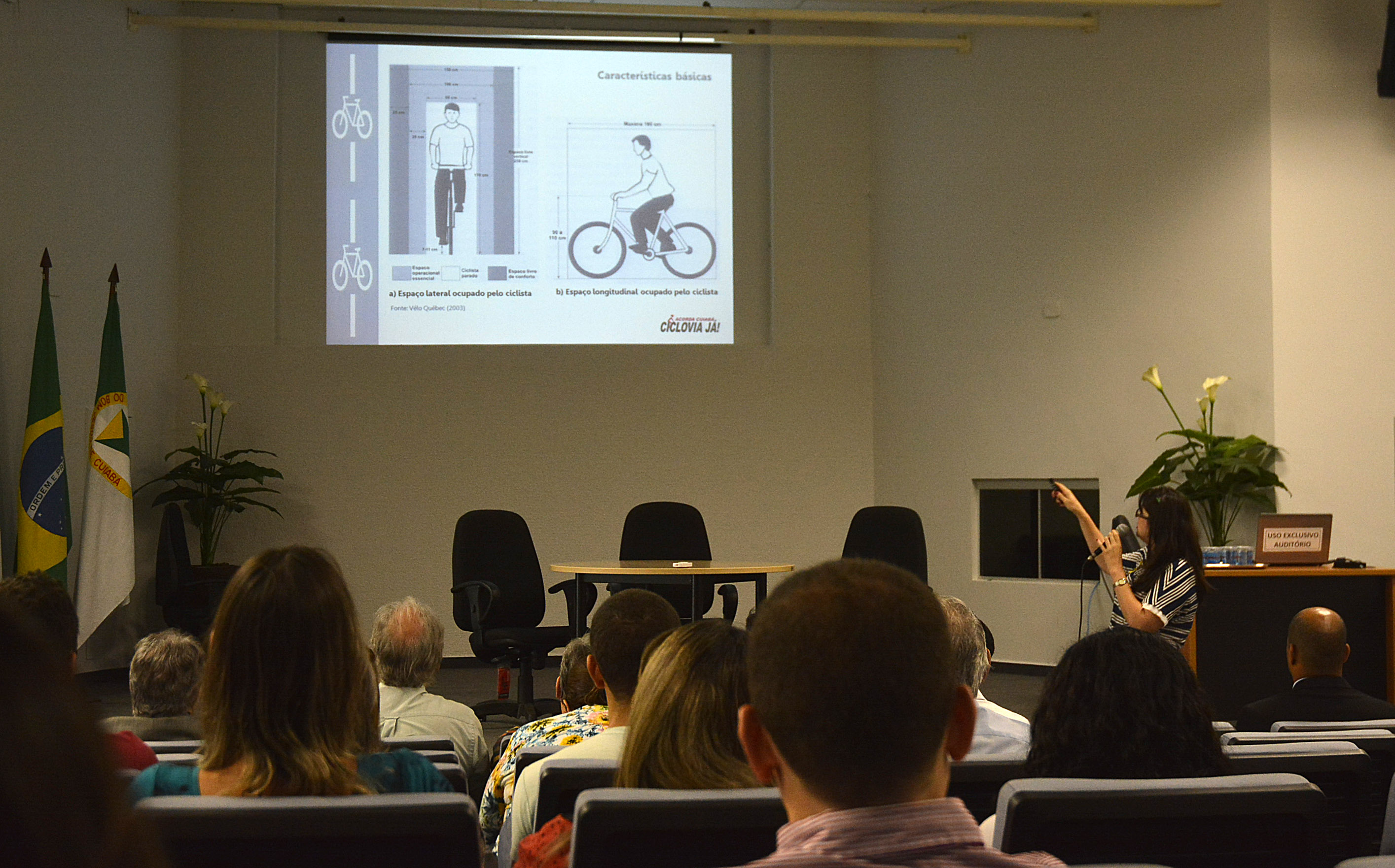Outro tema abordado no painel foi sobre o planejamento e projeto de transporte cicloviário para a Capital, apresentado por Maria Luiza Queiroz Brandão, representante do movimento Ciclovias Já. Ela relatou suas pesquisas realizadas na Irlanda, Holanda e França, países onde as ciclovias estão incluídas nos sistemas de transporte e também chamou a atenção para a necessidade de recuperação de ciclovias e ciclofaixas já existentes, como a da Estrada do Moinho e a da Avenida das Torres.