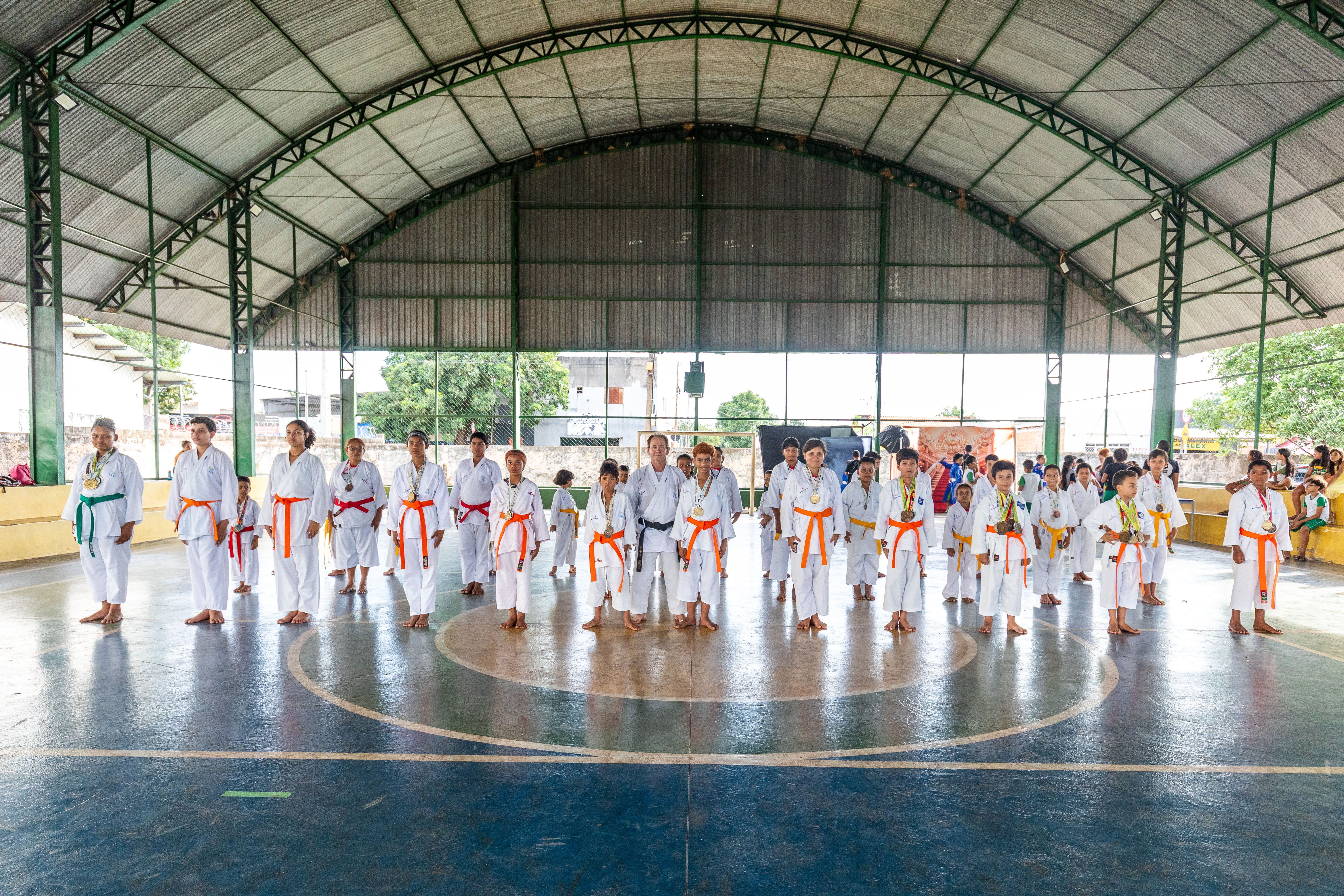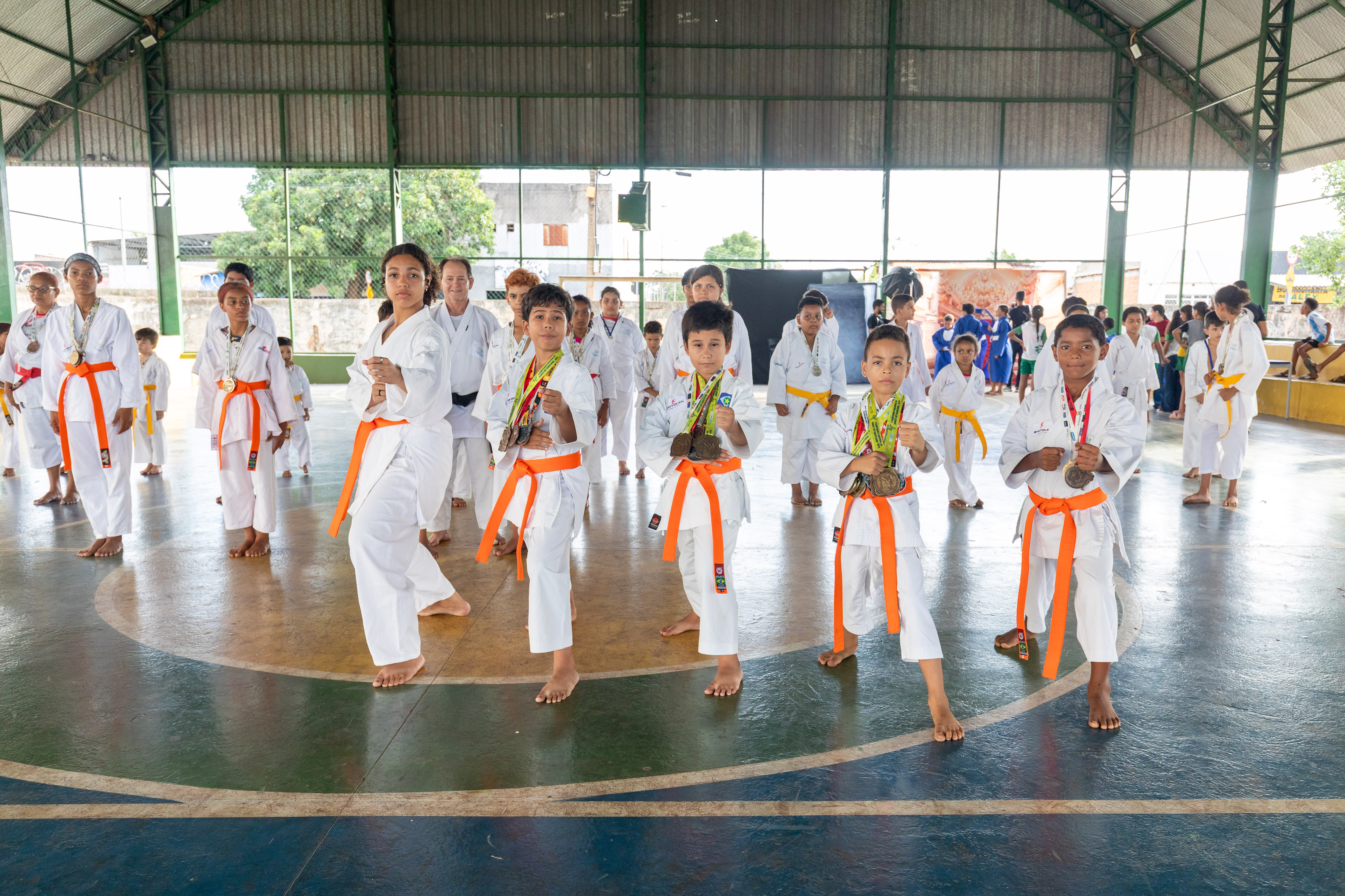 A Escola Municipal de Educação Básica (EMEB) Senador Gastão Muller tem 22 alunos praticantes de karatê que já conquistaram medalhas de ouro, prata e bronze em competições estaduais e nacionais.