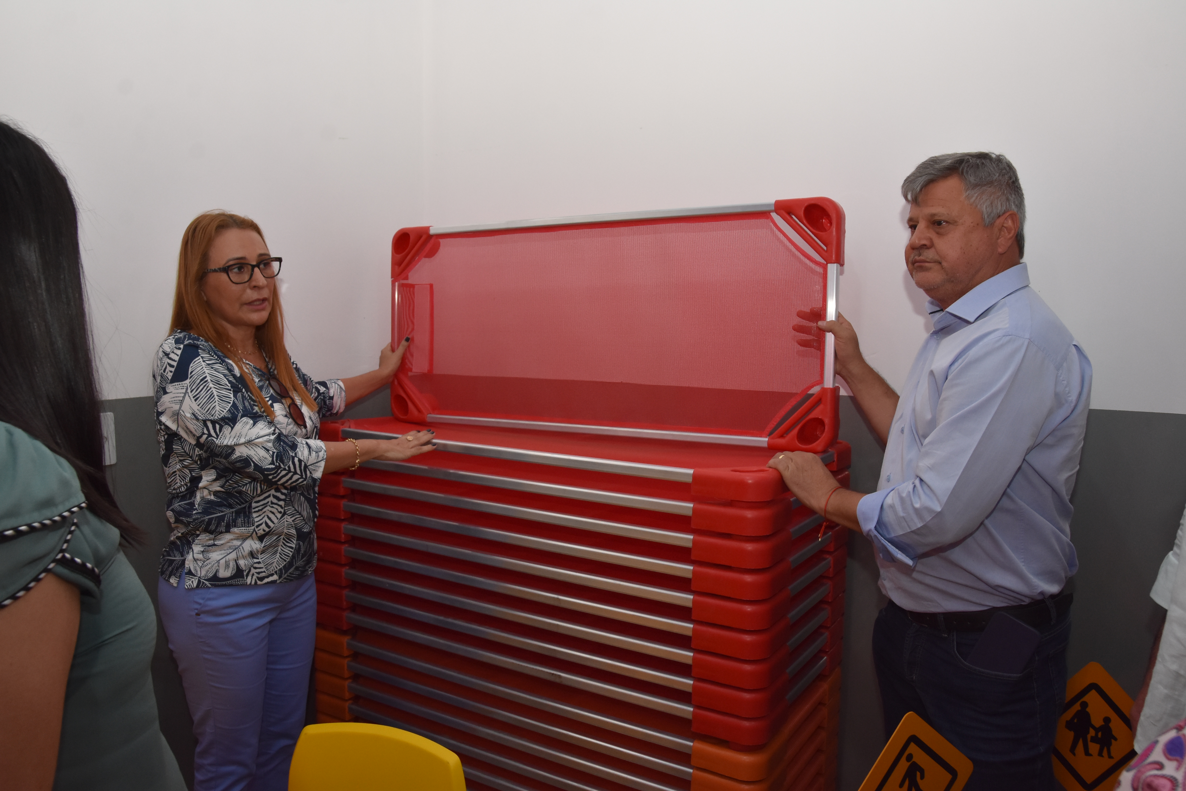 Edilene Machado falou sobre a novidade que será estendida em todas as unidades que atendem a etapa de creche, os colchonetes usados para o soninho das crianças foram substituídos por caminhas, mais confortáveis, higiênicas e não ficam no chão.