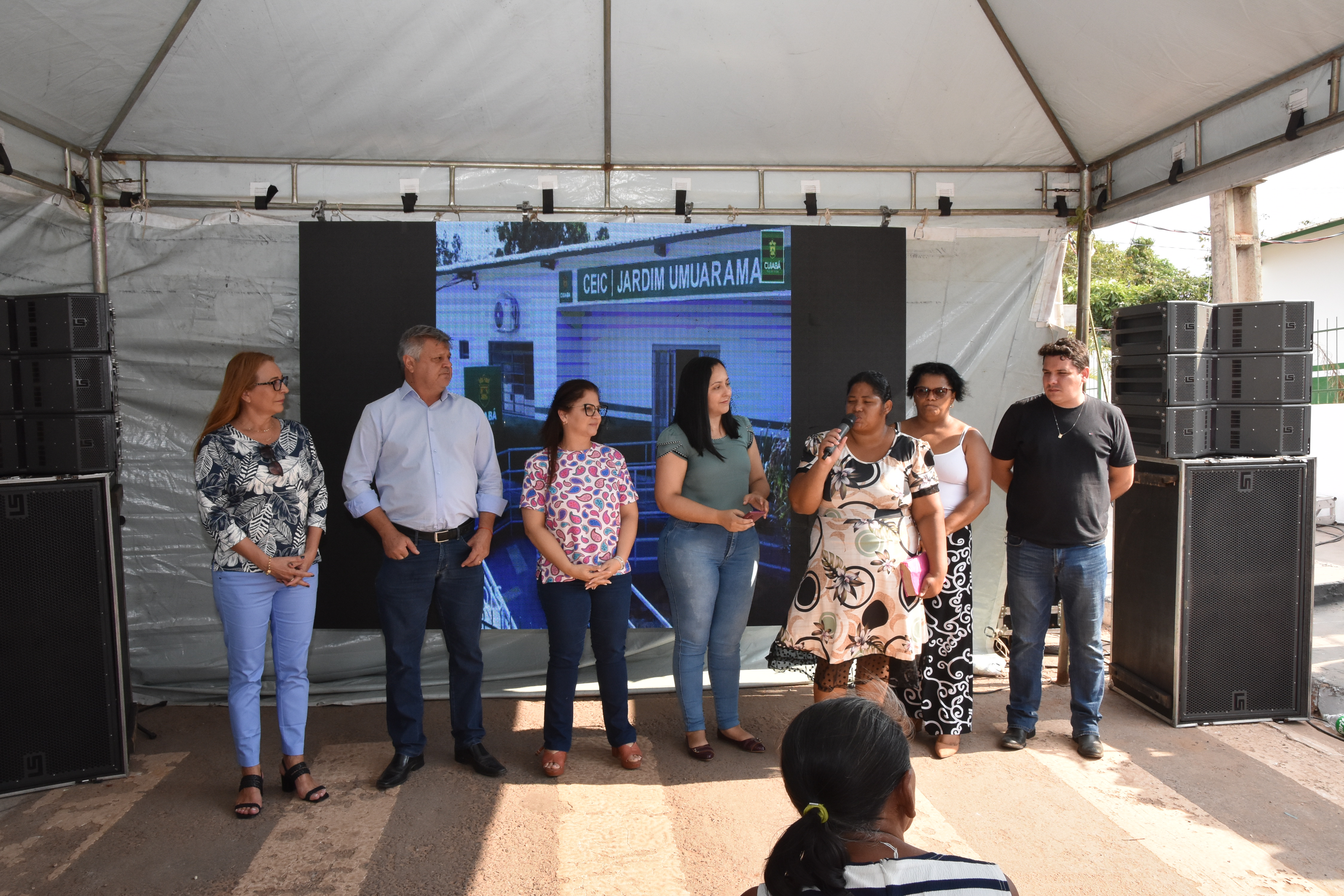 O vice-prefeito e secretário de Obras Públicas, José Roberto Stopa, e a secretária municipal de Educação, Edilene de Souza Machado, entregaram nesta sexta-feira (2) mais uma obra da gestão Emanuel Pinheiro, desta vez no bairro Jardim Umuarama II, na Regional Norte. A nova unidade, que passa a ser um Centro de Educação Infantil Cuiabano (CEIC), atenderá 110 crianças de 2 anos a 3 anos e 11 meses, dos Jardins I e II.