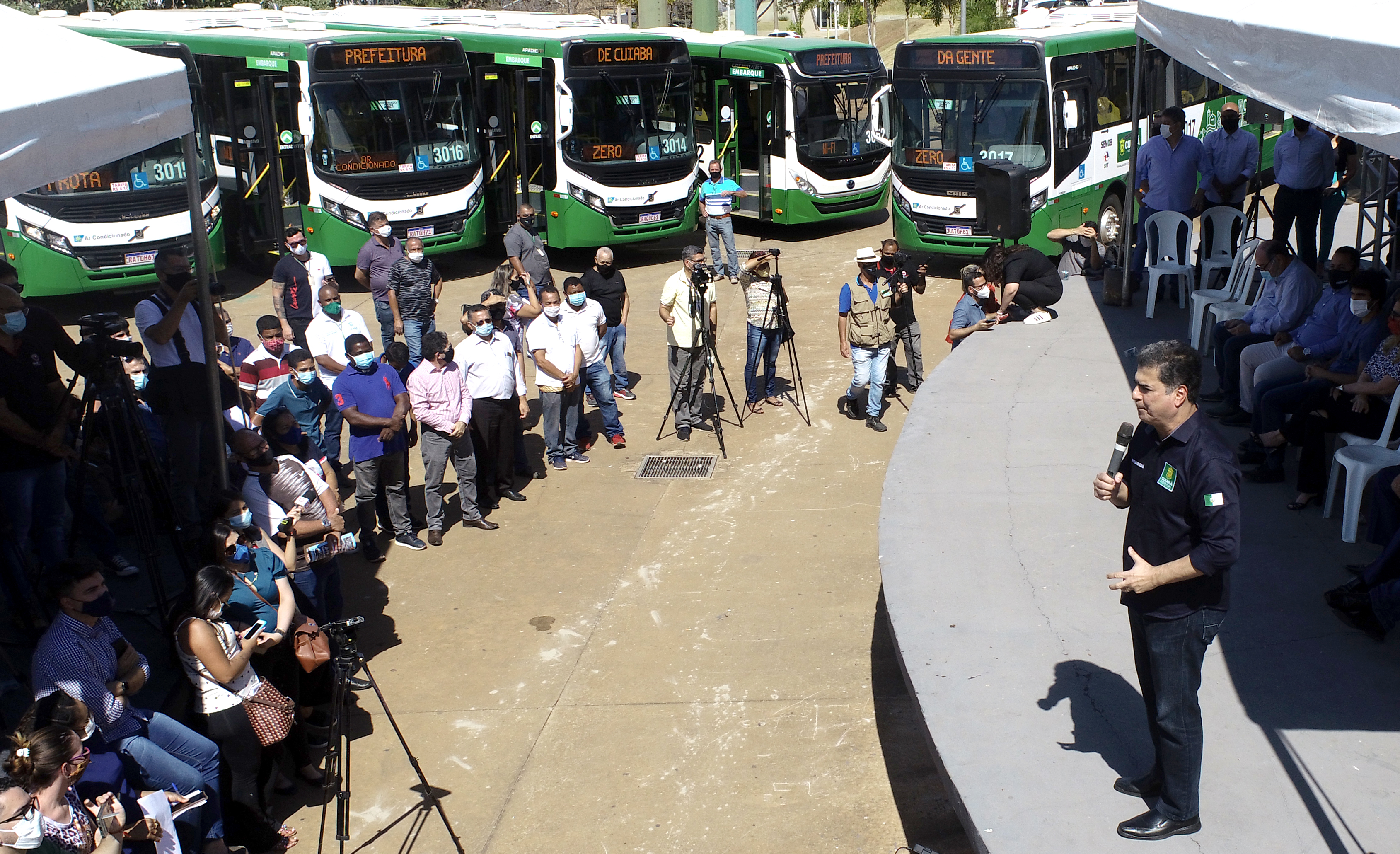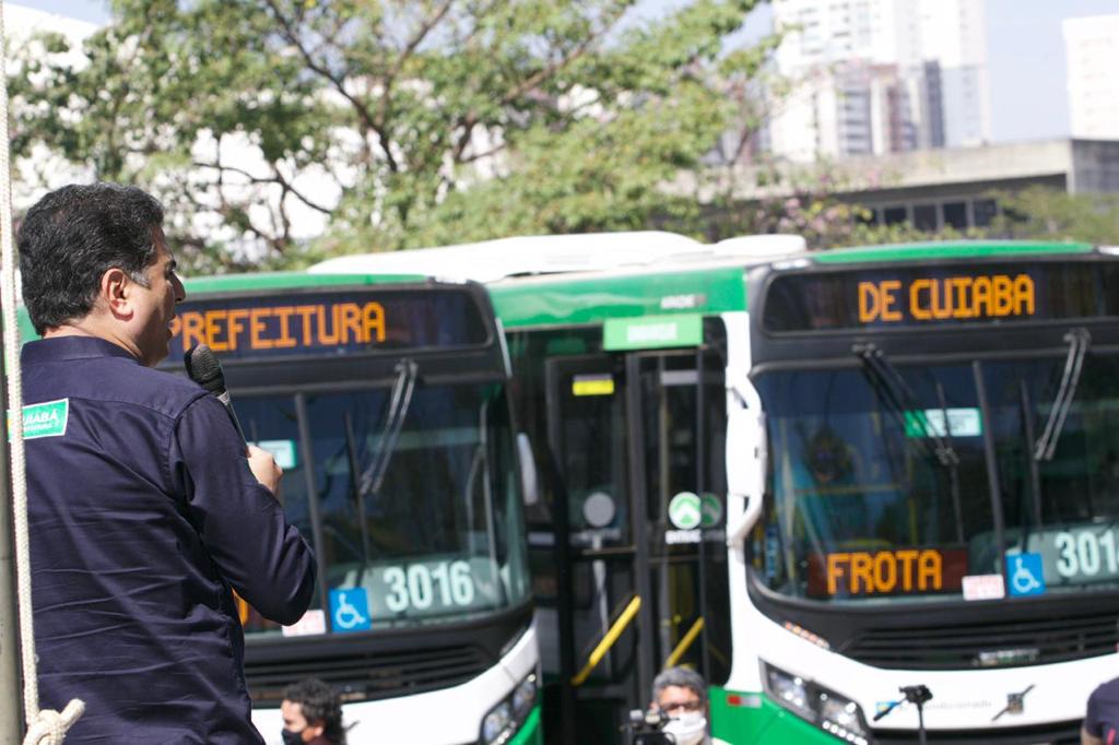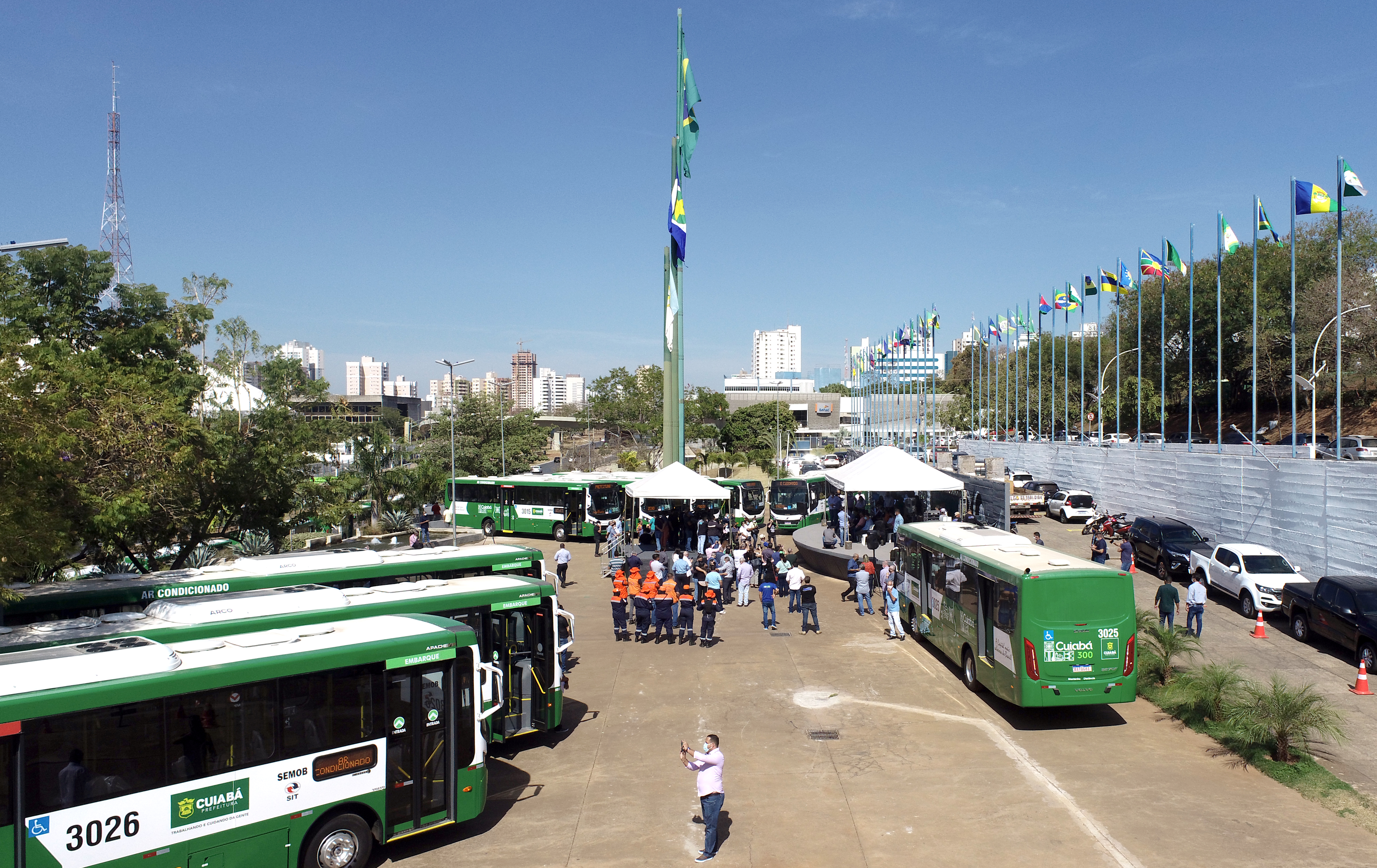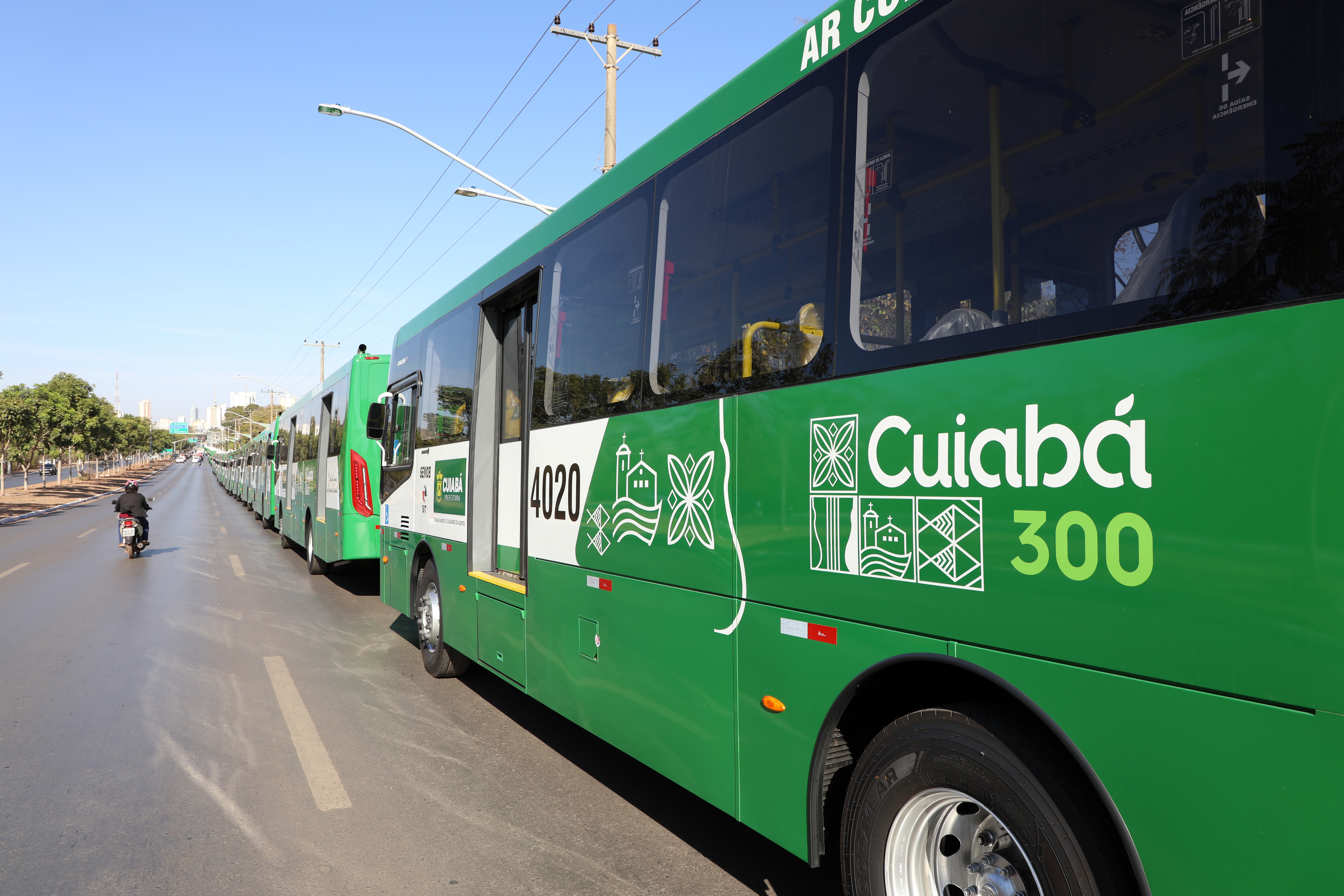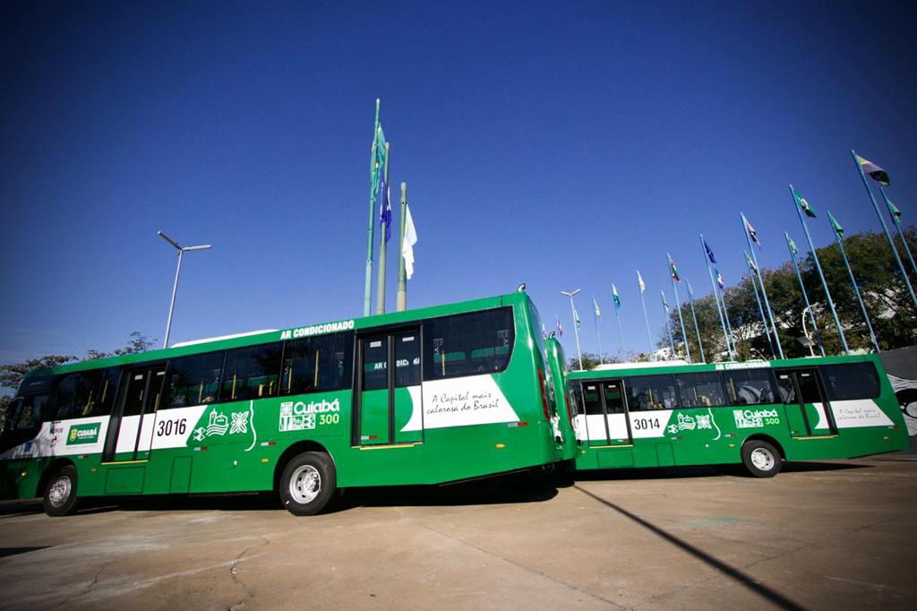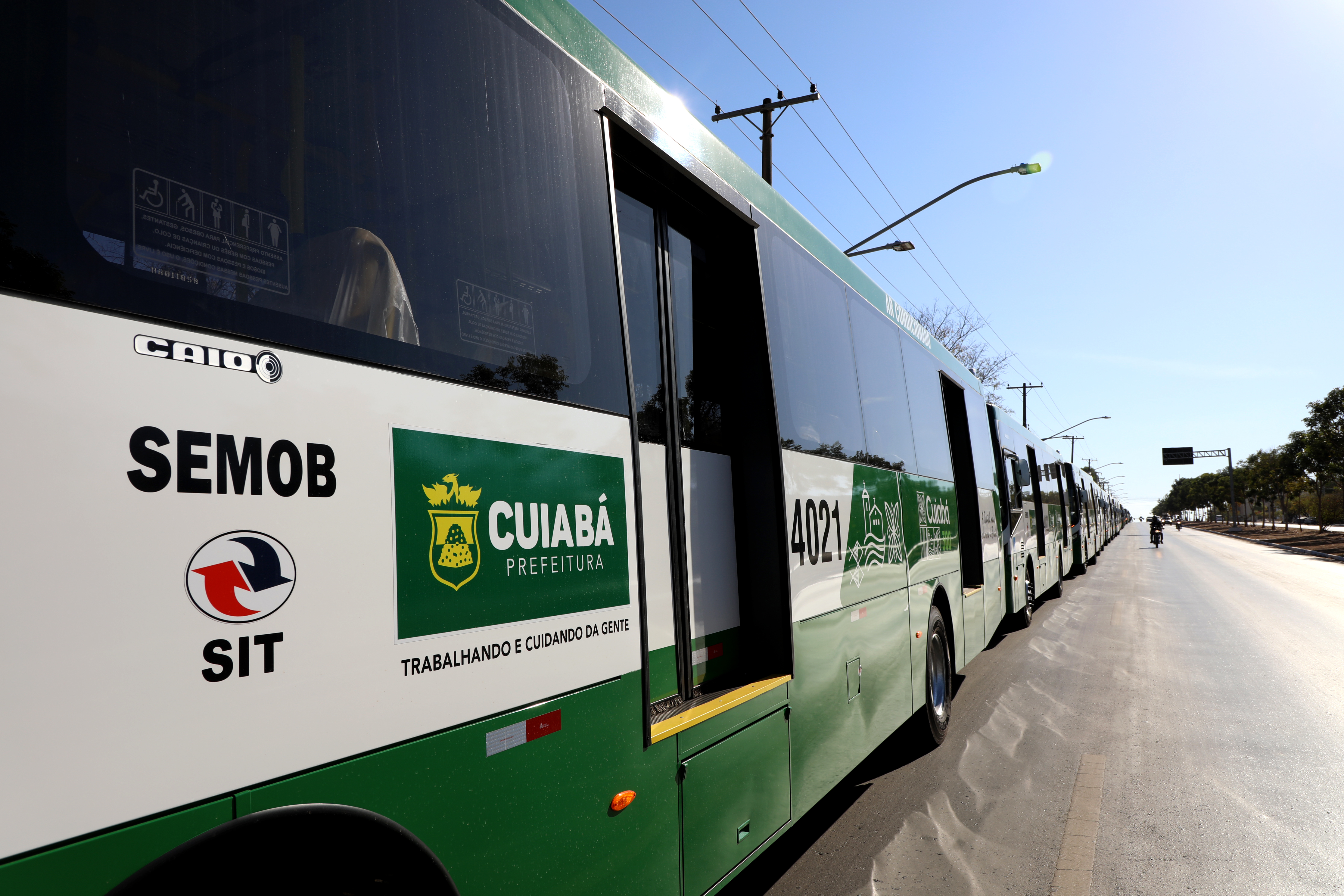 Com mais de 260 mil usuários do transporte coletivo atendidos diariamente, Cuiabá recebe 144 novos veículos, todos climatizados, com câmeras de segurança, wi-fi, plataforma elevatória para transporte de pessoa com deficiência e também a inserção gradativa de ônibus tipo “Padron”, com baixa emissão de poluentes locais e CO2, reforçando o compromisso da gestão com a sustentabilidade e adesão a Agenda 2030, sendo Cuiabá signatária do Pacto Global da Organização das Nações Unidas (ONU).