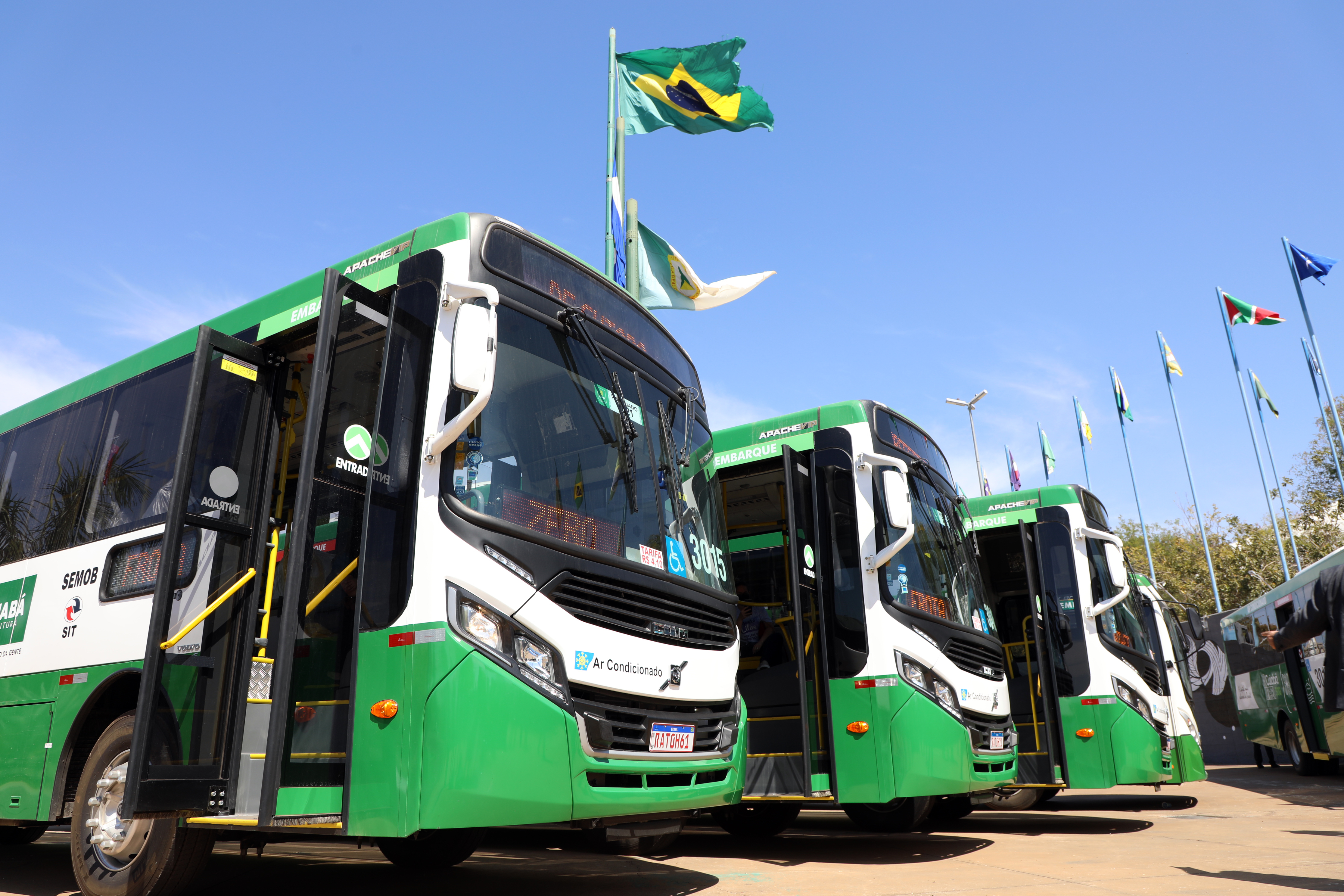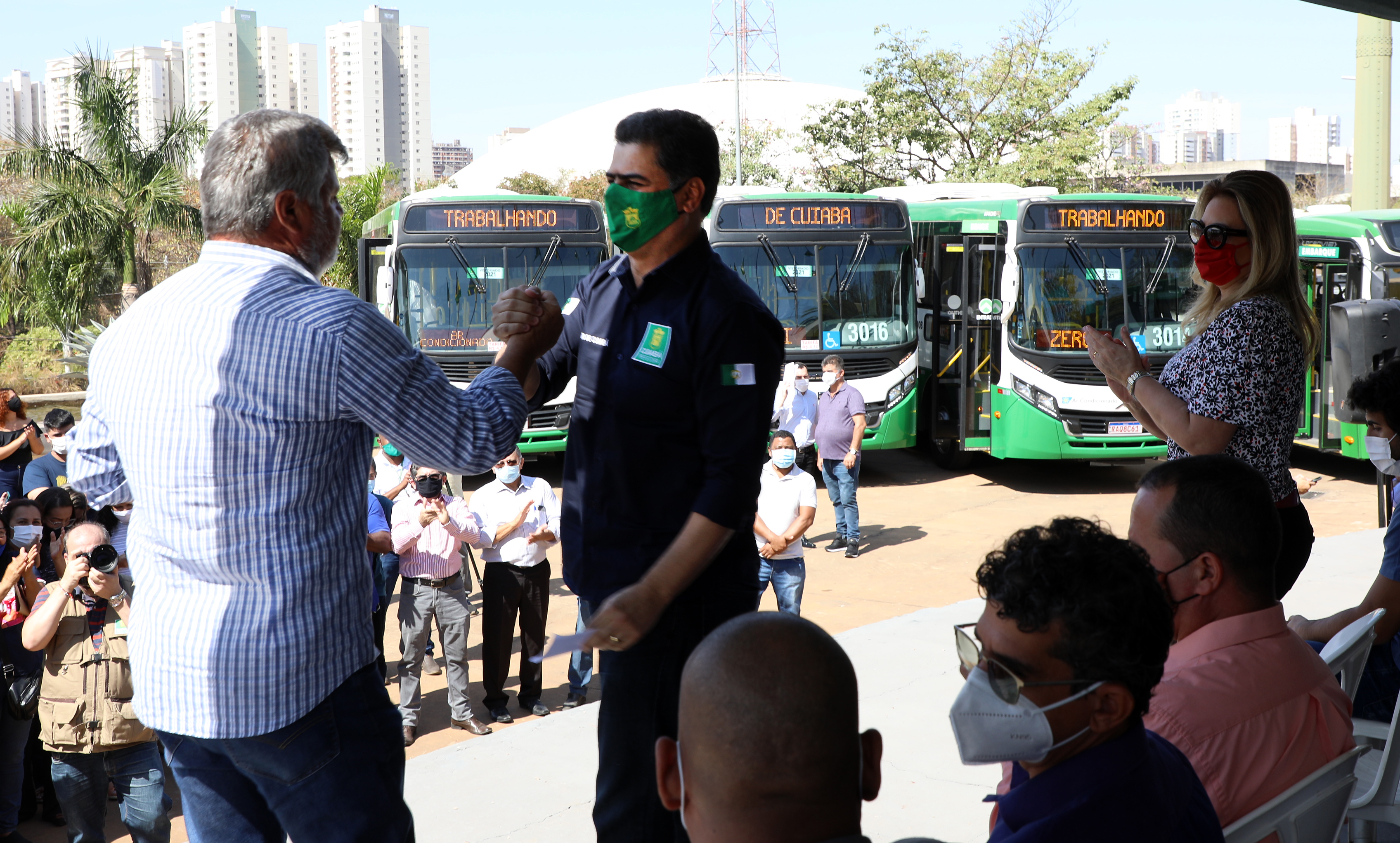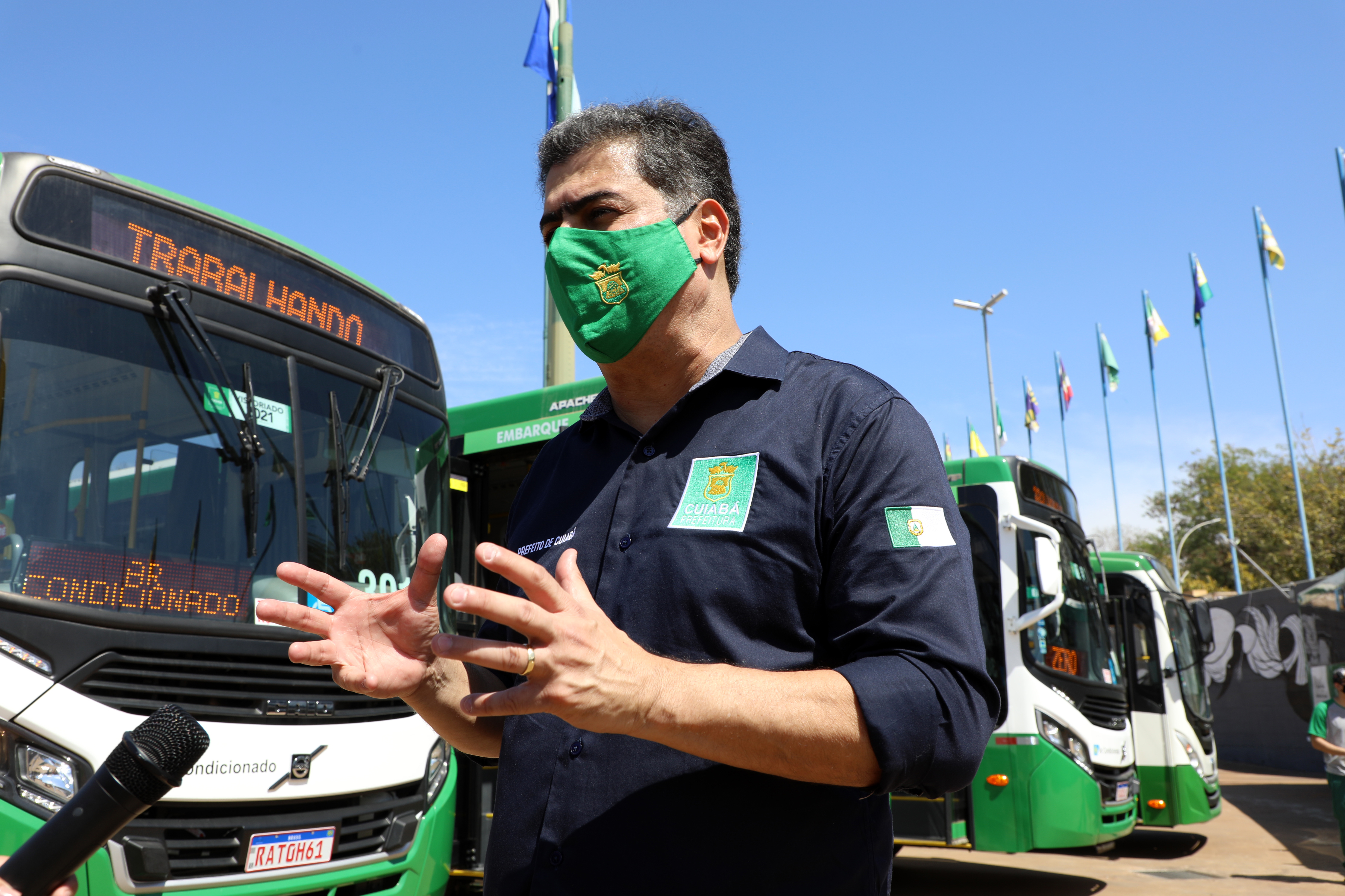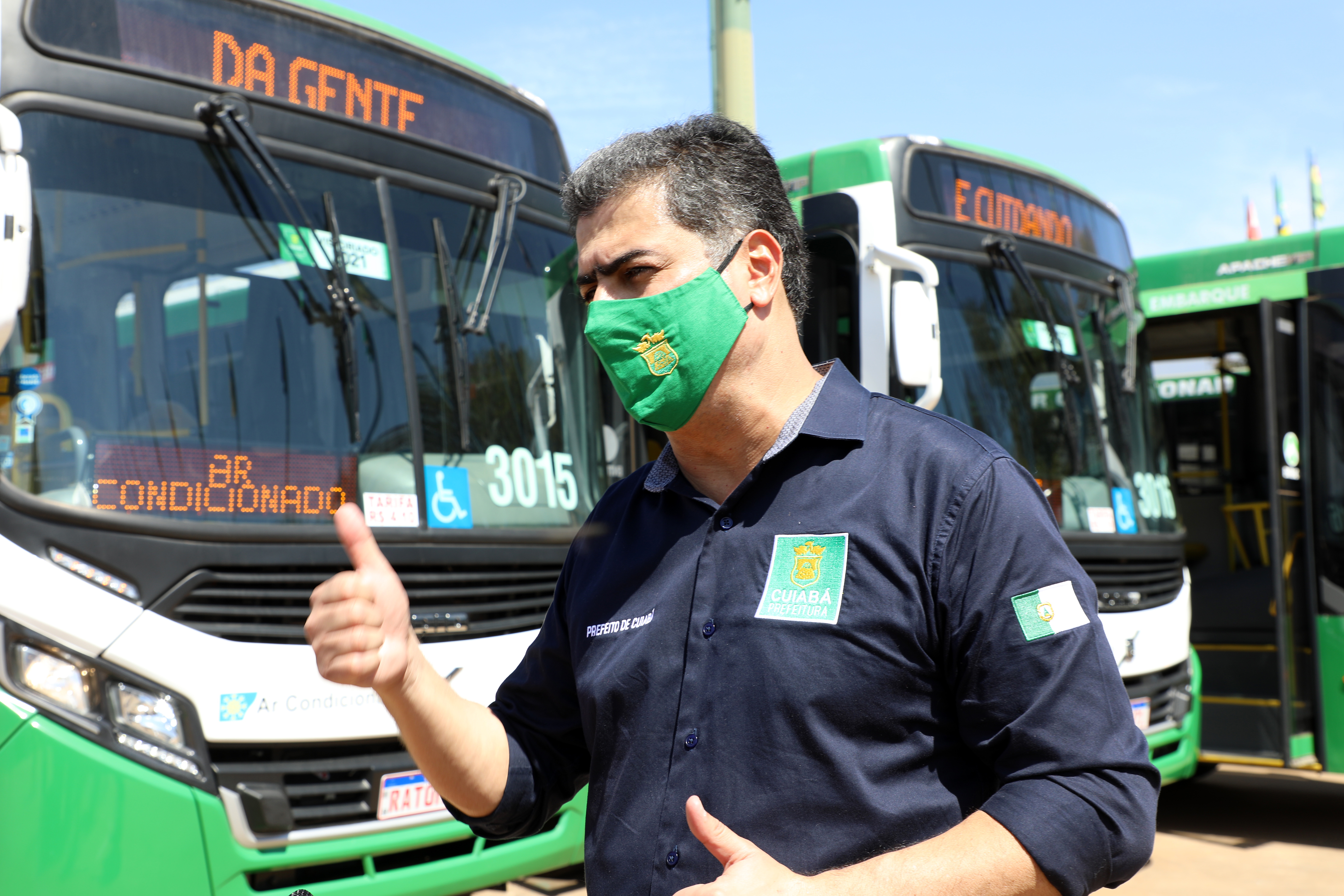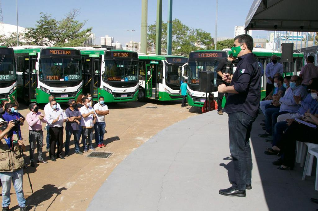 Com mais de 260 mil usuários do transporte coletivo atendidos diariamente, Cuiabá recebe 144 novos veículos, todos climatizados, com câmeras de segurança, wi-fi, plataforma elevatória para transporte de pessoa com deficiência e também a inserção gradativa de ônibus tipo “Padron”, com baixa emissão de poluentes locais e CO2, reforçando o compromisso da gestão com a sustentabilidade e adesão a Agenda 2030, sendo Cuiabá signatária do Pacto Global da Organização das Nações Unidas (ONU).