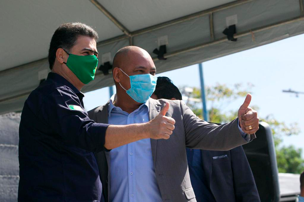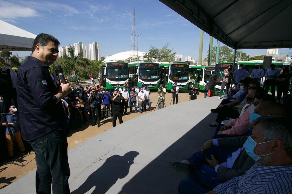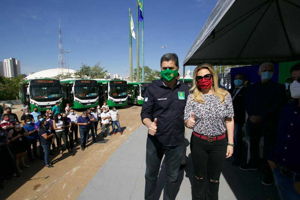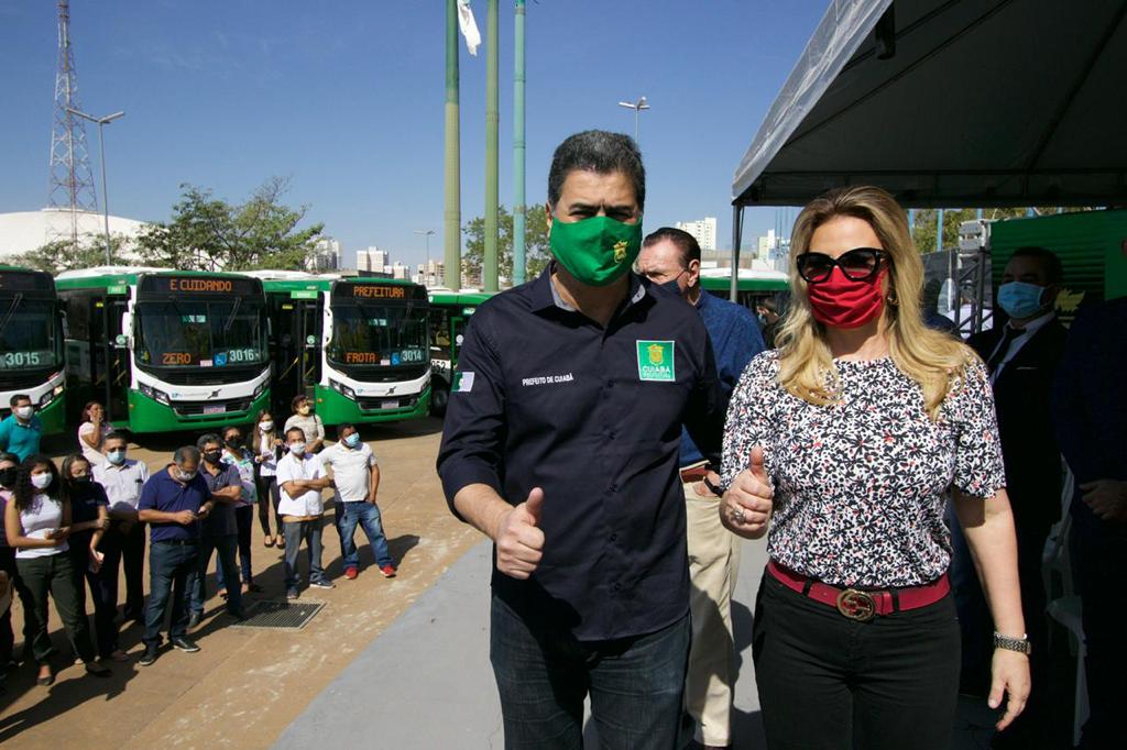 Juca destaca nova frota de ônibus como presente após 20 anos e Botelho elogia cuiabanos por escolher Pinheiro como prefeito