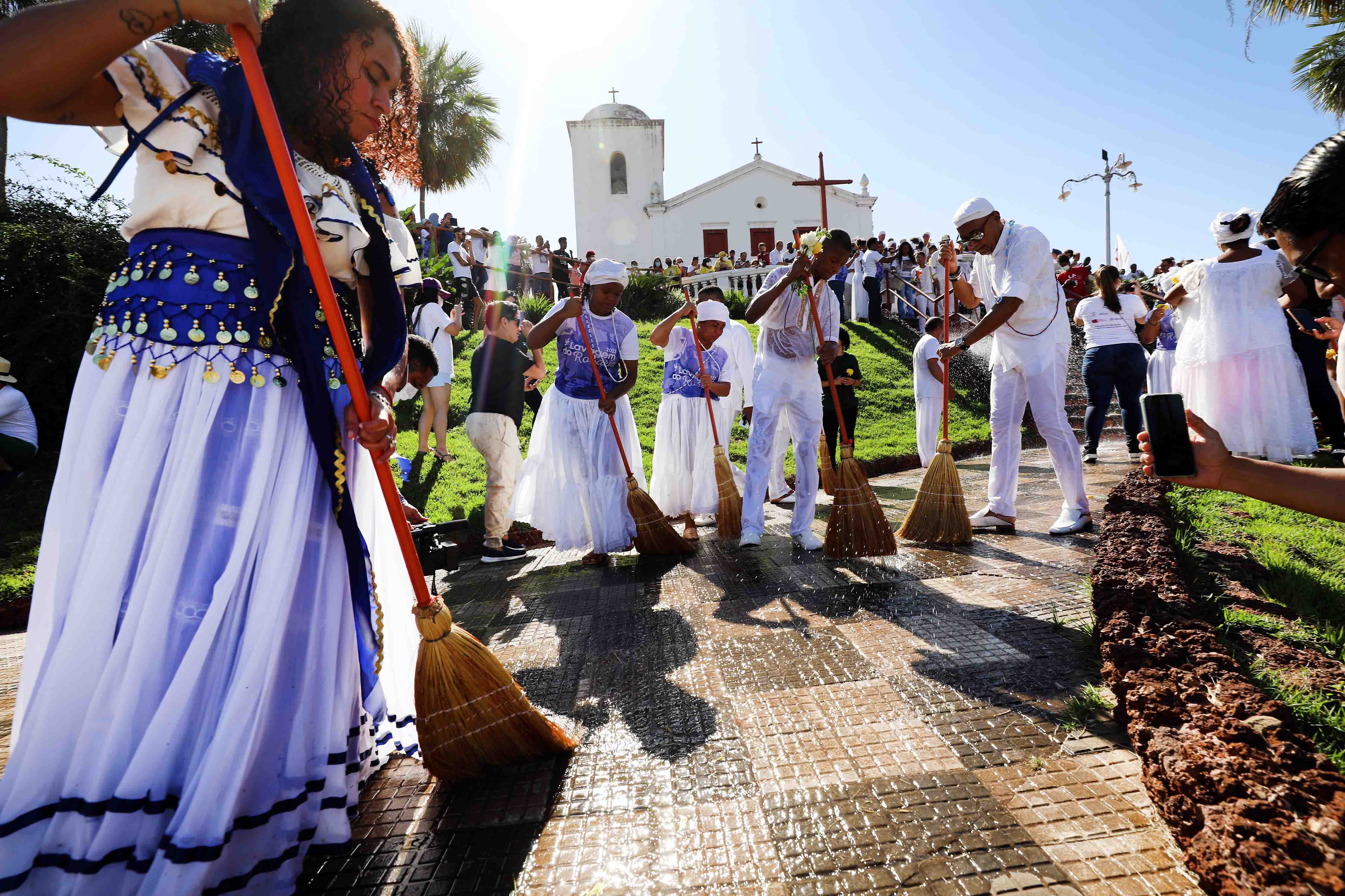 Integração cultural, dança, cânticos e muita fé marcaram a 6º edição da Lavagem das Escadarias da Igreja Nossa Senhora do Rosário e São Benedito. Apoiado pela Prefeitura de Cuiabá, o evento foi realizado neste sábado (25) e reuniu milhares de pessoas que, juntas, mais uma vez levantaram a bandeira pela paz entre os povos e pelo fim da intolerância religiosa.
