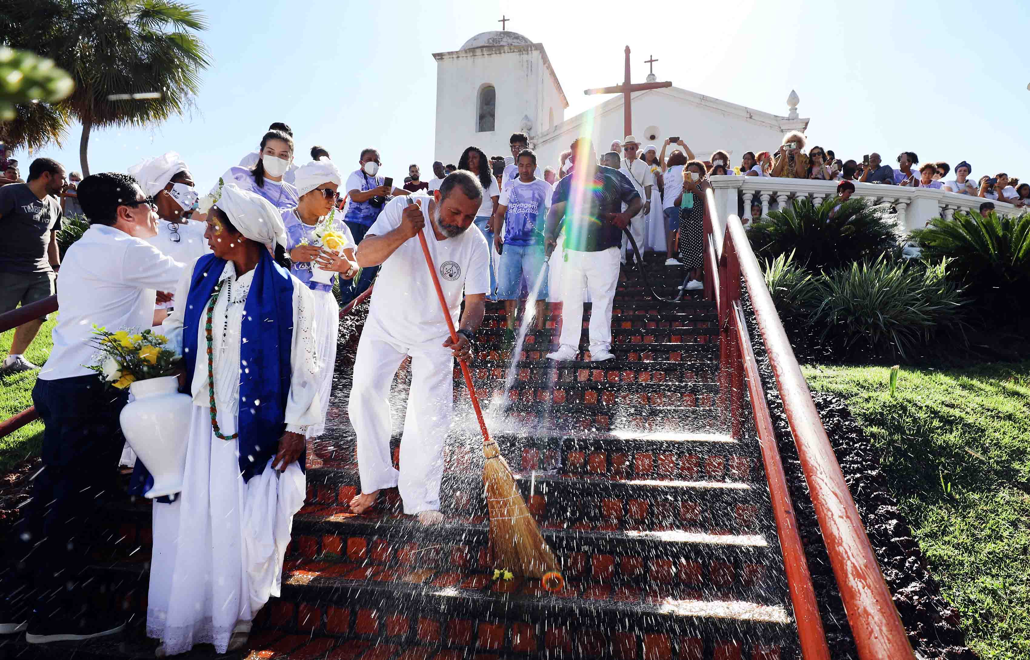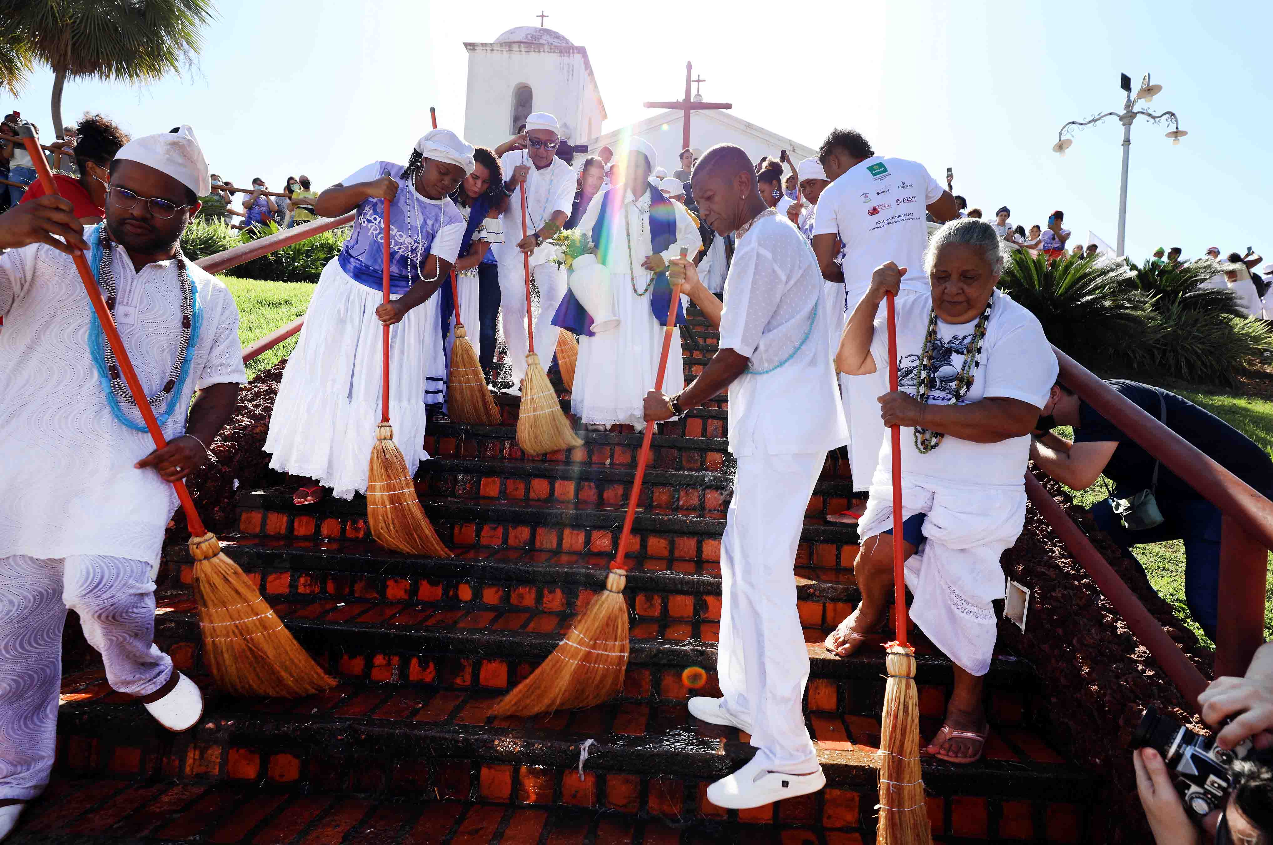 Lavagem das Escadaria do Rosário promove mensagem de paz e união entre os povos