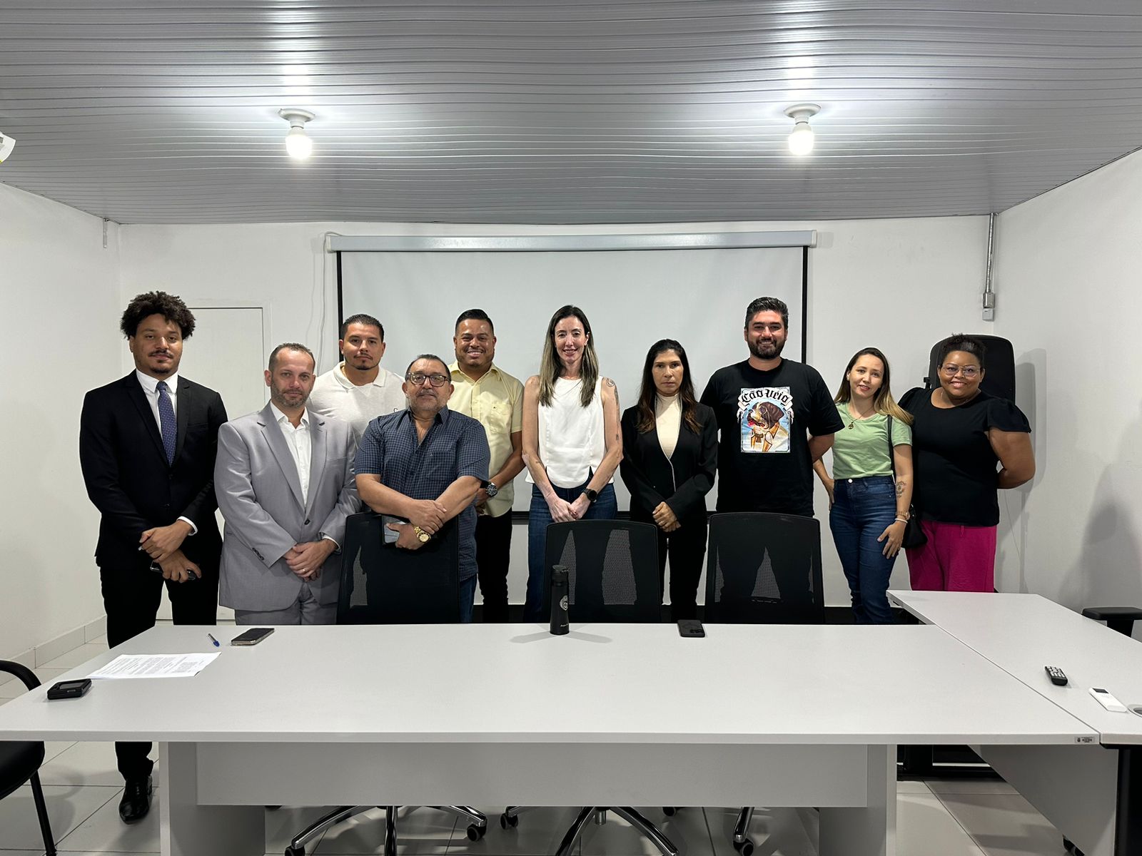 Essa notícia conta com foto de capa. Nela, aparece a secretária Juliana Palhares e os representantes da Libre. Há um total de 10 pessoas na imagem, sendo homens e mulheres - todos participaram da reunião.