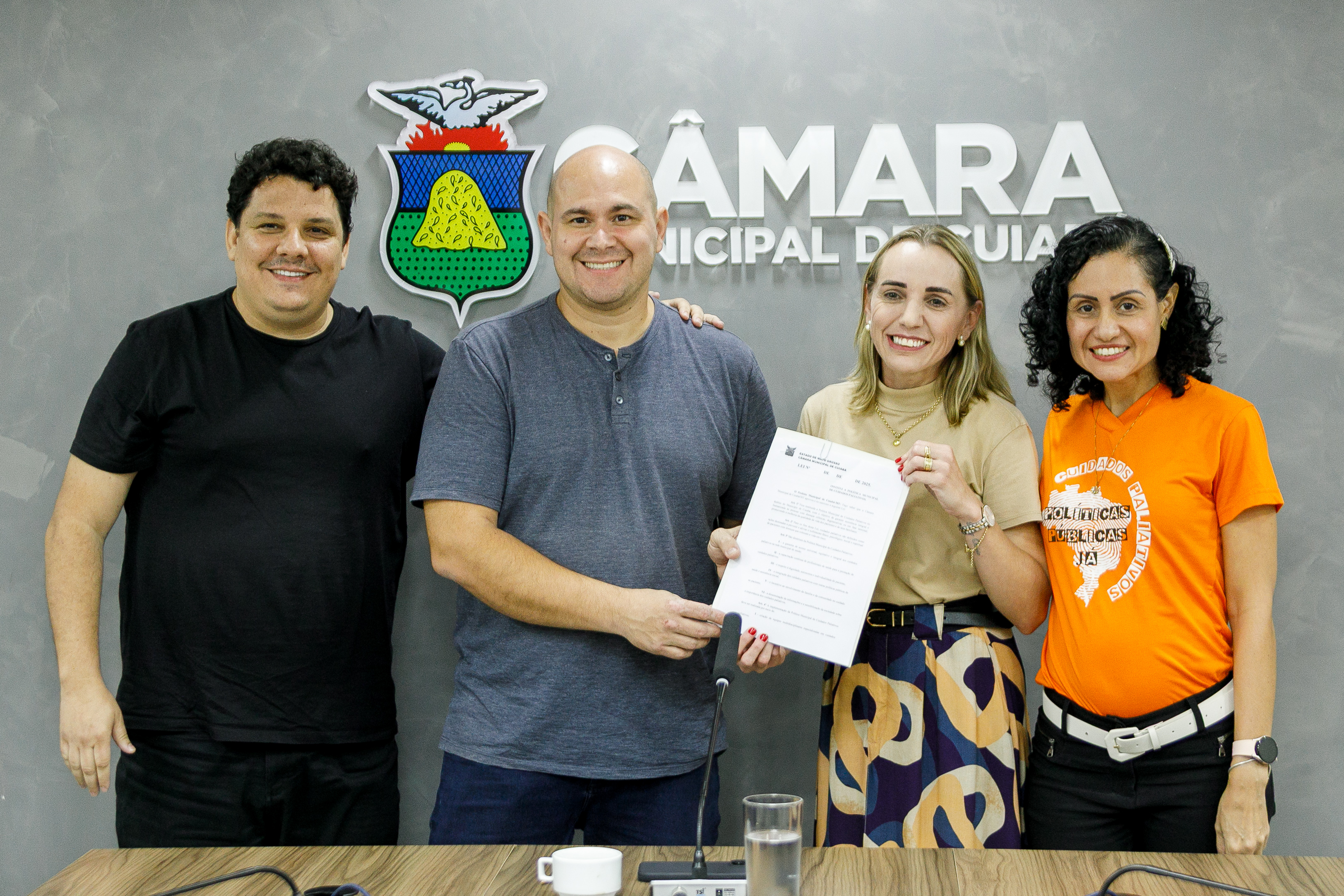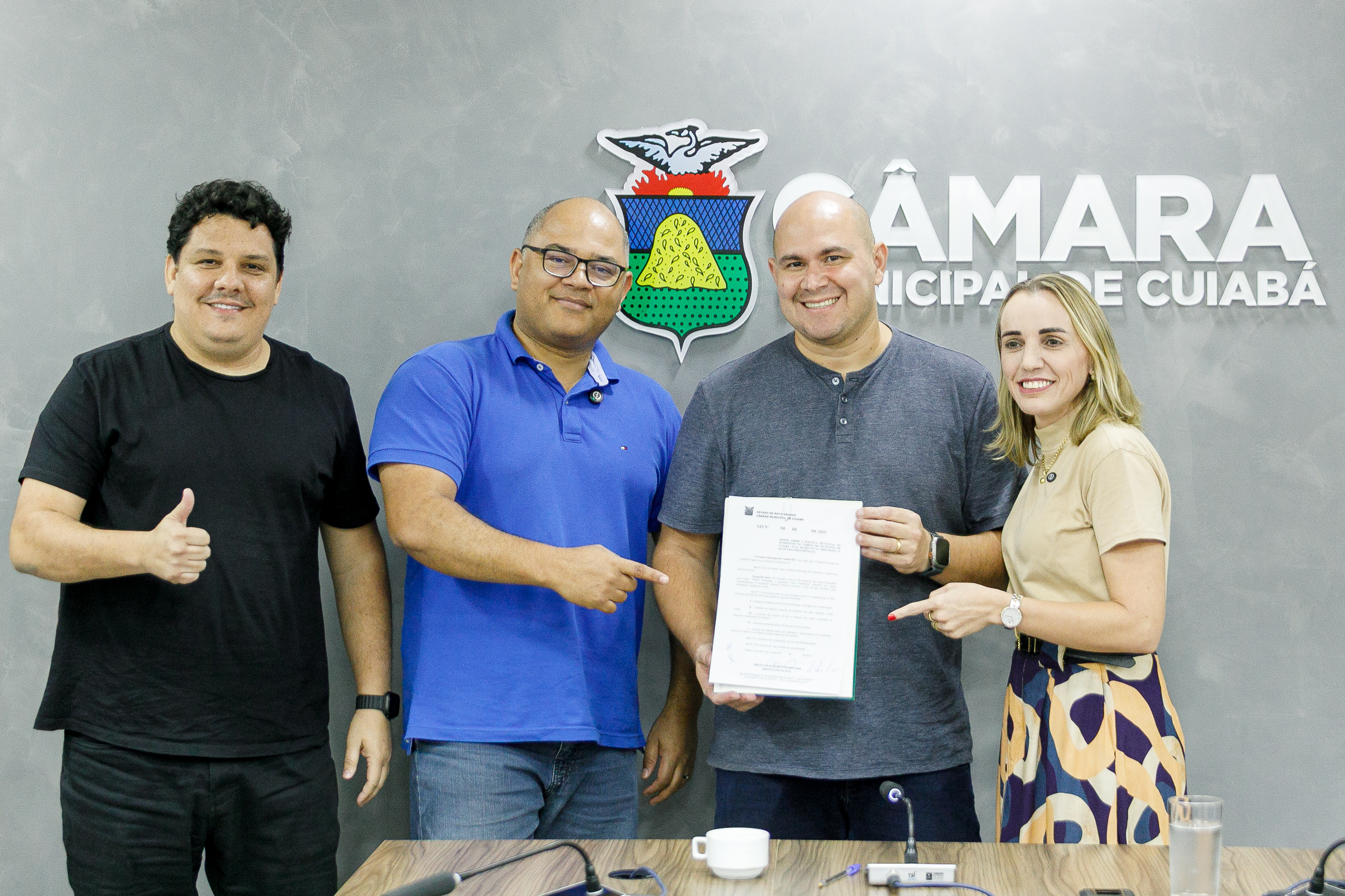 O prefeito de Cuiabá, Abilio Brunini, sancionou nesta sexta-feira (6) mais quatro leis aprovadas pela Câmara Municipal, fruto de proposituras dos vereadores Eduardo Magalhães, Katiuscia Manteli e Alex Rodrigues. A cerimônia de sanção ocorreu na sala das comissões da Câmara, com a presença dos parlamentares. As novas legislações abrangem áreas como meio ambiente, cultura, saúde e urbanismo, demonstrando a diversidade das pautas discutidas no Legislativo municipal.