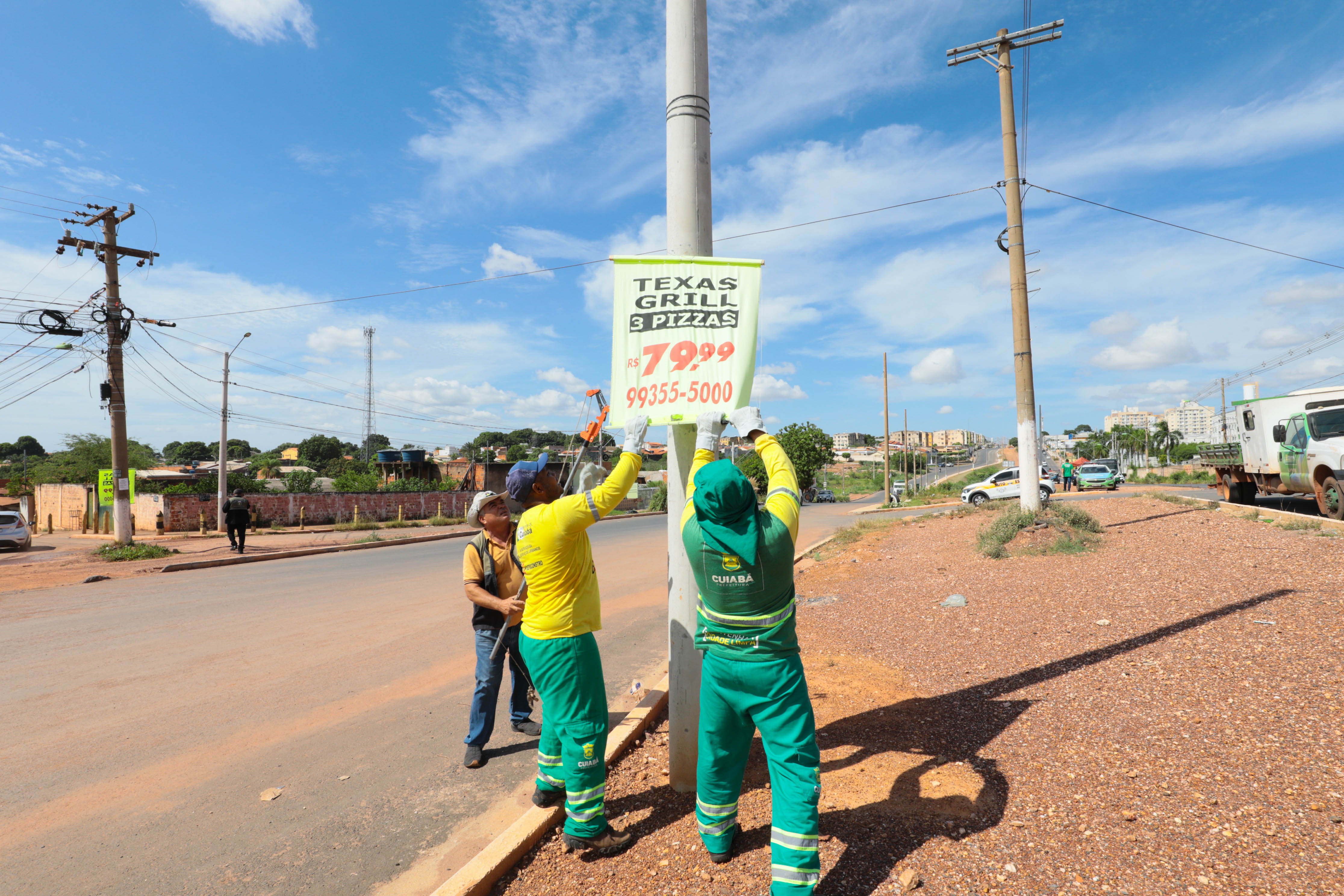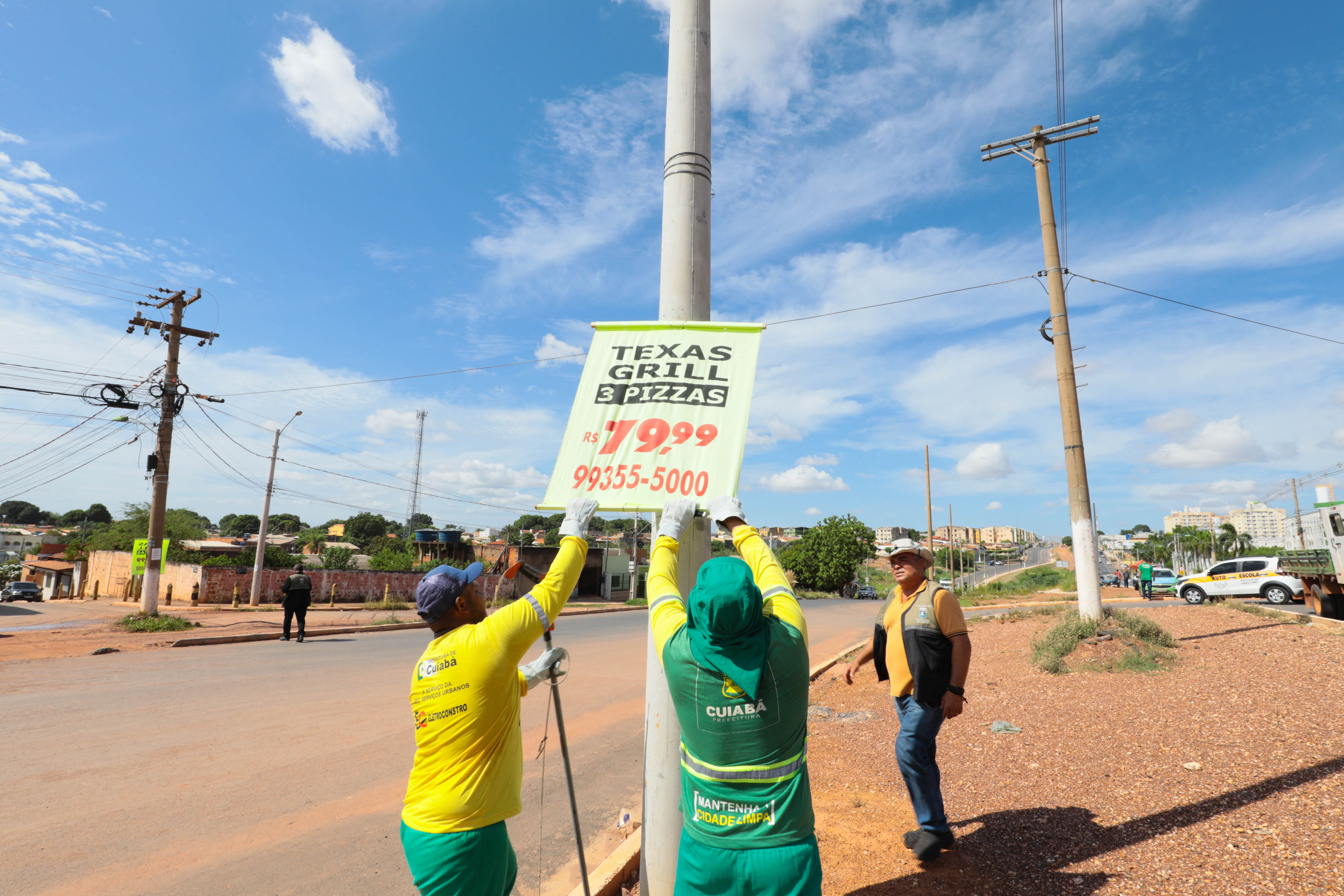 Uma operação em conjunto entre a Empresa Cuiabana de Zeladoria e Serviços Urbanos (Limpurb) e a Secretaria de Ordem Pública (SORP) está realizando o recolhimento de placas e faixas instaladas irregularmente em diversas vias da Capital. O trabalho foi iniciado nesta quarta-feira (07) e percorrerá cerca de 30 pontos mapeados pela fiscalização municipal.