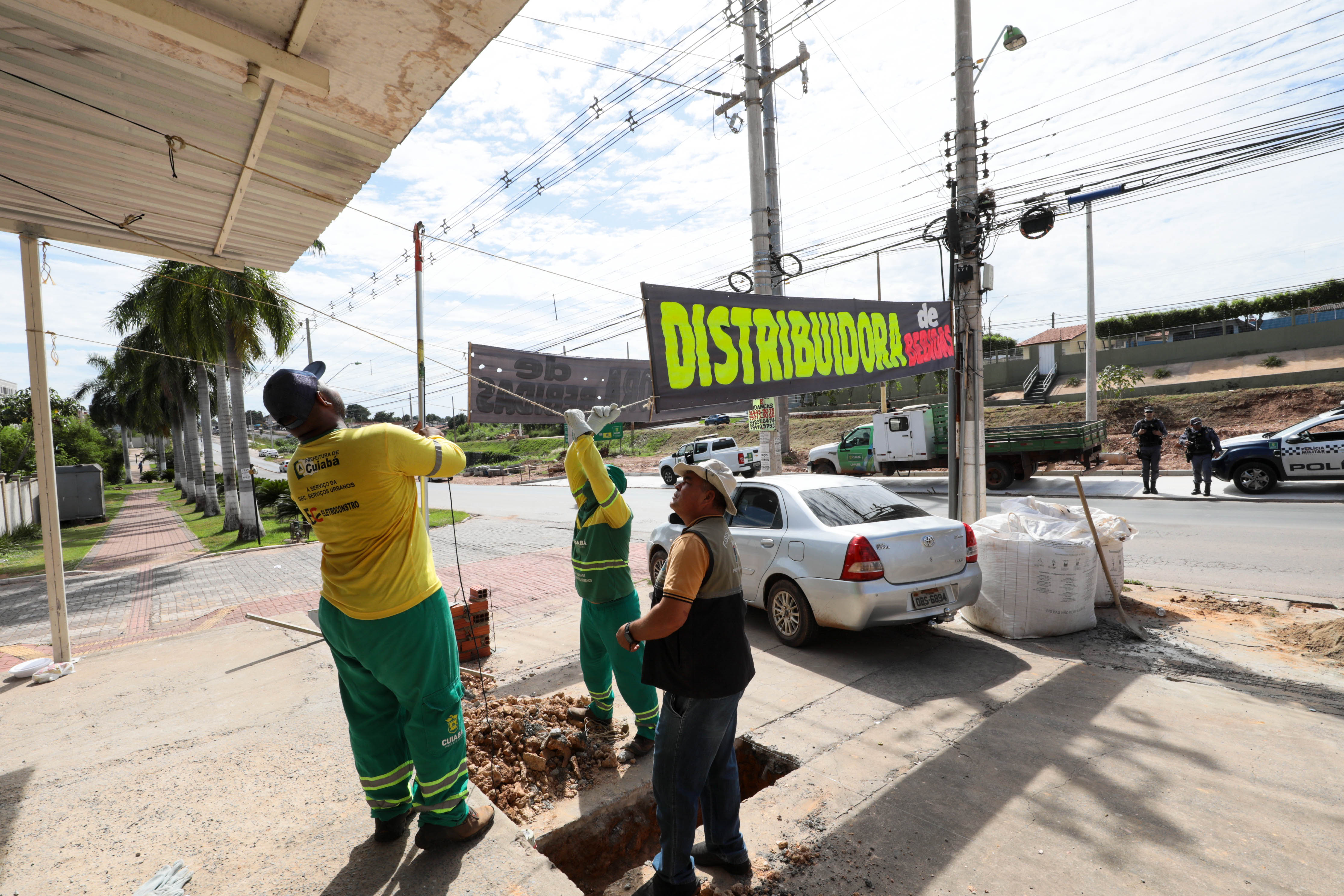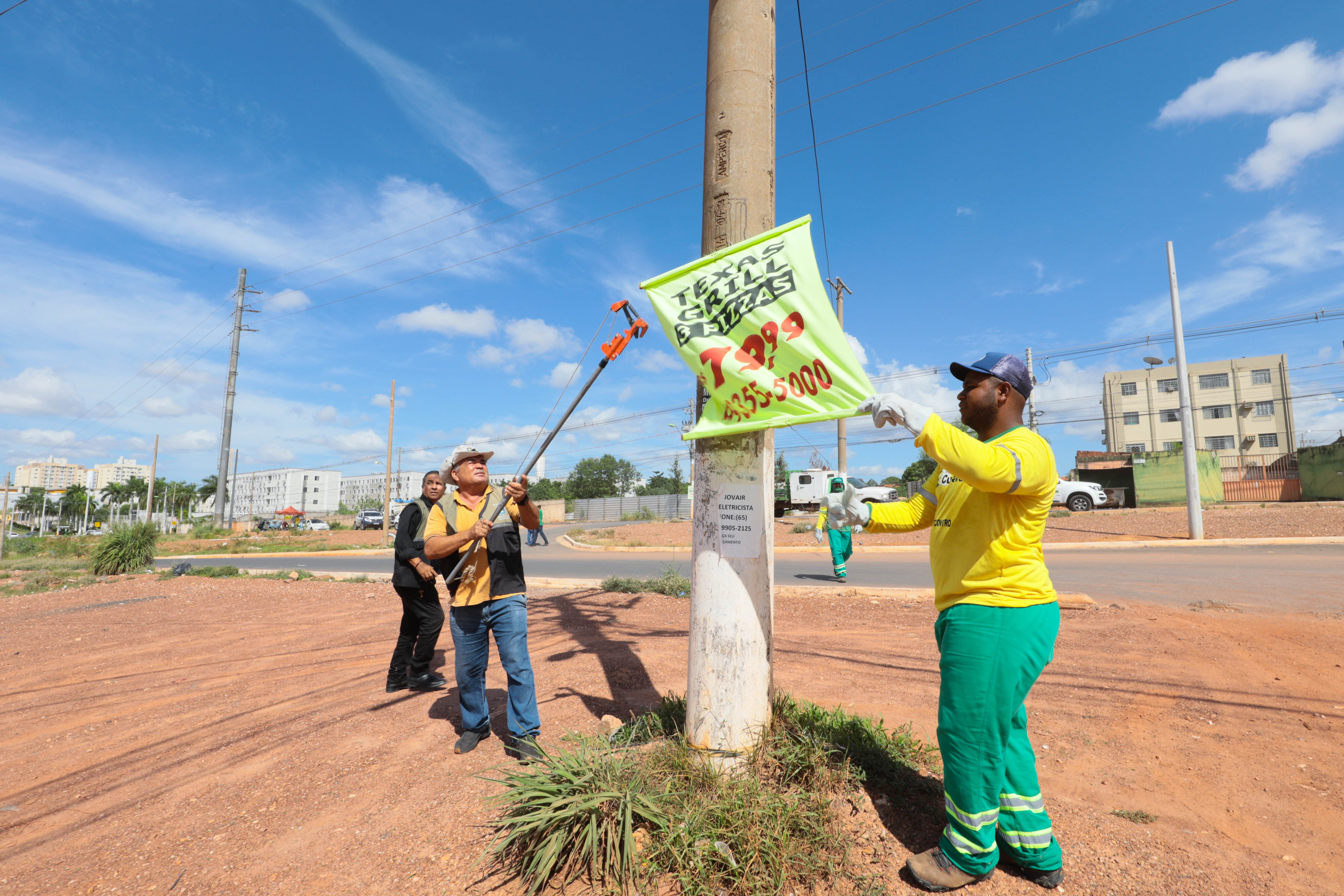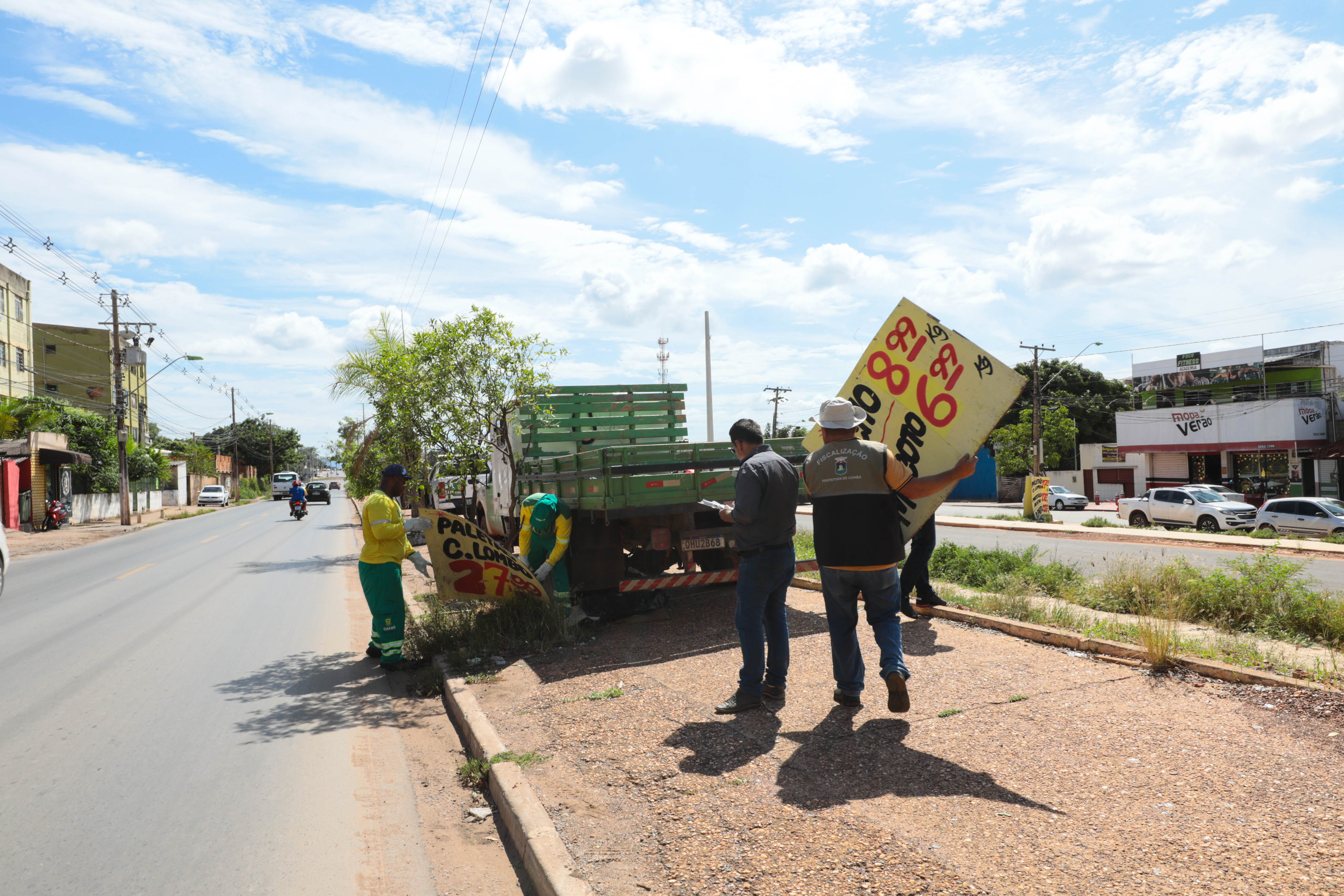 Limpurb e SORP realizam operação para remoção de placas e faixas irregulares das avenidas de Cuiabá