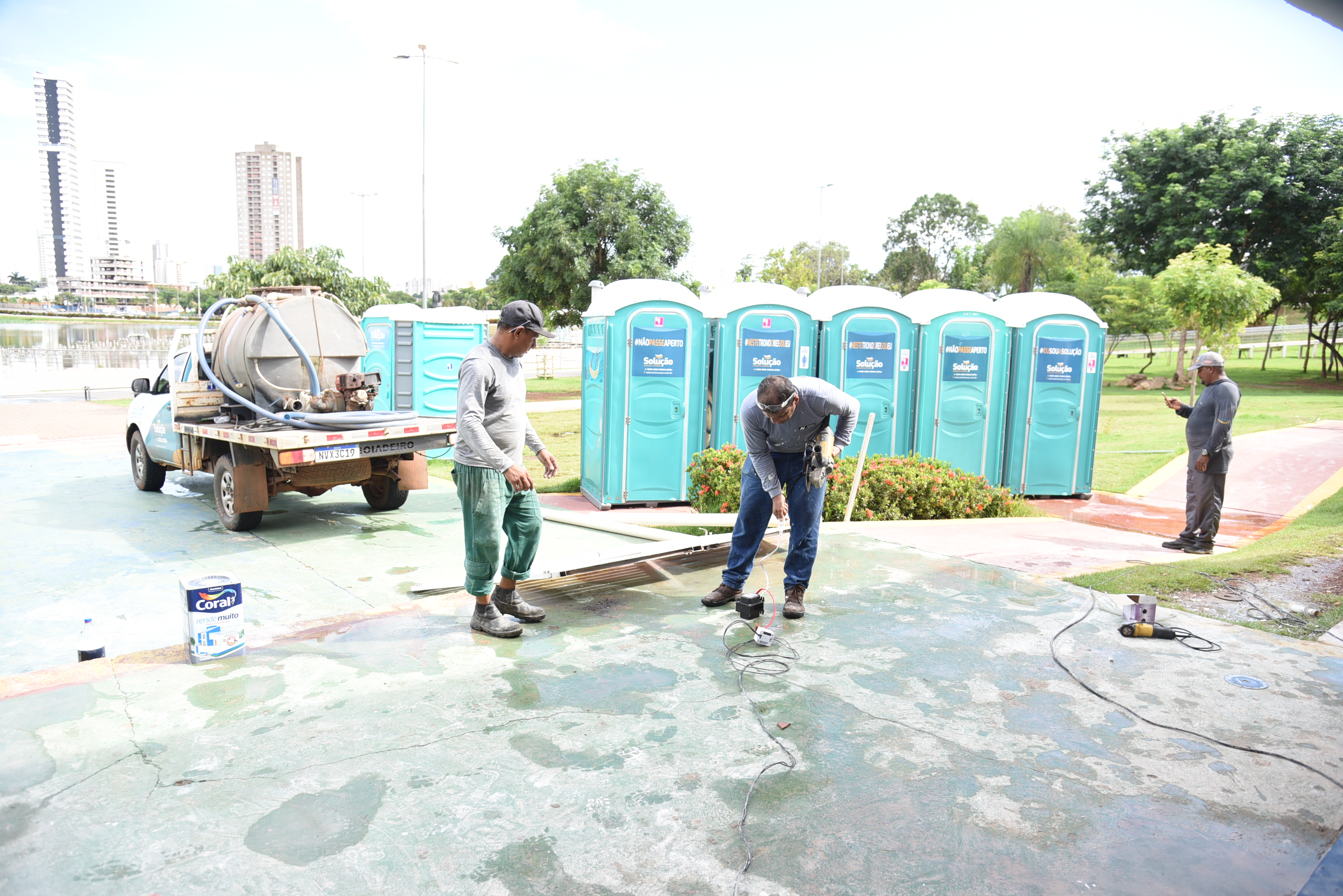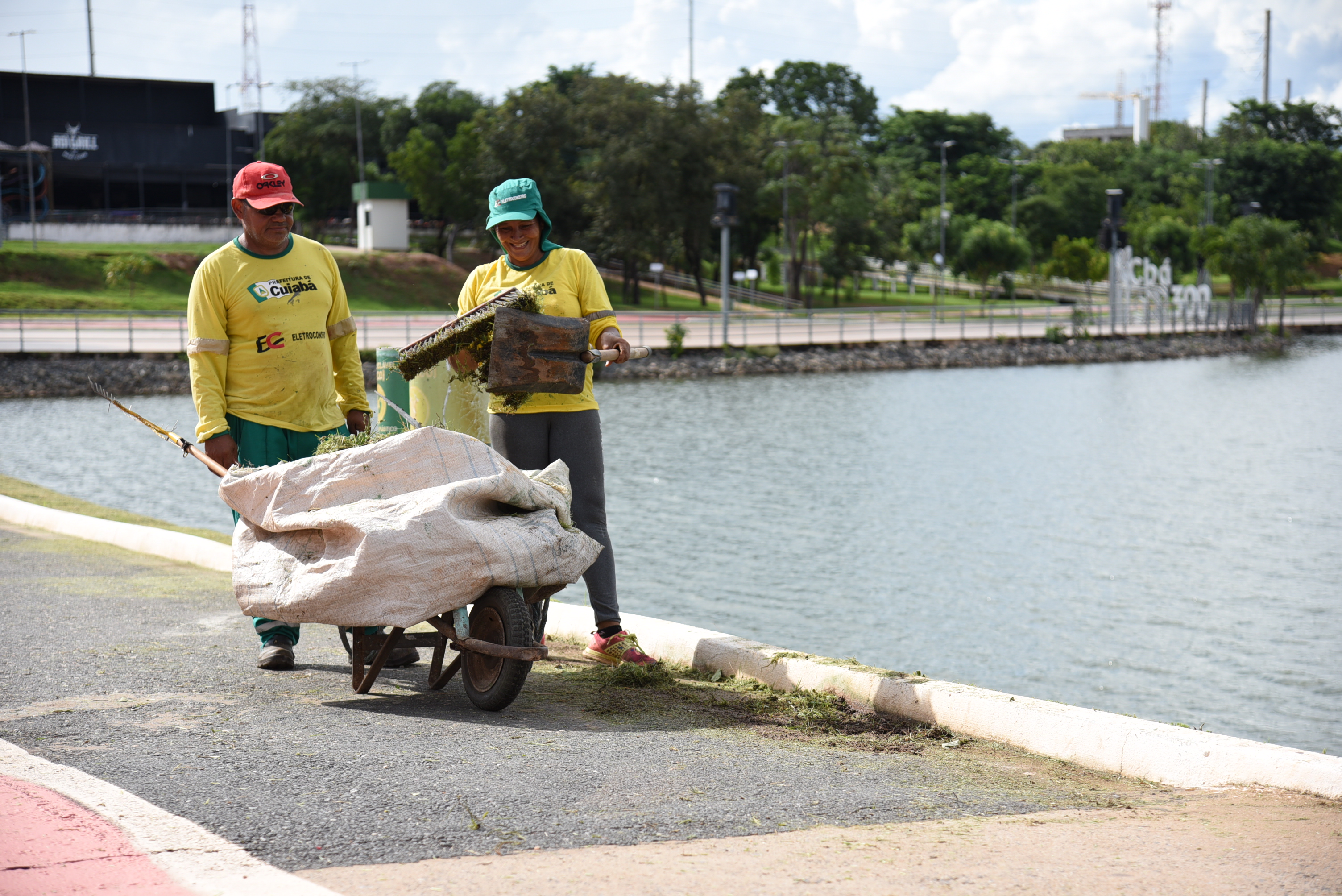 A Prefeitura de Cuiabá, por meio da Empresa Cuiabana de Zeladoria e Serviços Urbanos (Limpurb), realizou na sexta-feira (4), os trabalhos de limpeza, manutenção na iluminação e revitalização no Parque das Águas, localizado no Centro Político Administrativo.