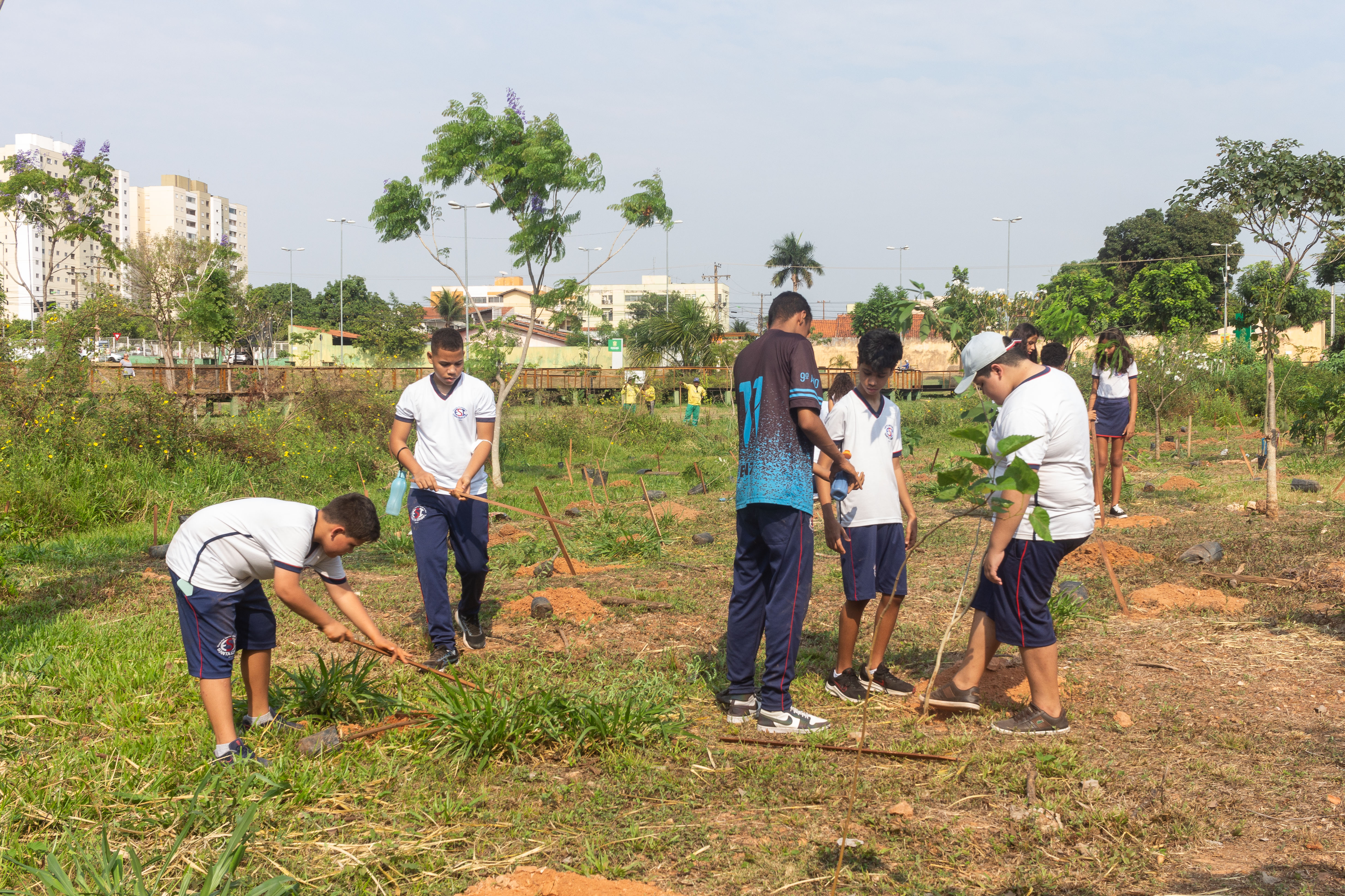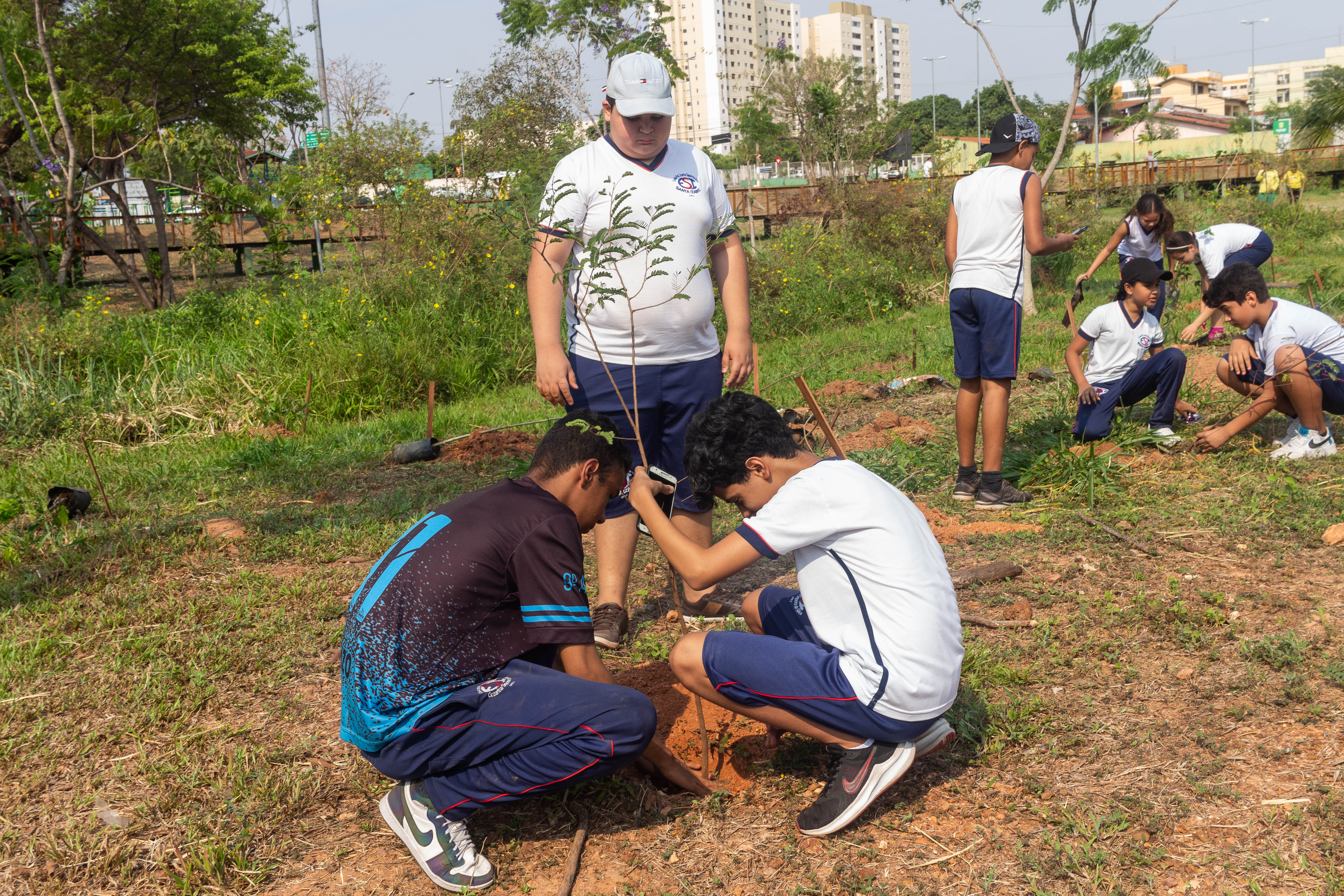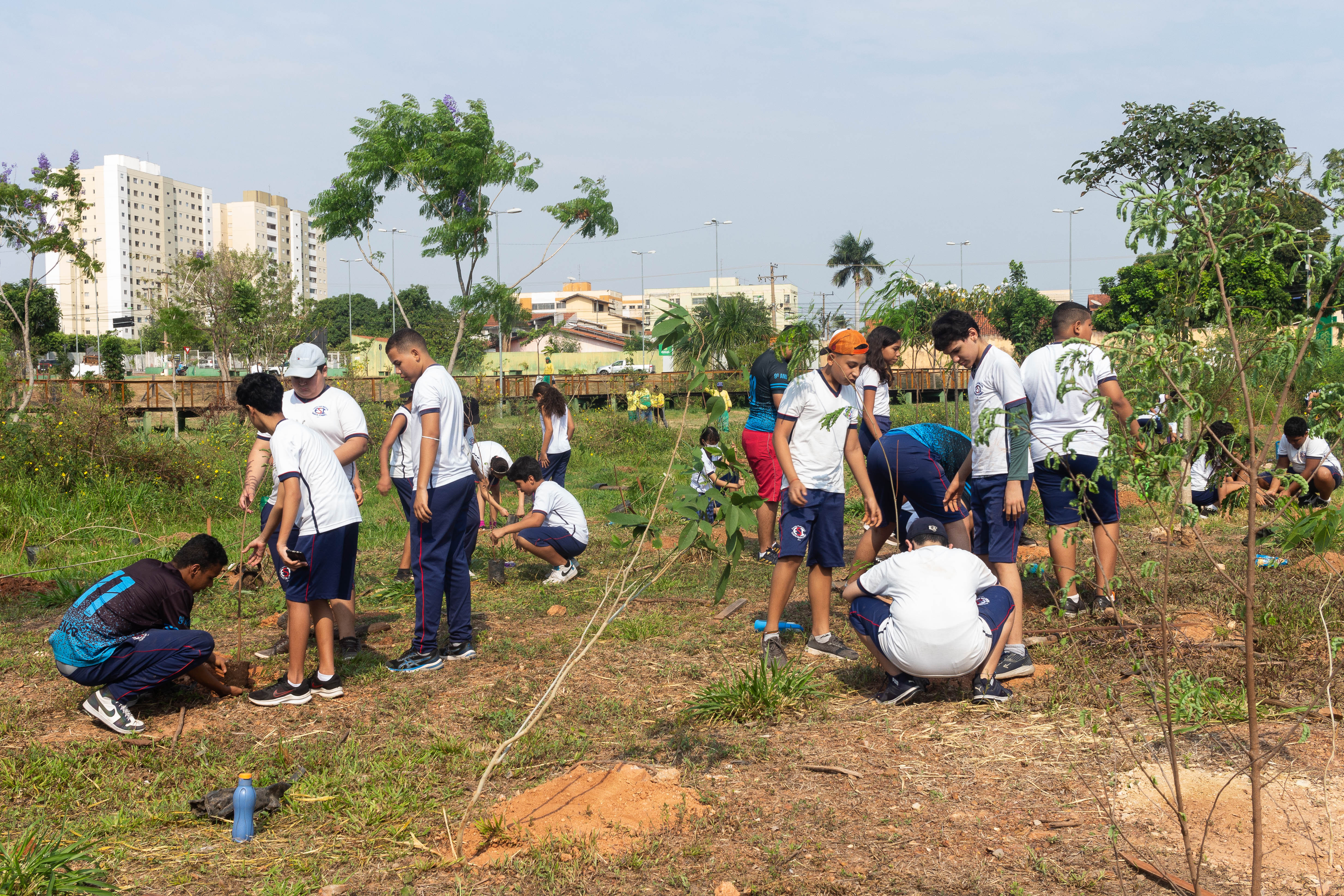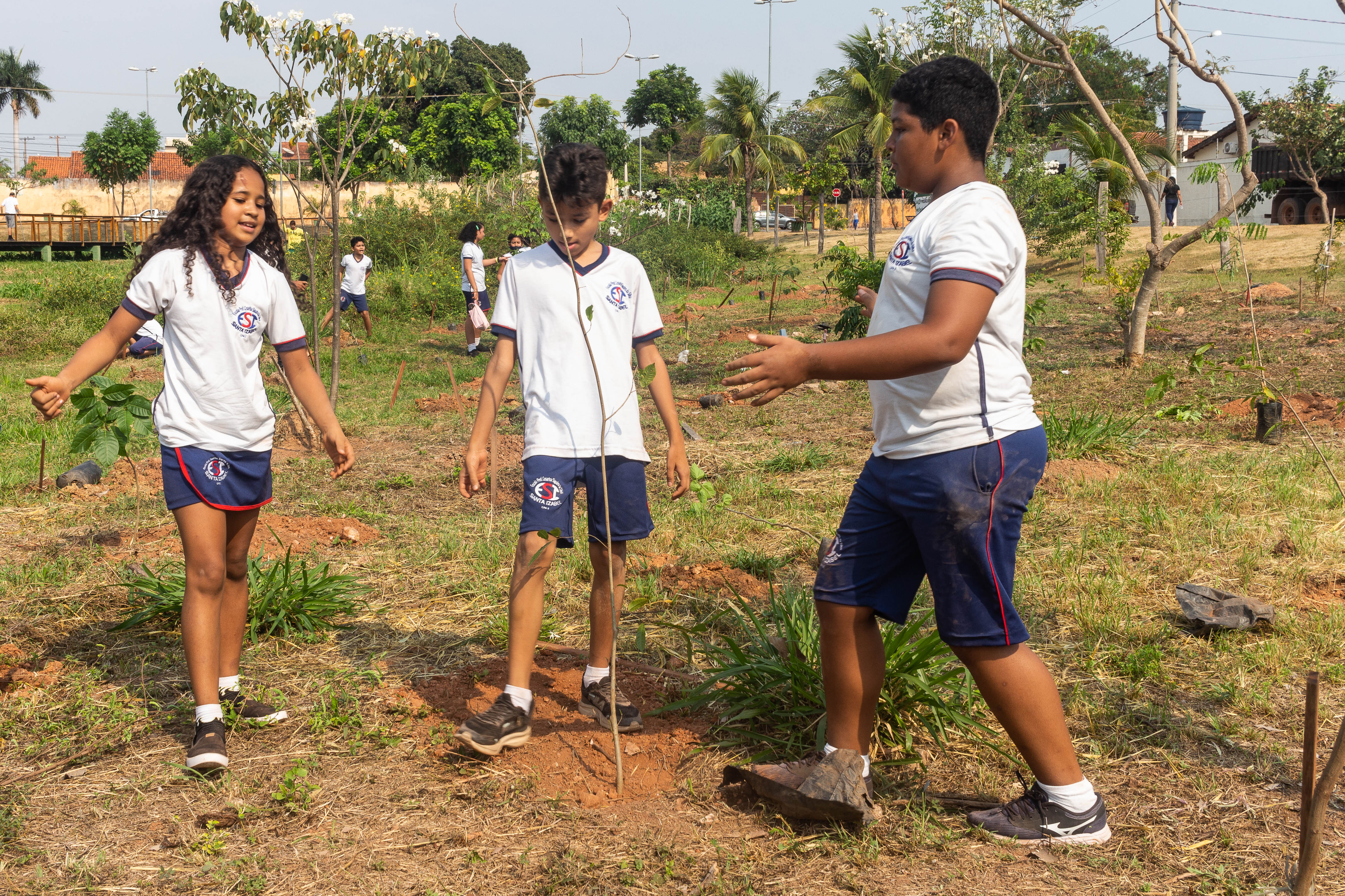 Mais de 100 mudas de árvores foram plantadas nesta quarta-feira (21) no Parque da Nascente – Yone de Azevedo Campos, localizado no bairro Morada do Ouro. A ação foi realizada pela Empresa Cuiabana de Zeladoria e Serviços Urbanos (Limpurb) em alusão ao Dia da Árvore, celebrado neste 21 de setembro. A iniciativa contou ainda com a participação de cerca de 50 alunos, do 5º ao 9º ano, da Escola Santa Izabel (ESI).